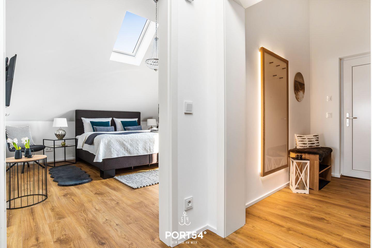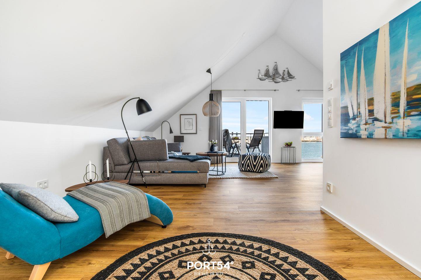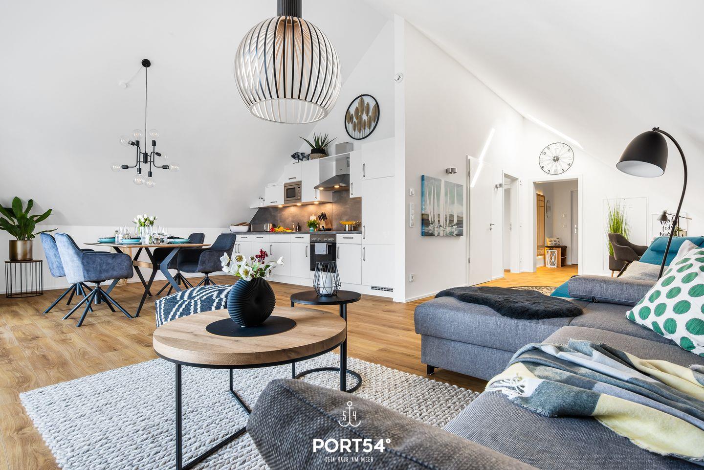 Freuen Sie sich auf diese sehr schicke Ferienwohnung im skandinavischen Stil - Urlaub pur! Auf knapp 80m² bietet Ihnen die im 3. Obergeschoss gelegene Ferienwohnung ein Schlafzimmer mit Doppelbett, einen offenen Wohn-/Essbereich, eine Küche & ein gemütliches Schlafsofa. Das großzügige Badezimmer verfügt über eine ebenerdige Dusche. Das Highlight ist der Balkon mit Wasserblick, auf dem Sie die Sonnenaufgänge genießen können. Ein kostenfreier Parkplatz befindet sich vor dem Haus.