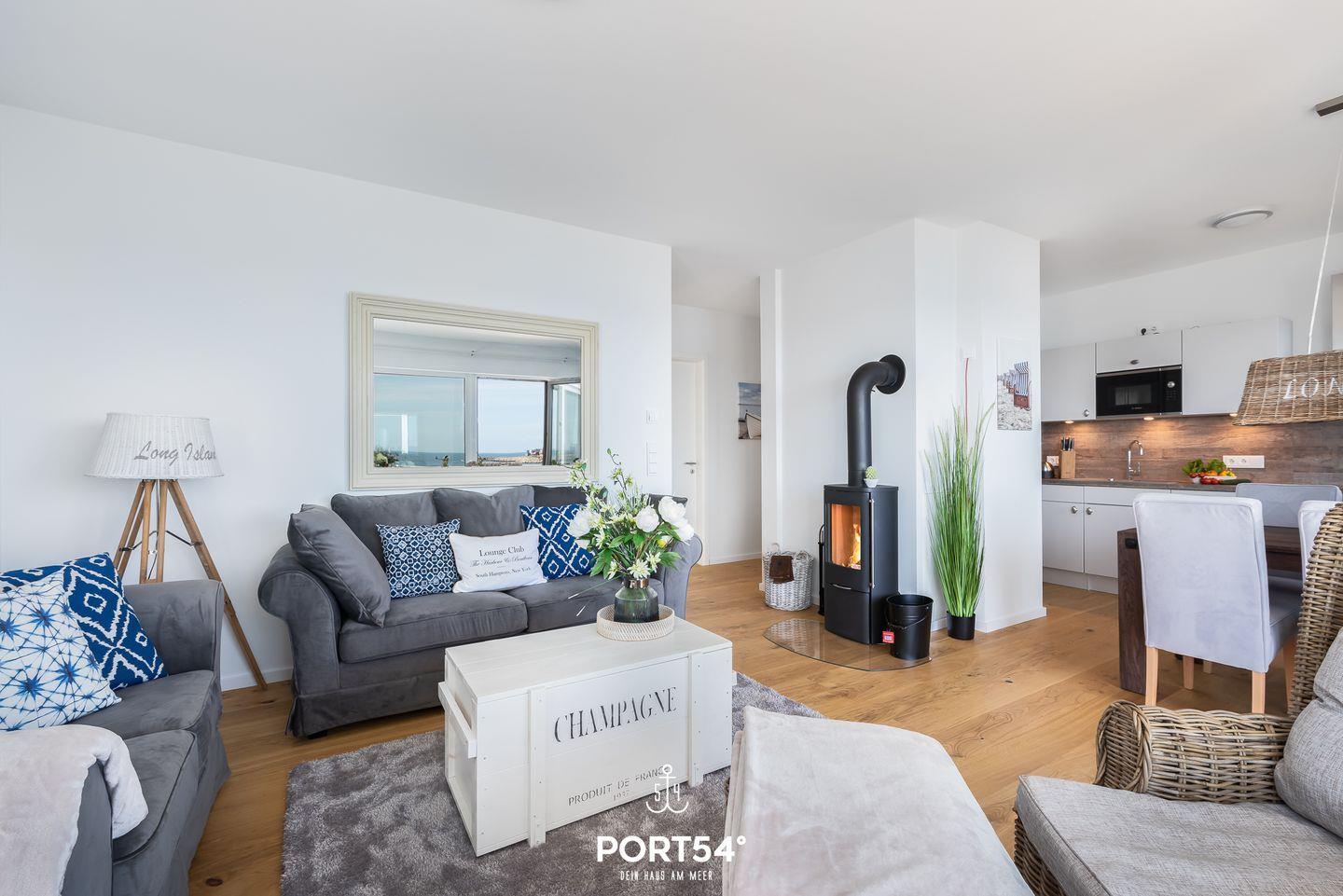 Willkommen in der "Ocean Lounge" – Urlaub zum Wohlfühlen! Die stilvolle Ferienwohnung in Olpenitz im 2. Obergeschoss bietet einen offenen Wohn- und Essbereich mit Kamin, eine offene Küche, drei Schlafzimmer (2x Doppelbett, 2x Einzelbett), zwei Bäder mit Duschen sowie eine Infrarot-Sauna. Ein eigener Tiefgaragenstellplatz (Einfahrtshöhe 2 m), ein Aufzug und sowie ein abschließbarer Gemeinschaftsschuppen sind ebenfalls vorhanden. Ab Januar 2026 sind Hunde erlaubt.