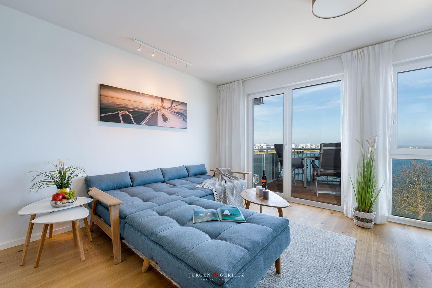 Diese exklusive Ferienwohnung "Marina Sunset West" liegt nur wenige Meter vom Wasser entfernt und bietet einen atemberaubenden Ausblick auf den Hafen und die Schlei. Auf knapp 51m² bietet sie Ihnen 1 Schlafzimmer mit Doppelbett, einen offenen Wohn-/Essbereich, eine Küche & ein gemütliches Schlafsofa. Das großzügige Badezimmer verfügt über eine ebenerdige Dusche. Das Highlight ist der Balkon, auf dem Sie die Sonnenaufgänge genießen können. Ein kostenfreier Parkplatz befindet sich vor dem Haus.
