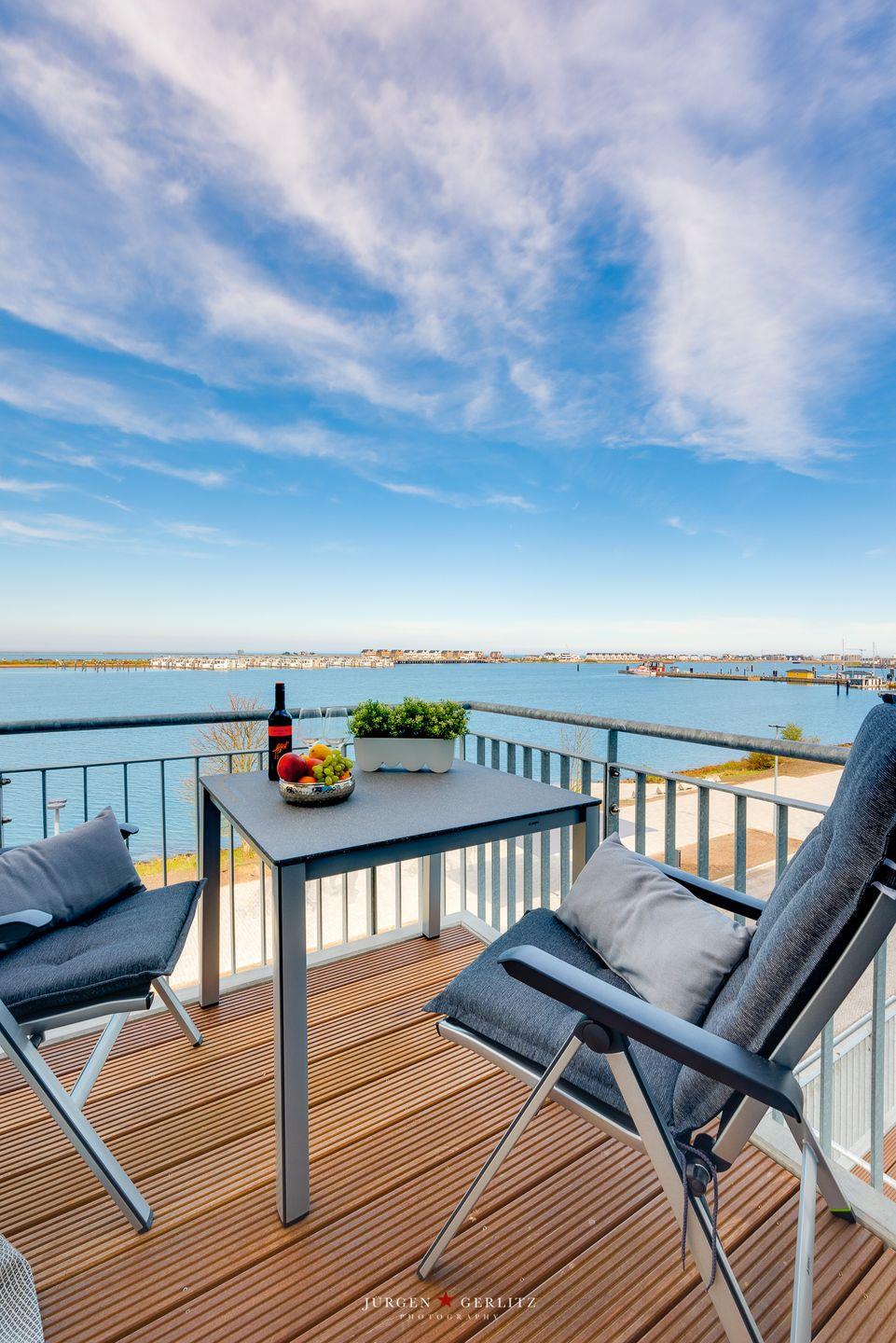 Marina Sunset West - Duschbad, 2. Stock, 1. Reihe am Wasser, Balkon, Hafenblick