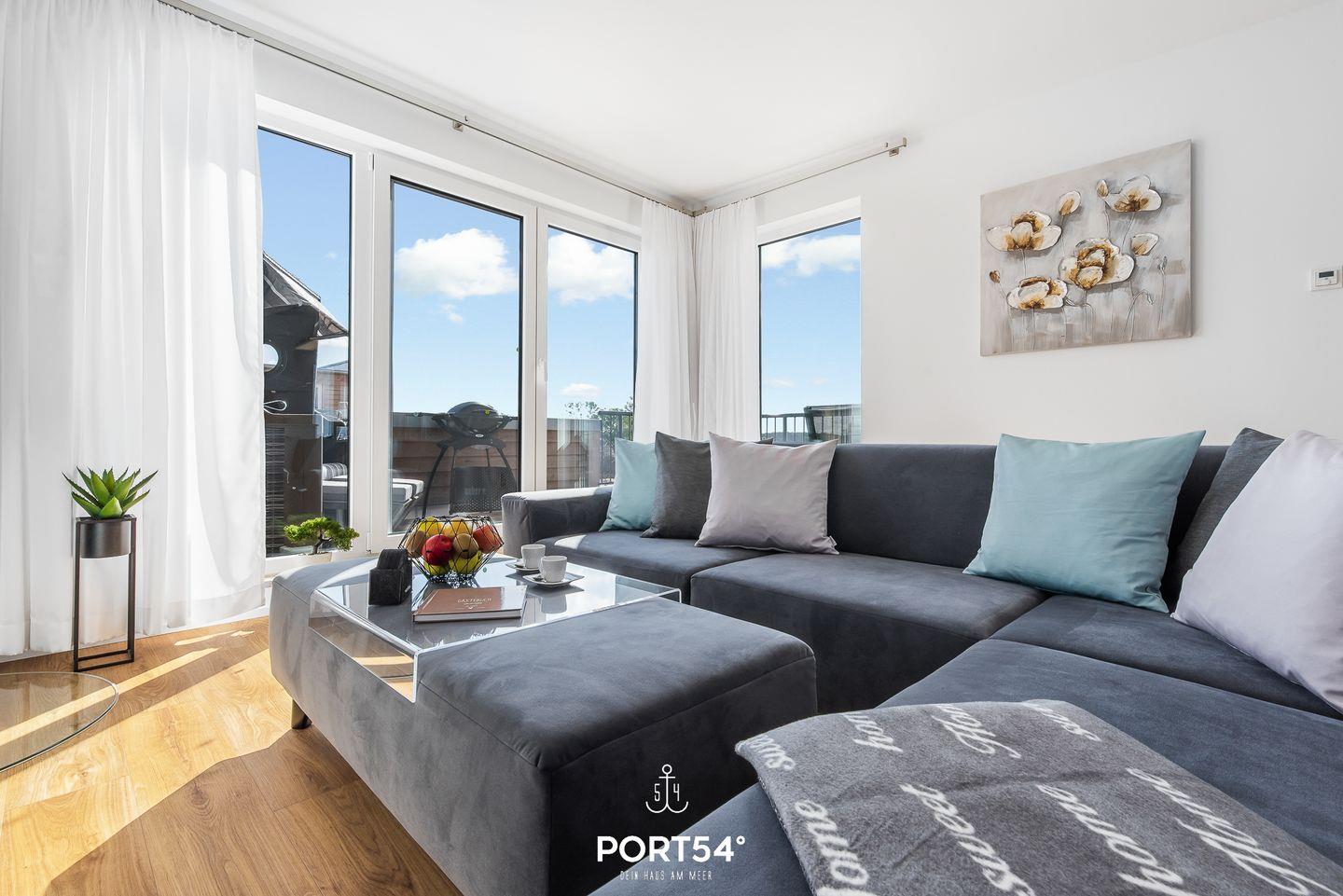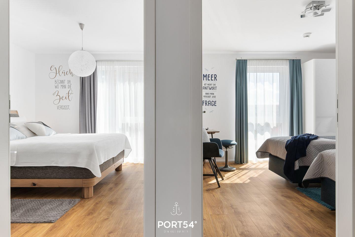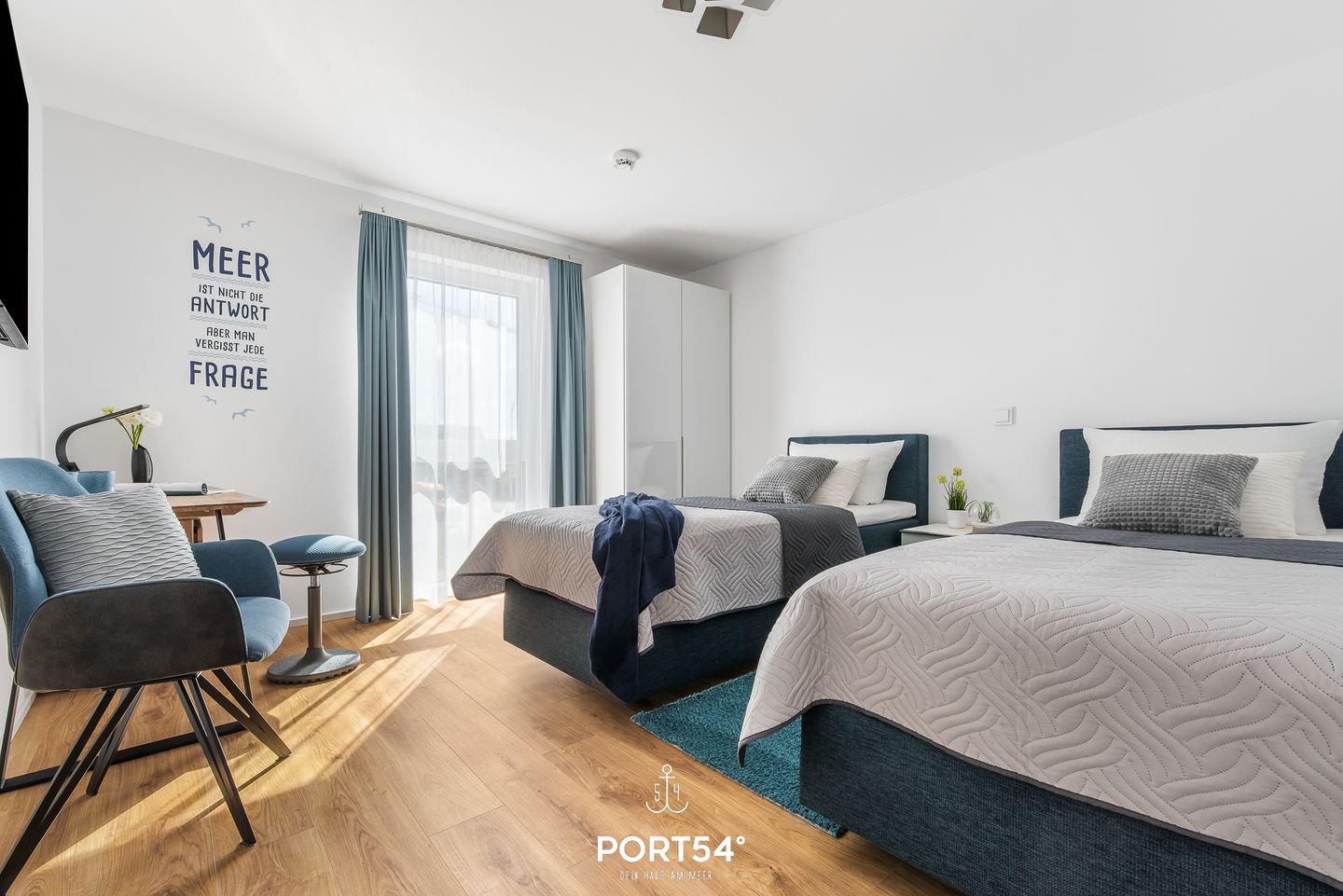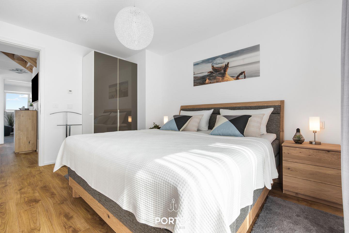 Die Ferienwohnung "Onkel Olli" befindet sich im neuerbauten OstseeResort Olpenitz. Die luxuriöse und loftähnliche gestaltete Ferienwohnung "Onkel Olli" hat auf 120m² für bis zu 6 Personen und lässt Sie einen wahren Traumurlaub an der Ostsee verbringen. Das offene Wohnkonzept spiegelt sich besonders im Wohn-/Essbereich mit einer offenen Küche wider. Hier wurden stilvolle Farben wie Blau-Grau, Flieder oder Altrosa genutzt, um die farbenreichen Sonnenuntergänge am Ostseehimmel sowie den maritimen Einfluss in das Wohnen zu bringen. Der Kamin lädt Sie an kalten Tagen ein, es sich gemeinsam gemütlich zu machen und den atemberaubenden Wasserblick zu bestaunen. Vom Wohnzimmer aus haben Sie auch Zugang zu der halb überdachten, großen Terrasse mit einem tollen Ausblick. Hier können Sie die frische Ostseeluft oder die wunderschönen Sonnenuntergänge im Strandkorb erleben. Die offen gehaltene Küche ist hochwertig und voll ausgestattet. Das Appartment verfügt über insgesamt drei Schlafzimmer. Das erste Zimmer ist ausgestattet mit einem Boxspring-Doppelbett (160x200cm) des Modells Milano Exklusiv von der Firma Ruf. Außerdem gibt es einen Flachbild-TV und Zugang zu einer weiteren kleineren Terrasse, auf der Sie Ihren Morgenkaffee genießen können. Das zweite Zimmer hat ebenfalls ein Boxspring-Doppelbett in den Maßen 180x200cm. Im dritten Zimmer befinden sich 2 Einzelboxspringbetten des Modells Casa Luna 5-Sterne, die auch zu einem Doppelbett zusammenschiebbar sind. Zudem steht in diesem Schlafzimmer ein Schreibtisch. Das Farbenspiel aus Blau-Grau, Flieder- und Auberginetönen setzt sich auch hier fort. Es gibt zudem 2 moderne und helle Badezimmer. Das im 1. OG liegende Bad hat als Highlight eine verglaste Infrarotsauna für Ihre Entspannung und eine Dusche. Das Badezimmer im 2. OG verfügt über eine Badewanne. Vierbeiner sind in "Onkel Olli" auf Anfrage und gegen Gebühr erlaubt. Das Apartment besitzt einen PKW-Stellplatz.