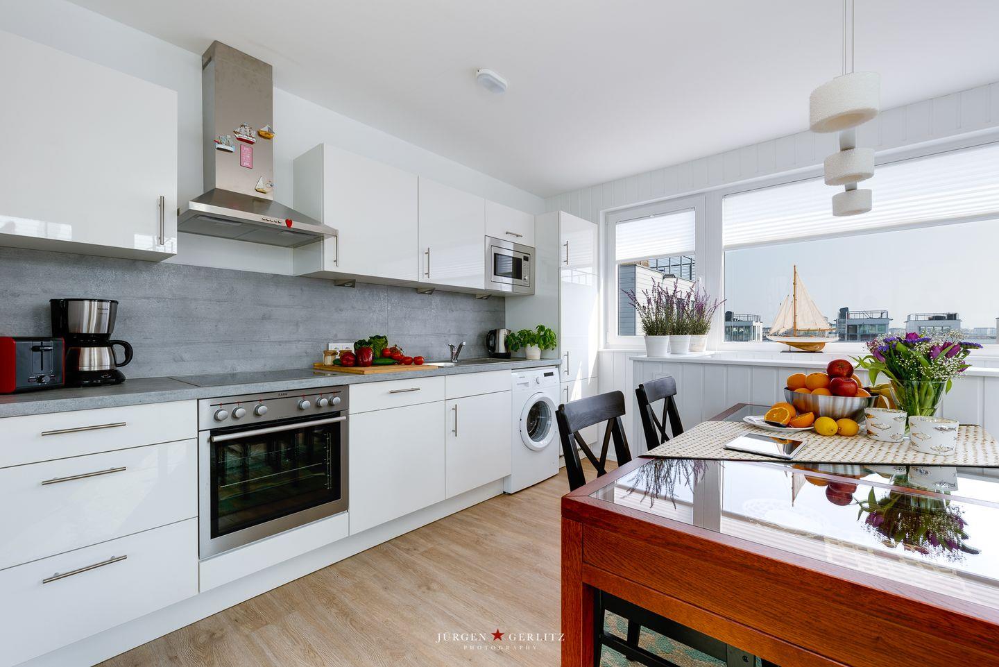 Willkommen an Bord des schwimmenden Traumhauses "Tokai" – Ihre exklusive Oase auf dem Wasser im OstseeResort Olpenitz! Über den Steg erreichen Sie das Ferienhaus, das sich auf 97m² auf 3 Zimmer aufteilt und Ihnen einen Urlaub der Extraklasse bietet. Im Erdgeschoss befinden sich die beiden Schlafzimmer - eines bietet ein gemütliches Doppelbett und in dem anderen Zimmer warten 2 Einzelbetten auf Sie. Lassen Sie sich am Morgen von einem atemberaubenden Blick auf das glitzernde Wasser wecken. Ein Badezimmer mit Dusche und eine finnische Sauna sind ebenfalls im Erdgeschoss vorhanden. Nach einem langen Spaziergang können Sie hier herrlich entspannen und den Alltag hinter sich lassen. Das wahre Highlight erwartet Sie im Obergeschoss – ein lichtdurchfluteter Wohn- und Essbereich mit einer modernen Küchenzeile. Dank bodentiefer Panoramafenster ist dieser Raum hell und einladend. Treten Sie hinaus auf den großzügigen Balkon mit bequemen Gartenmöbeln und lassen Sie sich von der frischen Brise zu einem entspannten Frühstück im Freien einladen. Die Dachterrasse, erreichbar vom Balkon aus, schenkt Ihnen einen traumhaften 360° Blick auf die Schleimündung, die Ostsee und den Hafen des Resorts.