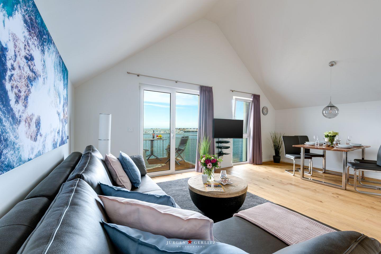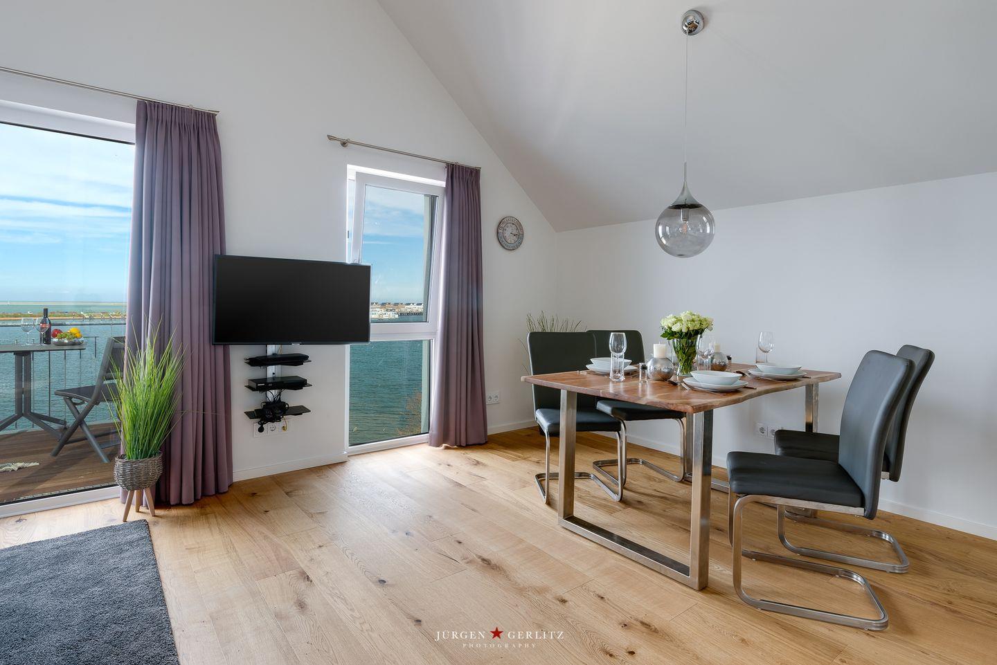 Diese exklusive Ferienwohnung "Sailors View" liegt nur wenige Meter vom Wasser entfernt. Auf knapp 66m² bietet sie Ihnen ein Schlafzimmer mit komfortablem Doppelbett, einen offenen Wohn-/Essbereich, eine Küche, & ein gemütliches Schlafsofa. Das großzügige Badezimmer verfügt über eine ebenerdige Dusche. Das Highlight ist der Balkon mit Wasserblick, auf dem Sie die Sonnenaufgänge genießen können. Ein kostenfreier Parkplatz befindet sich vor dem Haus.