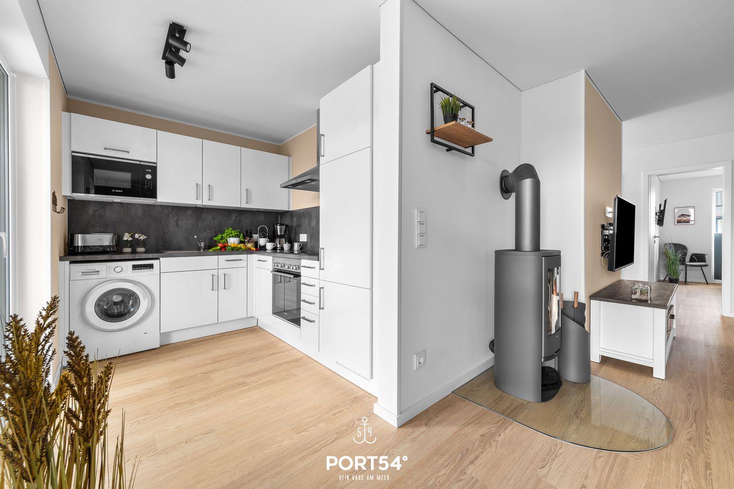 Im Erdgeschoss gelegen erwartet Sie eine großzügige Ferienwohnung mit vielen Annehmlichkeiten für einen Traumurlaub in Ostseenähe. Das Wohnzimmer verfügt über einen Kaminofen und einen Flatscreen-TV. Hier können Sie es sich mit Ihrer Lieblingsserie gemütlich machen und Ihren Urlaub in vollen Zügen genießen, während der Kamin eine gemütliche Atmosphäre und Wärme spendet. Die moderne Küche ist voll ausgestattet, sodass hier leckere Urlaubsgerichte gezaubert werden können. Der angeschlossene Essbereich bietet Platz für 4 Personen. In der Wohnung gibt es 2 Schlafzimmer. Das eine Zimmer verfügt über ein großes Boxspring-Doppelbett. In dem anderen Schlafzimmer stehen 2 bequeme Einzelboxspringbetten zur Verfügung, die zu einem Doppelbett zusammengeschoben werden können. Hier befindet sich außerdem ein Schreibtisch. Beide Schlafzimmer sind mit Flachbild-TV's ausgestattet, sodass auch fürs nächtliche Entertainment gesorgt ist. Das Badezimmer hat eine ebenerdige Dusche und als Highlight eine Infrarot-Sauna - nach langen Spaziergängen kann man sich dort wunderbar entspannen und aufwärmen. Ihre Vierbeiner sind herzlich Willkommen - wie auch kleine Gäste: wir stellen einen Kinderhochstuhl, ein Kinderreisebett und einen Tritt bereit. Weitere Highlights des Hauses sind die zwei überdachten Terrassen mit Gartenmöbeln und einem Elektro-Grill. Entspannten Grill-Abenden auf der Terrasse an der frischen Ostseeluft steht somit nichts mehr im Wege! Der Weidefelder Strand befindet sich in fußläufiger Nähe - und bietet neben Strandkörben auch ein Restaurant und einen Kiosk. Im Strandkorb mit einem Glas Wein den Sonnenuntergang anschauen - was will man Mee(h)r? Fürs Entertainment im Urlaub ist in Olpenitz ebenfalls gesorgt - der Minigolfplatz ist innerhalb weniger Gehminuten zu erreichen. Unternehmungslustige kommen hier auf jeden Fall auf ihre Kosten, denn auch die Surfschule in Weidefeld ist ein beliebtes Ausflugsziel und bietet Wassersportkurse für jedermann an. Ein kostenfreier Parkplatz inkl. E-Ladestation befindet sich direkt vor der Unterkunft. Mitgebrachte oder ausgeliehene Fahrräder können im abschließbaren Fahrradschuppen untergestellt werden.