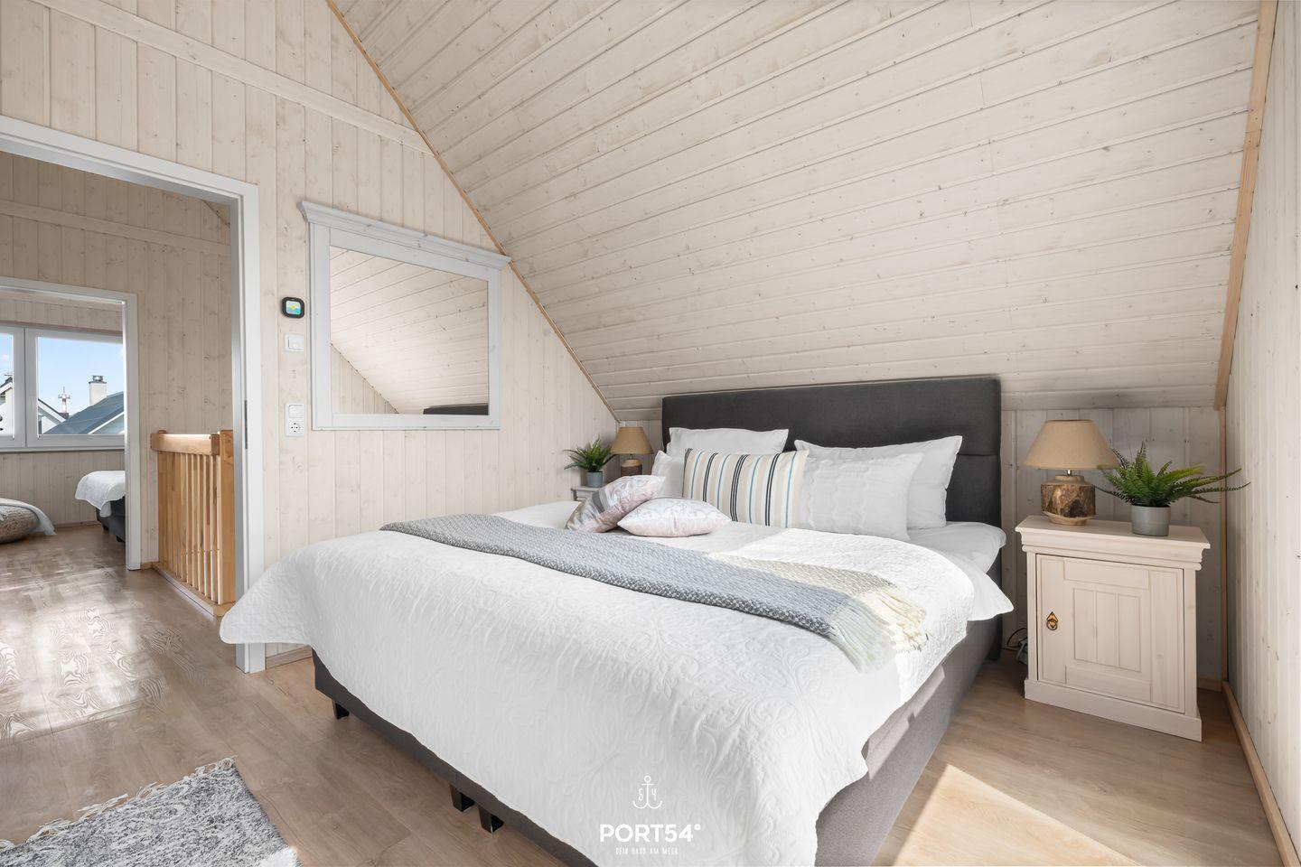 Herzlich Willkommen im Ferienhaus "Meer und Mehr I". Ihr freistehendes Ferienhaus besticht durch seine Lage, umgeben von einer grünen Wiese in unmittelbarer Nähe zur Ostsee und dem Yachthafen. Das Domizil bietet auf über 80m² einen offenen Wohn- und Essbereich mit Küche, zwei Schlafzimmer, zwei Badezimmer und eine Terrasse. Große Panoramafenster sorgen für eine lichtdurchflutete Wohlfühlatmosphäre. Entspannen Sie auf dem Sofa vor dem Flachbild-TV oder lassen Sie Ihre Urlaubstage auf der Terrasse ausklingen. An den kühleren Tagen sorgt der Kaminofen im Wohnbereich für eine gemütliche Wärme. Zu Ihrer Sicherheit ist das Haus mit einem Kohlenmonoxid Melder ausgestattet. Um gesellige Abende zu verbringen, stehen Ihnen Bücher, Gesellschaftsspiele, Blu-ray Discs, DVDs und CDs zur Verfügung. Ein Schlafsofa (140x200cm) bietet 2 Kindern eine zusätzliche Schlafmöglichkeit. Die modern eingerichtete Küche lässt keine Wünsche offen. Sie finden hier alles, um sich und Ihre Mitreisenden kulinarisch verwöhnen zu können. Das Bad im Erdgeschoss verfügt über ein Fenster mit Sichtschutz, einem WC, einer Dusche und als Highlight, eine Infrarotkabine. Hier können Sie es sich nach langen Strandspaziergängen gut gehen lassen. Im Obergeschoss befinden sich zwei Schlafzimmer, die beide u. a. mit Kleiderschränken und Boxspringbetten ausgestattet sind, eins mit einem Doppelbett (180x200cm), das andere mit 2 zusammengeschobenen Einzelbetten (100x200cm). Ein Kinderhochstuhl sowie ein Kinderreisebett mit Matratze finden Sie ebenfalls im Haus. Ein weiteres Wannenbad mit Fenster mit Sichtschutz runden das Obergeschoss ab. Beide Bäder verfügen über einen Handtuchheizkörper. Die Terrasse ist ausgestattet mit Terrassenmöbeln, 2 Sonnenliegen, einem Strandkorb und einem hochwertigen Weber Elektrogrill. Ihre Fahrräder können Sie sicher in einem Fahrradschuppen unterbringen. Hier finden Sie auch noch einen Bollerwagen, den Sie für Strandausflüge nutzen können. Vor dem Haus stehen Ihnen 2 Parkplätze zur Verfügung. Das Haus ist maximal für 4 Erwachsene und 2 Kinder geeignet. Direkt nebenan erwartet Sie das baugleiche Schwesterhaus „Meer & Mehr II“. Ideal für unvergessliche Urlaubstage mit der Großfamilie oder engen Freunden – genießen Sie gemeinsame Erlebnisse und gleichzeitig die Rückzugsmöglichkeiten für entspannte Momente der Privatsphäre.