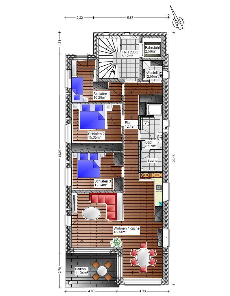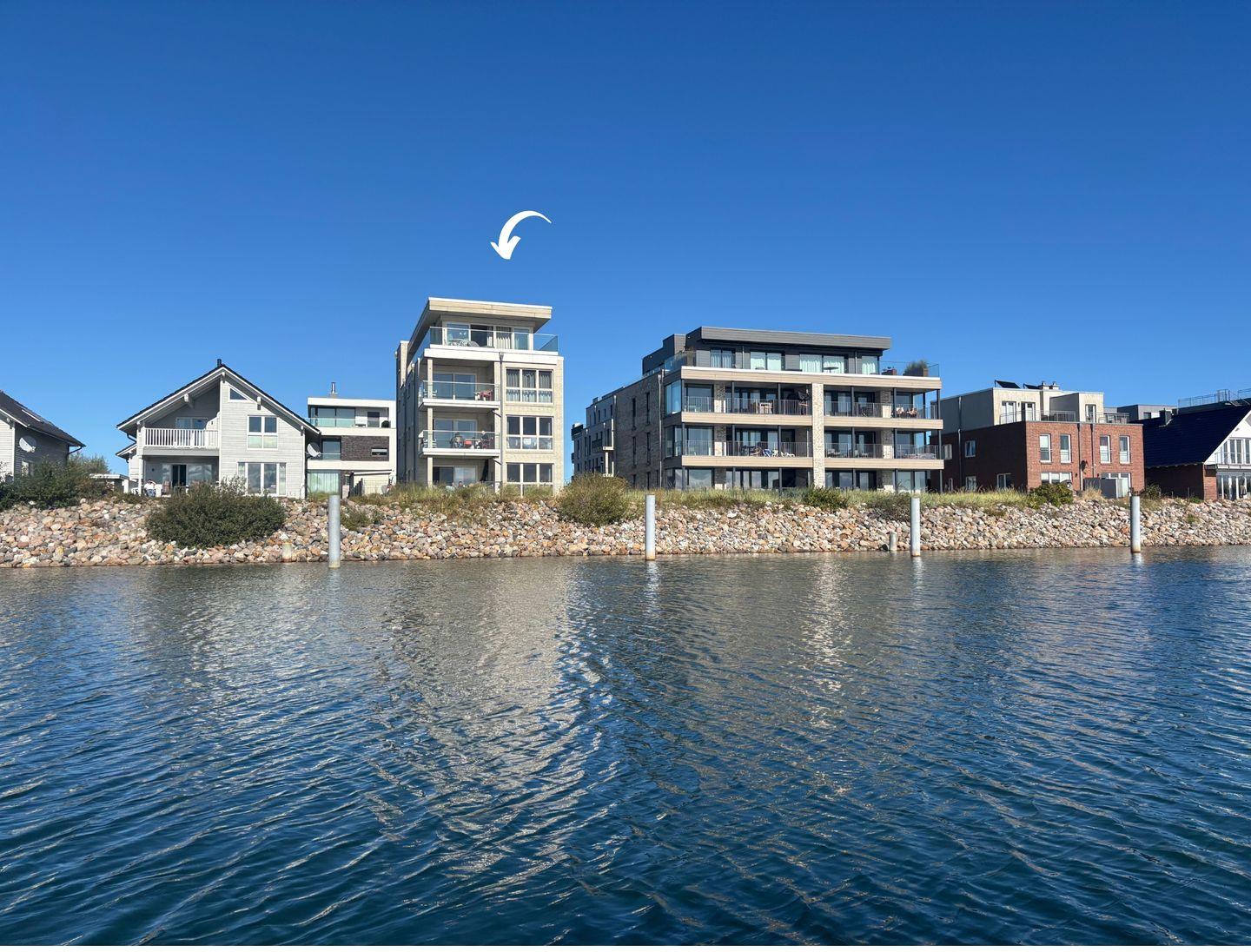 In diesem Haus befinden sich 4 Apartments: "Ebbe und Flut" (EG), "Horizont" (1. OG), "Brise" (2. OG) und das Penthouse "Himmel & Meer".