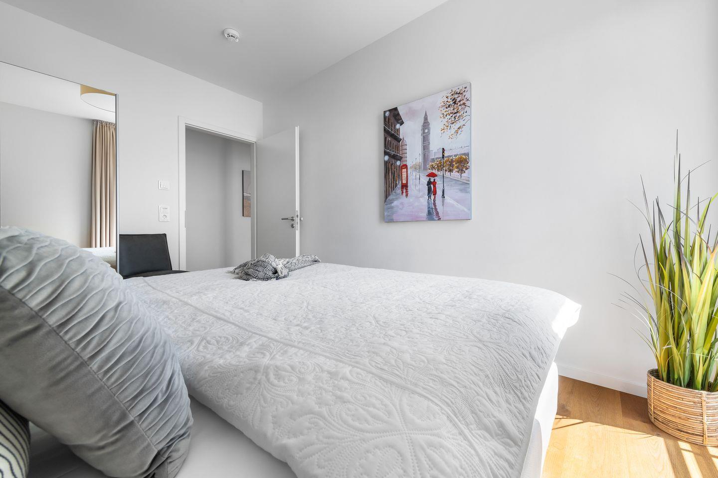 Die hellen Schlafzimmer verfügen über hochwertige Boxspringbetten und bodentiefe Fenster, die sich durch Gardinen abdunkeln lassen. Für Entertainment sorgt in einem der Schlafzimmer ein Flatscreen.