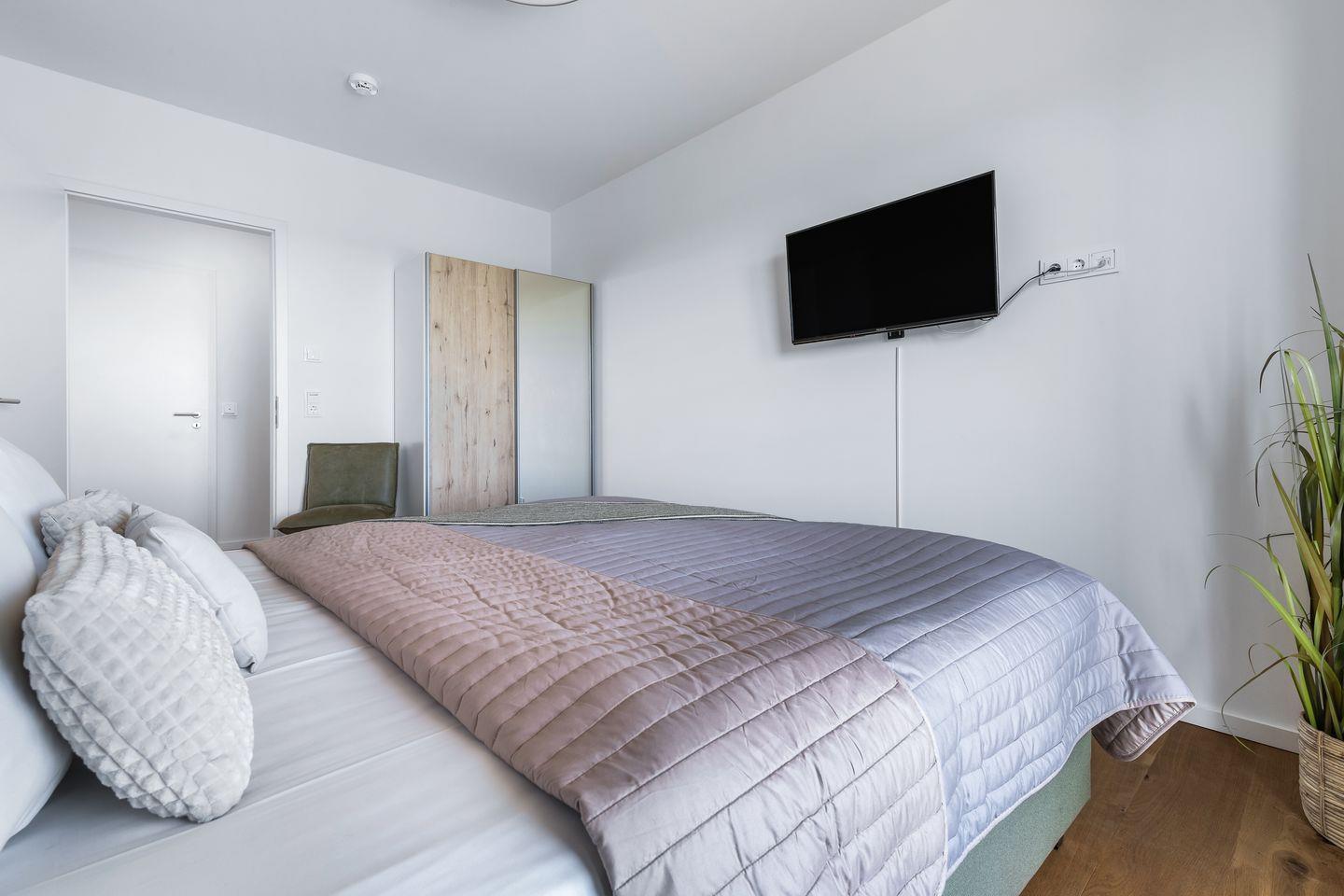 Die Schlafzimmer sind in hellen Erd- und Grüntönen gehalten und verfügen über hochwertige Boxspringbetten und bodentiefe Fenster. Diese ermöglichen einen traumhaften Blick ins Blaue.