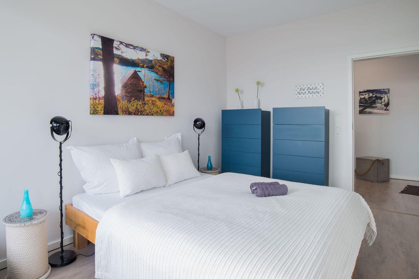 Das Designferienhaus CUBE23 liegt direkt an der Ostsee auf einer Mole. Auf drei Etagen bietet es 200 m² Wohnfläche für bis zu sechs Personen. Große Fensterfronten ermöglichen einen ungehinderten Meerblick. Im Erdgeschoss befinden sich drei Schlafzimmer und zwei Bäder. Das 1.OG beherbergt einen 75 m² offenen Wohnbereich mit Küche und Kamin. Im Staffelgeschoss gibt es einen Fitnessraum mit Sauna sowie eine 44 m² große Dachterrasse mit Kamin. Das Haus verfügt über zahlreiche Terrassen und Balkone.