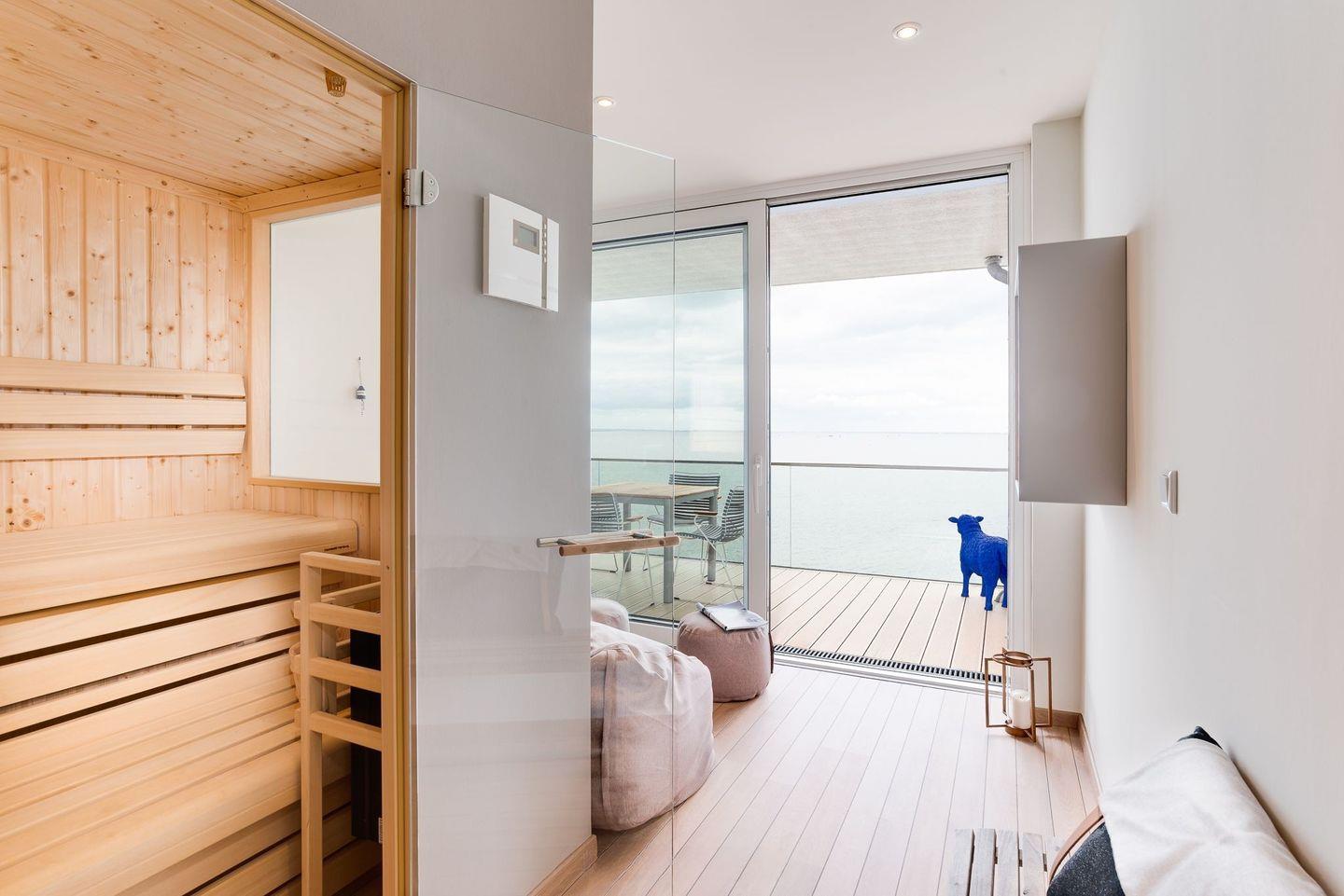 Weitblick: Luxuriöses Apartment mit Kaminofen, finnischer Sauna und Ostseeblick