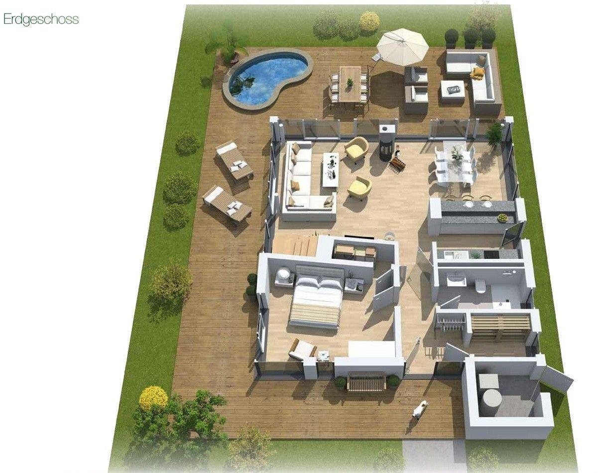 Erdgeschoss: Schon beim Betreten begrüßt Sie ein Eingangsbereich mit praktischem Abstellraum inkl. Waschmaschine und Trockner. Ein modernes Badezimmer, ein Schlafzimmer mit Boxspringbett sowie der 43 qm große offene Wohn-Essbereich mit Gas-Kaminofen und einer top-ausgestatteten offenen Küche bieten Komfort pur.