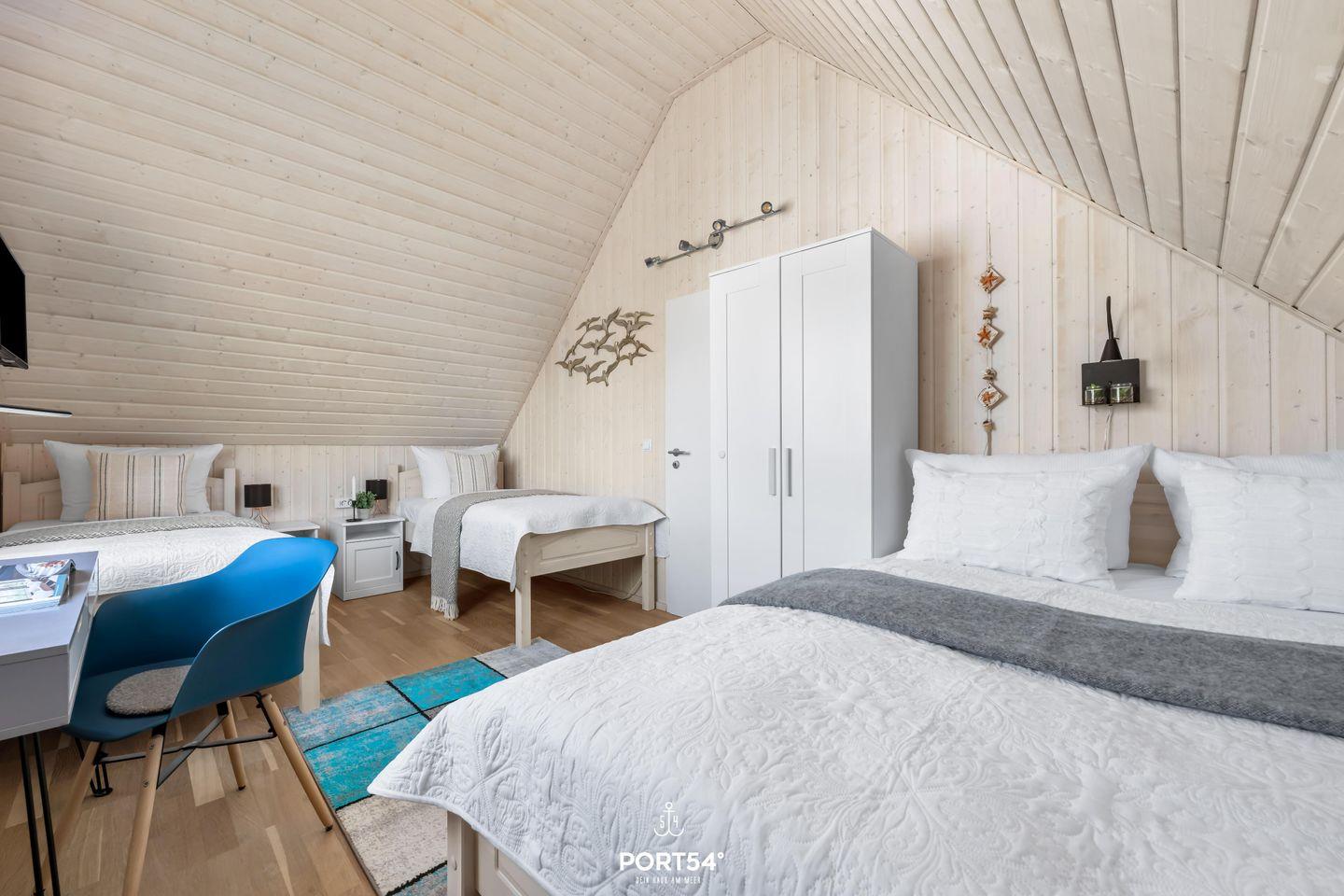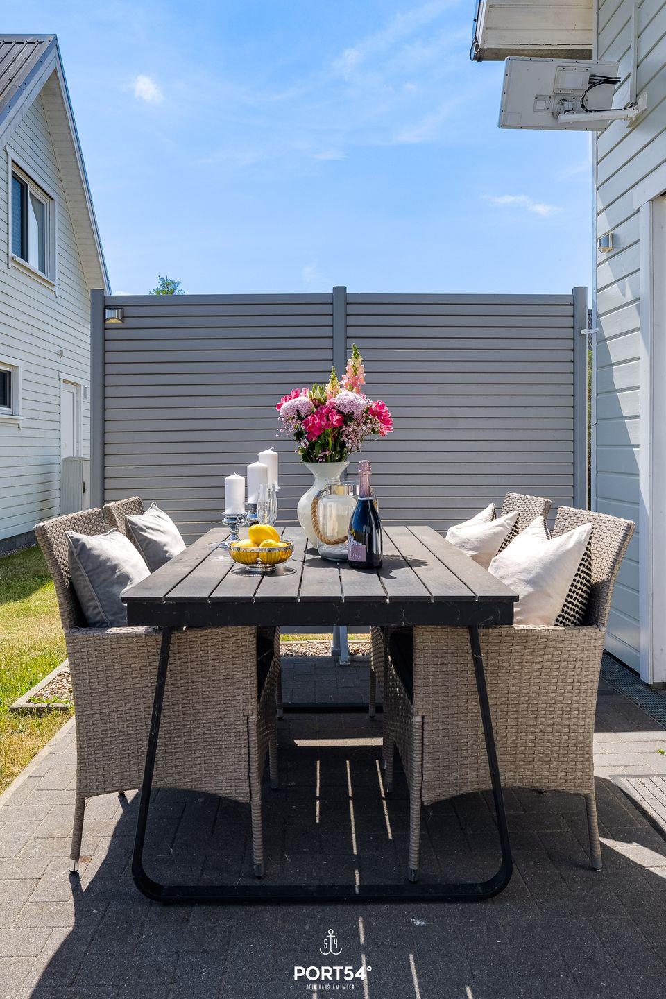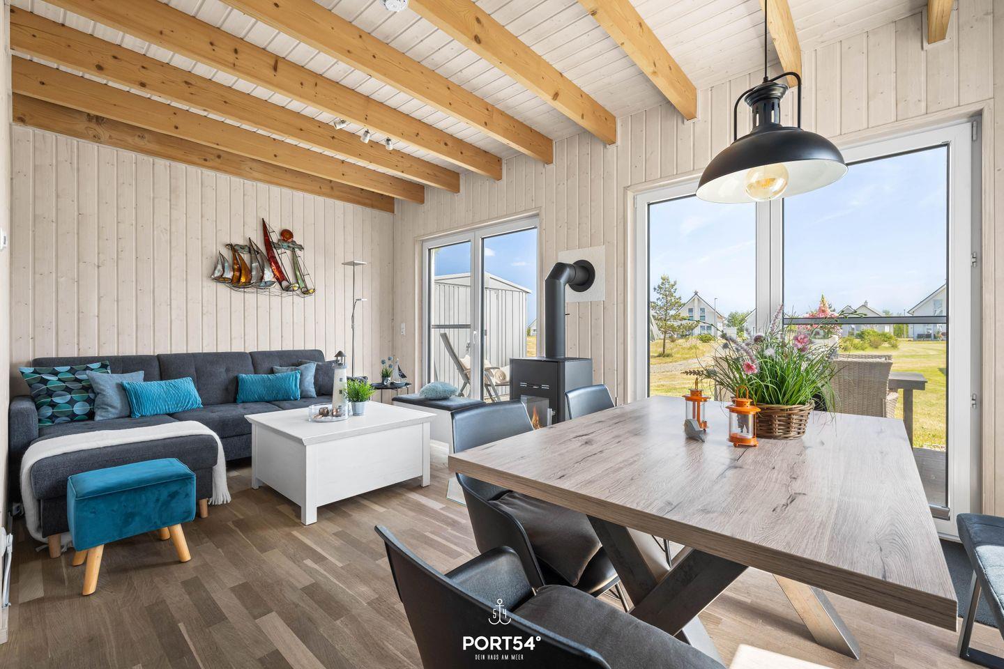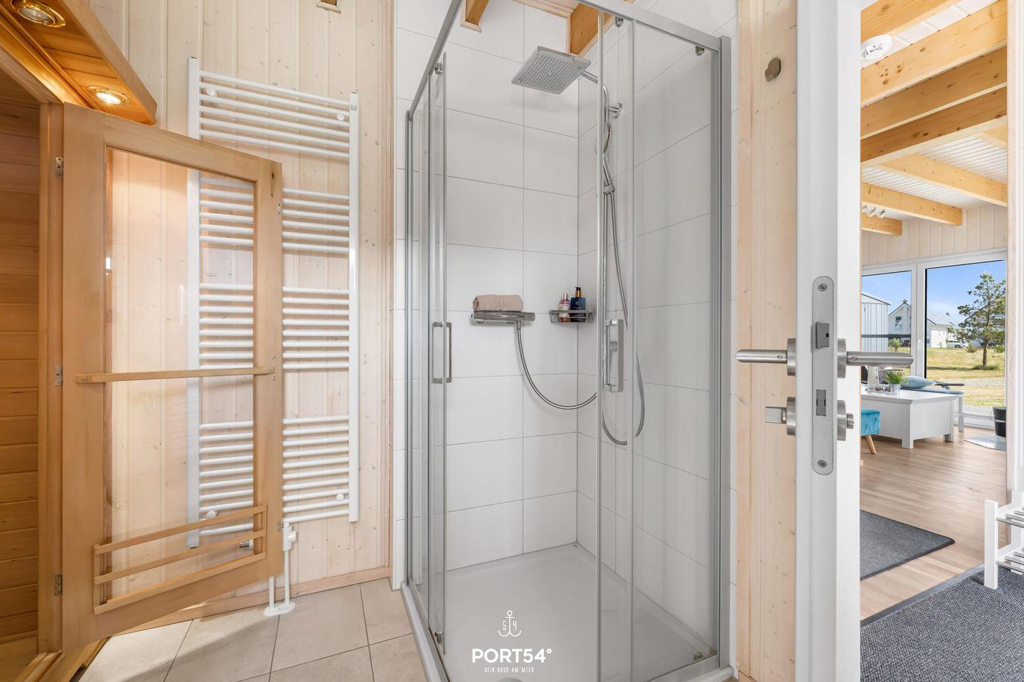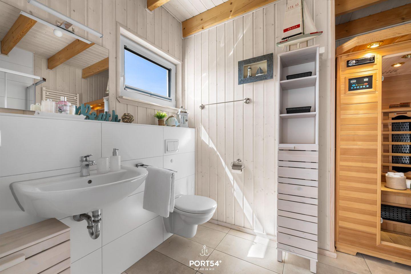 Willkommen im Ferienhaus "Meerweh" – Ihr idyllischer Rückzugsort für einen unvergesslichen Urlaub an der Küste! Dieses freistehende Ferienhaus bietet Ihnen auf großzügigen 82m² ein wahres Zuhause auf Zeit, in dem keine Wünsche offen bleiben. Bereits beim Betreten des Hauses werden Sie vom einladenden, offenen Wohn-/Essbereich begeistert sein. Hier treffen Komfort und Gemütlichkeit aufeinander. Entspannen Sie sich vor dem prasselnden Kaminfeuer und genießen Sie den Klang der hochwertigen Stereoanlage und des Subwoofers für den TV. An heißen Sommertagen sorgen zwei Turmventilatoren im Wohnzimmer für eine angenehme Erfrischung und kühle Brisen. Das Ferienhaus verfügt über drei geschmackvoll eingerichtete Zimmer, darunter zwei behagliche Schlafzimmer. Das erste Schlafzimmer erwartet Sie mit einem großzügigen Doppelbett (180x200cm), einem geräumigen Kleiderschrank, einem Smart-TV und einer weiteren Stereoanlage – ideal für entspannte Stunden vor dem Schlafengehen. Im zweiten Schlafzimmer finden Sie ein Doppelbett (140x200cm) und zwei Einzelbetten (je 90x200cm) sowie einen Smart-TV. Beide Schlafzimmer sind mit Verdunkelungsmöglichkeiten, Insektenschutz als auch jeweils mit einem Turmventilator für warme Sommertage ausgestattet, sodass Sie ungestört schlafen können. Die beiden modernen Badezimmer lassen keine Wünsche offen. Im Erdgeschoss erwartet Sie ein wahres Wellness-Erlebnis: Eine luxuriöse Dusche mit Regendusche, ein Föhn, ein WC und ein beleuchteter Spiegel. Das Highlight ist die Infrarotsauna, die für wohltuende Entspannung sorgt. Genießen Sie die Wärme der Infrarotstrahlen und gönnen sich eine kleine Auszeit. Ein Handtuchheizkörper und ein Radio sorgen für zusätzlichen Komfort, während das Fenster mit Sichtschutz Privatsphäre garantiert. Im Badezimmer im Obergeschoss finden Sie eine Duschwanne, ein WC, einen beleuchteten Spiegel und ein Dachfenster mit Sichtschutz. Die voll ausgestattete Küche lädt zum kulinarischen Experimentieren ein. Neben Spülmaschine, Ceranfeld, Backofen und Mikrowelle stehen Ihnen alle nötigen Küchenutensilien zur Verfügung, um leckere Gerichte zu zaubern. Draußen erwartet Sie eine einladende Terrasse mit komfortablen Outdoormöbeln und einer Sonnenliege. Dank Sicht- und Windschutz auf beiden Seiten der Terrasse können Sie hier ungestört relaxen und die frische Meeresluft genießen. Ein Fahrradständer und ein abschließbarer Fahrradschuppen stehen für Ihre mitgebrachten oder beim Tourguide gemieteten Fahrräder bereit, sodass Sie die Umgebung bequem erkunden können. Für gesellige Grillabende ist auch ein Holzkohlegrill vorhanden. Ein Parkplatz direkt am Haus rundet das Angebot ab. Erleben Sie unvergessliche Urlaubstage im Ferienhaus "Meerweh" – hier wird Komfort großgeschrieben, und Sie können sich rundum wohlfühlen! Das Haus wird für 6 Personen angeboten.