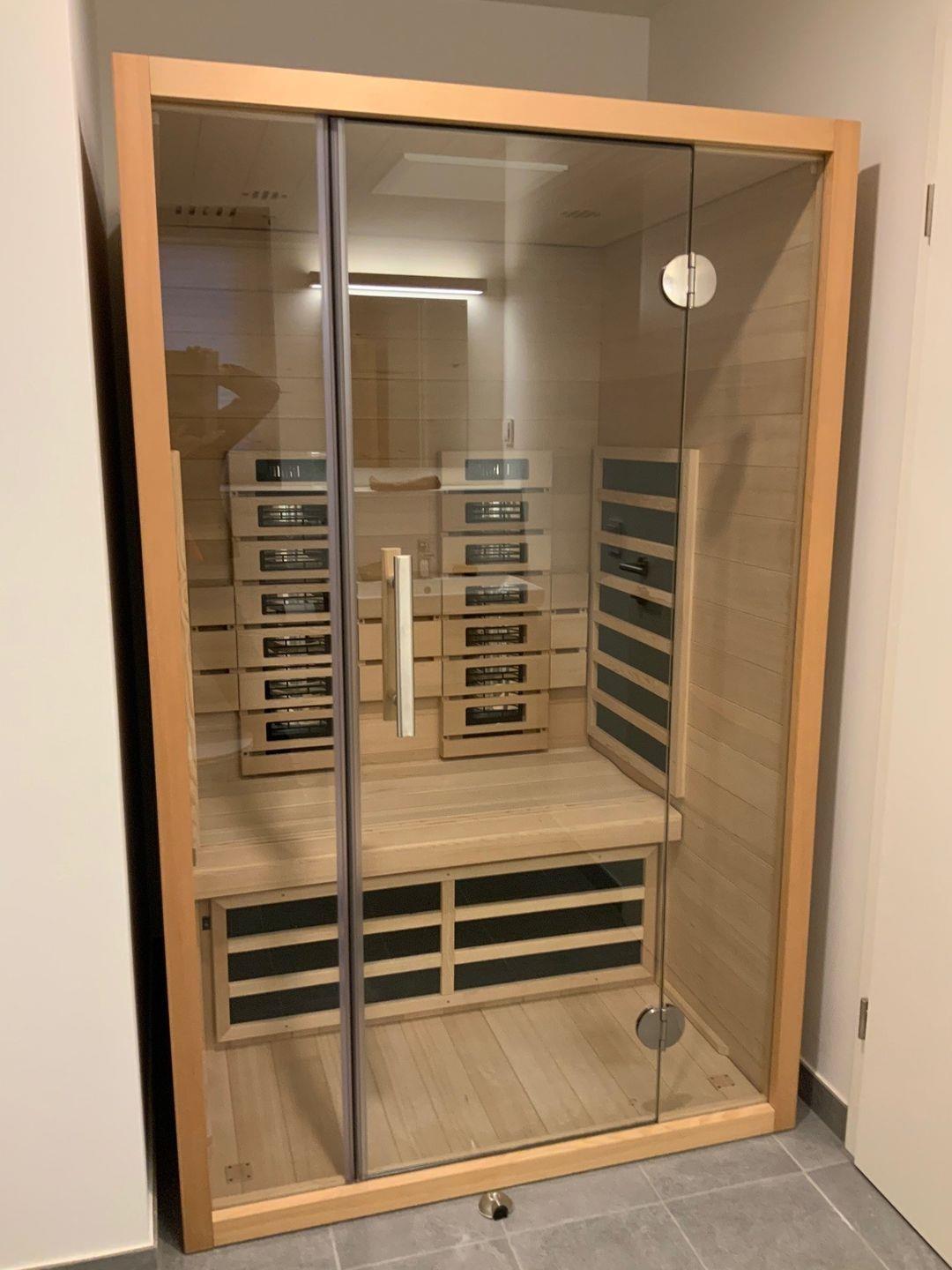 Die Ferienwohnung verfügt über einen lichtdurchfluteten Wohnbereich, eine vollausgestattete Küche, zwei gemütliche Schlafzimmer und ein Badezimmer mit Infrarot-Sauna. Die vollausgestattete Küche ermöglicht Ihnen tolle Kochabende. Auf dem angrenzenden Balkon, mit Süd-West-Ausrichtung, können Sie morgens Ihren Kaffee genießen oder Sie können hier mit der ganzen Familie unvergessliche Grillabende an dem Elektro-Grill verbringen. Ein Sonnenschirm bietet Ihnen an heißen Tagen Schutz. Im Wohnbereich können Sie Ihre Abende auf dem bequemen Sofa vor dem Flachbild-TV ausklingen lassen. An den kühleren Tagen spendet Ihnen ein Kaminofen eine angenehme Wärme. Das eine Schlafzimmer verfügt über ein Boxspring-Doppelbett (180x200cm), das andere über zwei Boxspring-Einzelbetten (90x200cm), welche aber auch zu einem großen Bett zusammengestellt werden können. Beide Schlafzimmer sind jeweils mit einem Kleiderschrank, Flachbild-Fernseher, Insektenschutzgitter und Verdunkelungsmöglichkeiten ausgestattet. Hier können Sie dem Alltagsstress entkommen und in Ihrem Urlaub entspannt ausschlafen. Für unsere kleinen Gäste stellen wir gerne ein Reisebettchen und einen Hochstuhl zur Verfügung. Das Highlight der Ferienwohnung ist die Infrarot-Sauna im Tageslicht-Duschbad. Entspannen sie in Ihrem privaten Wellness-Bereich! Die Dusche ist ebenerdig, zudem bietet das Duschbad einen Handtuchtrockner, ein Föhn und ein Insektenschutzgitter. Die gesamte Wohnung ist mit einer Fußbodenheizung und Sichtschutz an allen Fenstern ausgestattet. Am Haus befindet sich ein kostenloser Stellplatz für Ihren PKW.