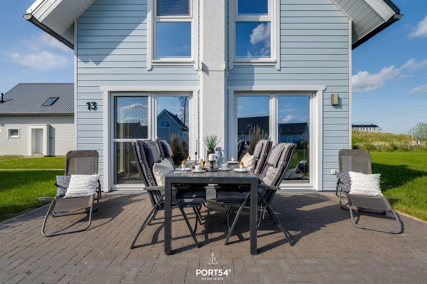 Herzlich Willkommen in Ihrem Ferienhaus "Marina Flair" in Olpenitz. Ihr freistehendes, 80m² großes Feriendomizil verfügt über einen großzügigen Wohn- und Essbereich, zwei Schlafzimmer, zwei Bäder und eine Küche. Die großen Fenster sorgen für ein lichtdurchflutetes, großzügiges Wohngefühl. Im Wohnbereich können Sie es sich auf dem Sofa gemütlich machen, ein gutes Buch lesen oder auf dem Flachbild-TV Ihre Lieblingsserie schauen. An kühlen Abenden verbreitet der Kamin eine wohlige Wärme. Die Küche bietet alles, um sich und Ihre Familie kulinarisch zu verwöhnen. Ein Bad rundet das Erdgeschoss ab. Das Badezimmer verfügt über ein Fenster mit Sichtschutz, eine Dusche, eine Handtuchheizung und als besonderes Highlight: eine Infrarotkabine. Hier können Sie sich nach langen Strandspaziergängen aufwärmen und entspannen. Für unsere kleinen Gäste steht neben einem Kinderhocker, ein Kinderreisebett sowie ein Kinderhochstuhl bereit. Im Obergeschoss befinden sich zwei Schlafzimmer. Eines der beiden Zimmer bietet ein gemütliches Boxspringbett (180x200cm) und einen Schrank, das zweite Schlafzimmer ist mit zwei Boxspringbetten (je 100x200cm), sowie ebenfalls einem Schrank ausgestattet. Beide Zimmer verfügen über Insektenschutz und Verdunkelungsmöglichkeiten, sodass einem erholsamen Schlaf nichts mehr im Wege steht. Das Bad im Obergeschoss bietet ein Dachfenster mit Sichtschutz, eine Badewanne, eine Handtuchheizung, einen Föhn und ein weiteres WC. Genießen Sie die nach Süden ausgerichtete, möblierte Terrasse um zu entspannen, Grillabende zu veranstalten oder einfach um auf der Sonnenliege die Seele baumeln zu lassen. Für Ihre mitgebrachten oder beim Tourguide gemieteten Räder steht Ihnen ein abschließbarer Schuppen zur Verfügung. Nicht nur für Ihre Zweiräder ist gesorgt: vor Ihrem Ferienhaus steht Ihnen ein Parkplatz zur Verfügung.