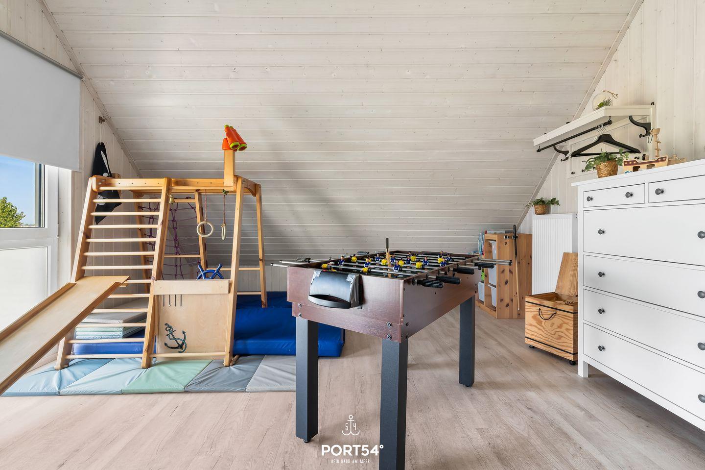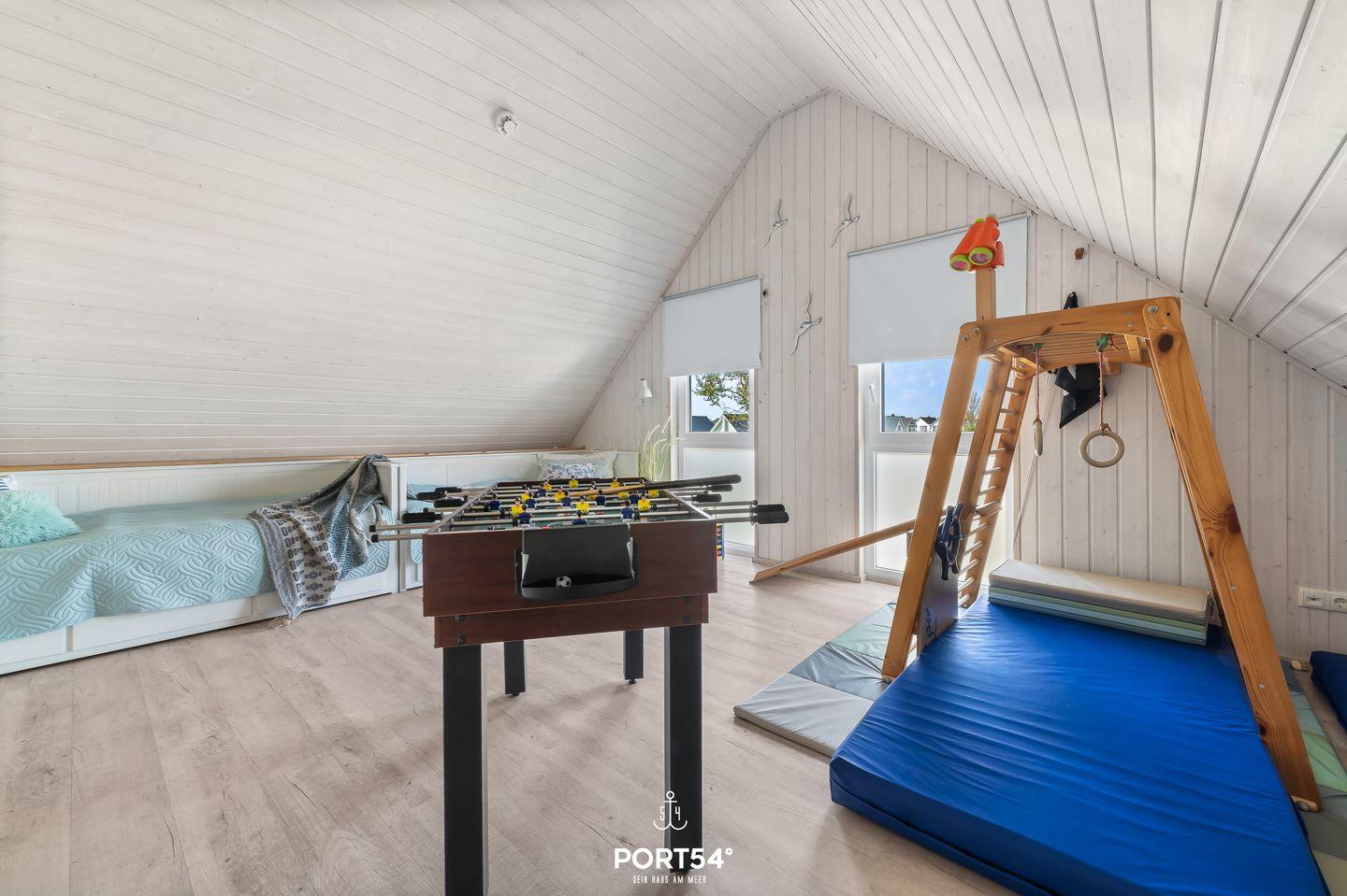 Willkommen im Ferienhaus "Olpekids". Die Hausbezeichnung ist Programm - bereits bei Eintritt werden Sie und vor allem Ihre Kleinen sich wie zu Hause fühlen. Das Ferienhaus besticht durch seine gut durchdachte, familienfreundliche und gemütliche Einrichtung. Hier wurde besonders auf die Bedürfnisse unserer kleinen Gäste eingegangen, für die ein Babybett sowie 2 Kinderhochstühle zur Verfügung stehen. Im Erdgeschoss empfängt Sie ein offener Wohn-/Essbereich, 2 Schlafzimmer sowie ein Badezimmer. Das Wohnzimmer ist mit einem gemütlichen Sofa, Kamin und einem Flachbildschirm ausgestattet. Nach langen Strandspaziergängen können Sie sich im Wohnbereich von der wohligen Wärme des Kamins verwöhnen lassen und auf dem Flachbildschirm Ihre Lieblingsserie schauen. Das erste Schlafzimmer verfügt über ein großes Boxspringbett (180x200cm), im zweiten Schlafzimmer finden Sie 2 Einzelbetten (je 90x200cm), die bei Bedarf zusammen geschoben werden können. Damit einem erholsamen Schlaf nichts im Wege steht, sind alle Schlafzimmer mit Verdunkelungsrollos ausgestattet. Die Küche bietet alles, was Sie für einen geselligen Kochabend mit der Familie benötigen, inklusive einem Airfryer. Das Bad verfügt neben einem Fenster, über eine Waschmaschine, Badewanne und als besonderes Highlight, über eine Infrarotsauna. Hier können Sie sich an kalten Tagen aufwärmen und entspannen. Im Obergeschoss finden Sie den Traum eines jeden Kindes: ein liebevoll eingerichtetes Spiel-/Schlafzimmer. Hier können die Kinder unter anderem eine Schaukel, ein Klettergerüst, einen kleinen Tischkicker sowie einen 4-Personen Flipper nutzen - Spaß garantiert! Bei schlechtem Wetter steht für die gesamte Familie eine große Spielsammlung zur Verfügung. Neben den umfangreichen Spielmöglichkeiten befinden sich in dem Raum ebenfalls zwei Betten (je 80x200cm), wobei eines dieser Betten ausziehbar ist auf 160x200cm. Für ein weiteres Kind steht eine Matratze zur Verfügung. Im Obergeschoss befindet sich neben dem Spielzimmer ein weiteres Schlafzimmer mit einem gemütlichen Boxspringbett (180x200cm), sowie einem Gitterbett (60x120cm) und einem TV. Ein Badezimmer rundet das Obergeschoss ab. Das großzügige Bad verfügt über ein Fenster mit Sichtschutz, einer Badewanne sowie einem Kleinkind-Waschtisch. An sonnigen Tagen können Sie es sich auf der möblierten Terrasse gemütlich machen, auf den Sonnenliegen die Urlaubstage genießen und laue Sommerabenden mit der Familie die Tage auf der Terrasse ausklingen lassen - was könnte schöner sein? Am Weidefelder Strand steht Ihnen ein eigener Strandkorb zur Verfügung. Das Ferienhaus ist für maximal 8 Erwachsene und zwei Kinder, sowie für zwei Babys vorgesehen. Vor dem Haus stehen Ihnen 2 PKW-Stellplätze zur Verfügung.