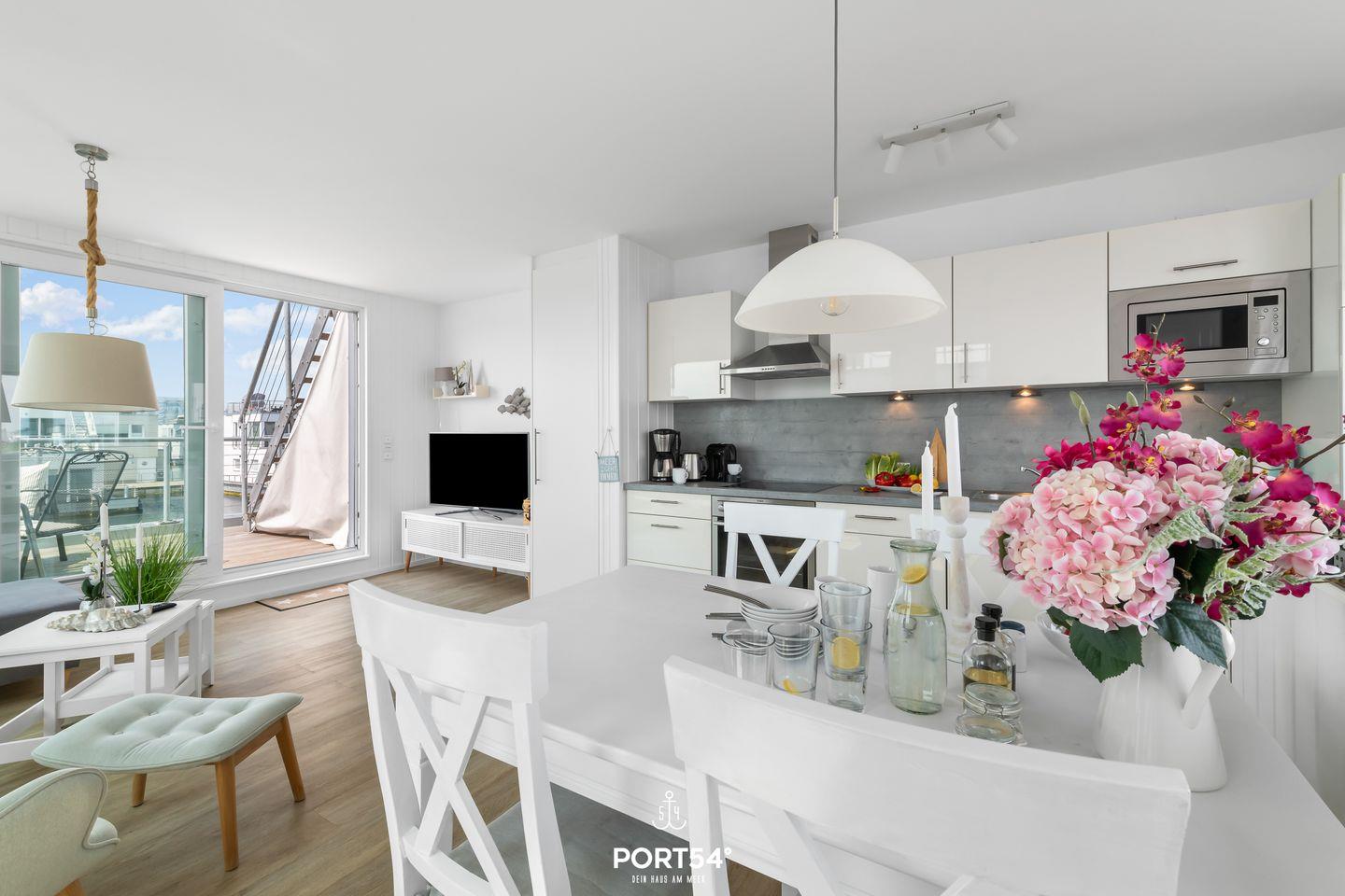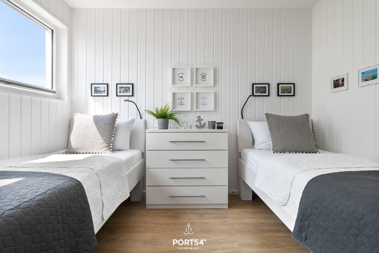 Erleben Sie den ultimativen Urlaub an der Ostsee in dem einzigartigen Ferienhaus "Key West" – ein schwimmendes Haus, das keine Wünsche offenlässt! Genießen Sie das besondere Flair und das sanfte Schaukeln des Wassers direkt unter Ihnen. Unser Ferienhaus "Key West" verfügt über 2 gemütliche Schlafzimmer, in denen Sie komfortabel schlafen und mit dem beruhigenden Klang der Wellen aufwachen. Das eine Schlafzimmer bietet ein Doppelbett (180x200cm), einen Kleiderschrank und einen Zugang zur Terrasse. Im dem anderen Schlafzimmer befinden sich zwei Einzelbetten (90x200cm). Beide Schlafzimmer sind zusätzlich mit einem Flachbild-Fernseher und Verdunkelungsmöglichkeiten ausgestattet. Entspannen Sie in Ihrer eigenen Sauna und lassen Sie den Alltag hinter sich. Das Tageslichtbad überzeugt mit einer Dusche, einem Kosmetikspiegel, einem Fön und einem Handtuchheizkörper. Der offene Wohn-/Essbereich im Obergeschoss bietet einen großzügigen Raum für gesellige Abende mit Familie und Freunden. Verbringen Sie lustige Spieleabende an der hauseigenen Playstation, oder verbringen Sie einen gemütlichen Filmeabend auf dem Sofa. Atmen Sie die frische Seeluft auf der Panorama Terrasse ein und genießen Sie den atemberaubenden Wasserblick. Egal wo Sie sich befinden, Sie haben stets einen wunderbaren Blick aufs Wasser. Die offene Küche ist voll ausgestattet und lässt keine Wüsche offen. Machen Sie es sich in gemütlichen Lounge auf der Dachterrasse bequem und lassen Sie die Seele baumeln. Für die Kleinen stehen ein Kinderreisebett, eine Hochstuhl und ein Kindertritthocker bereit. Das Ferienhaus "Key West" liegt im idyllischen Olpenitz, nur wenige Schritte vom Strand entfernt. Hier finden Sie die perfekte Kombination aus Entspannung und Abenteuer. Erkunden Sie die Umgebung, genießen Sie Wassersport oder lassen Sie einfach die Seele baumeln. Gönnen Sie sich eine Auszeit in unserem Ferienhaus und erleben Sie einen unvergesslichen Urlaub auf dem Wasser. Wir freuen uns darauf, Sie bald bei uns willkommen zu heißen!
