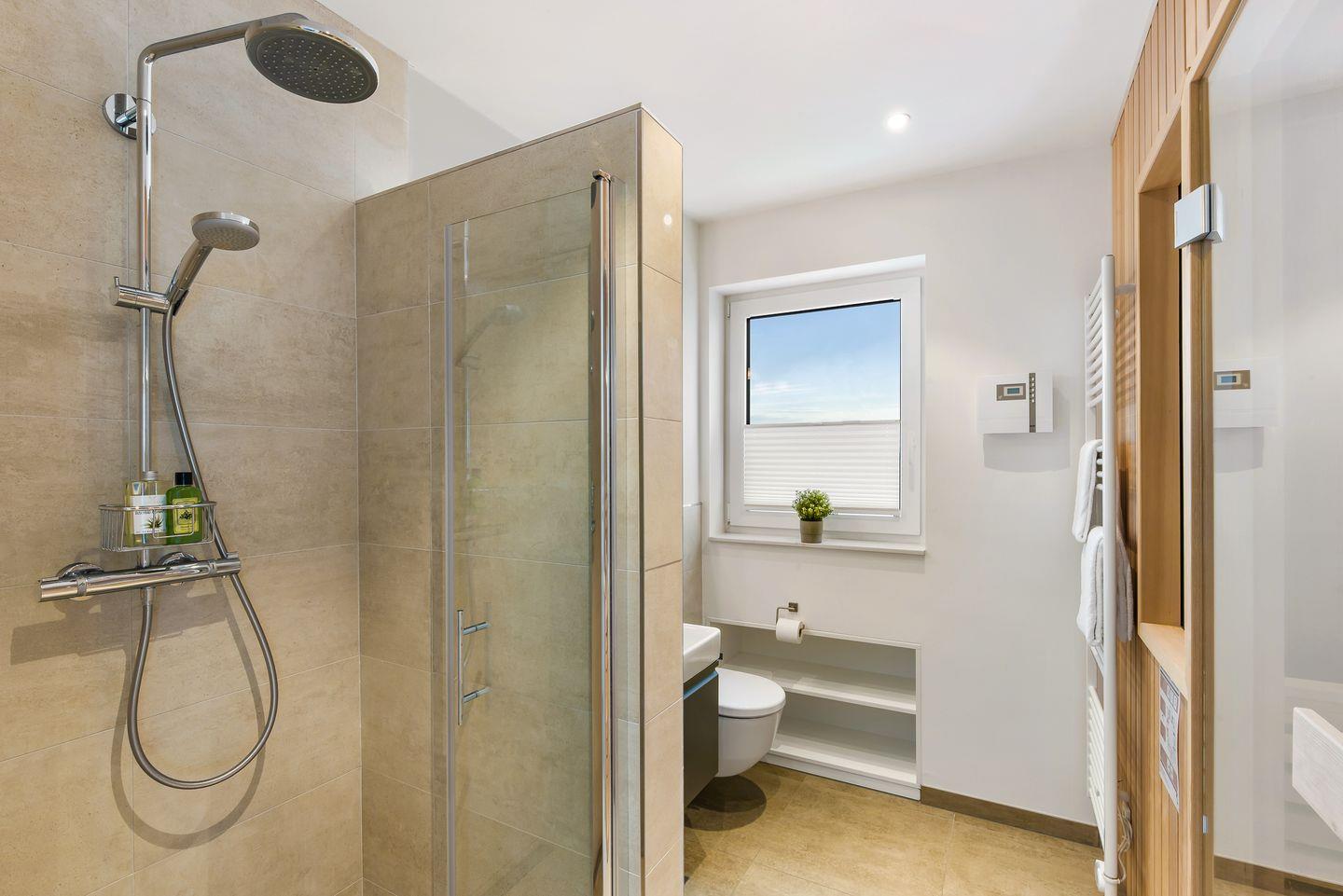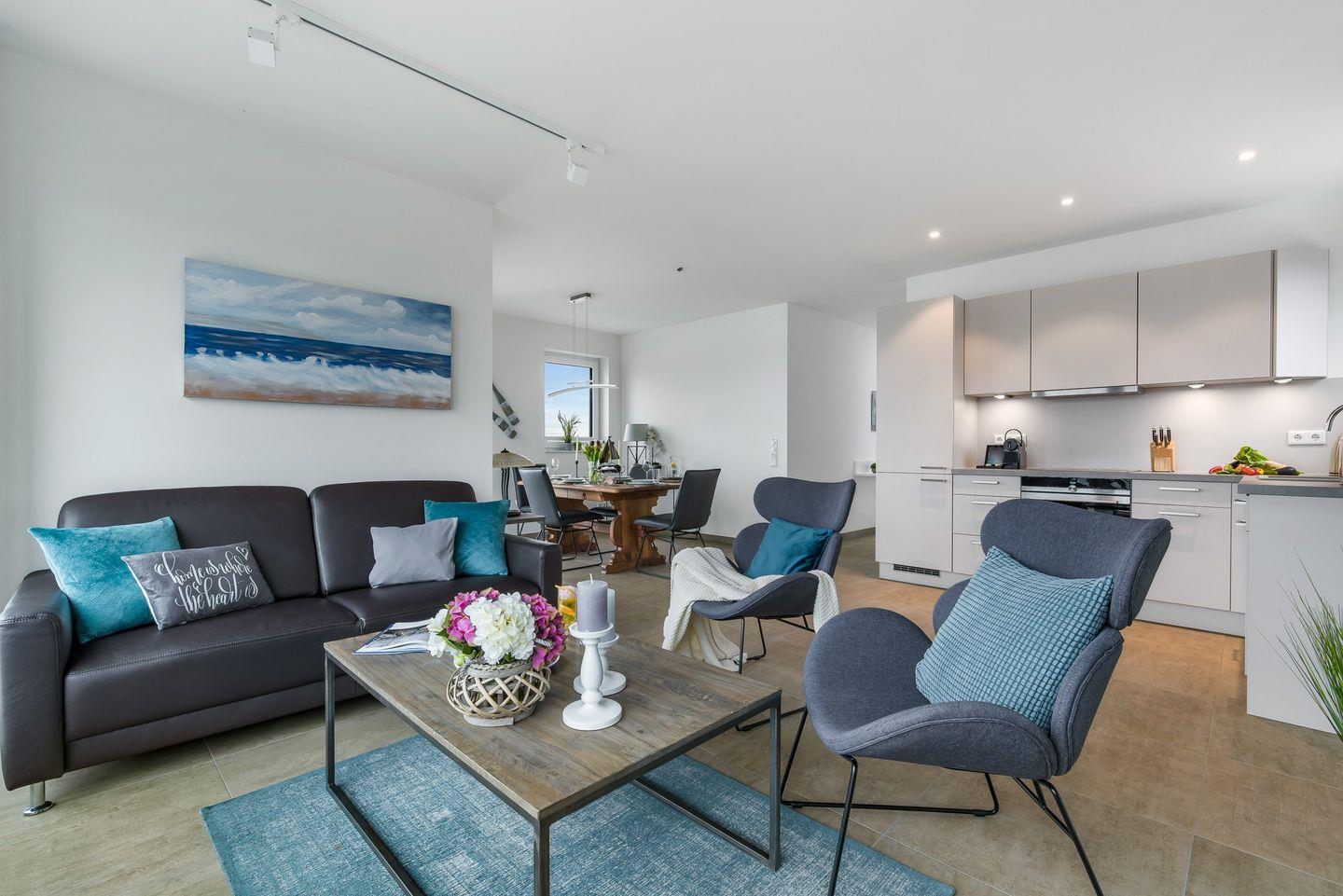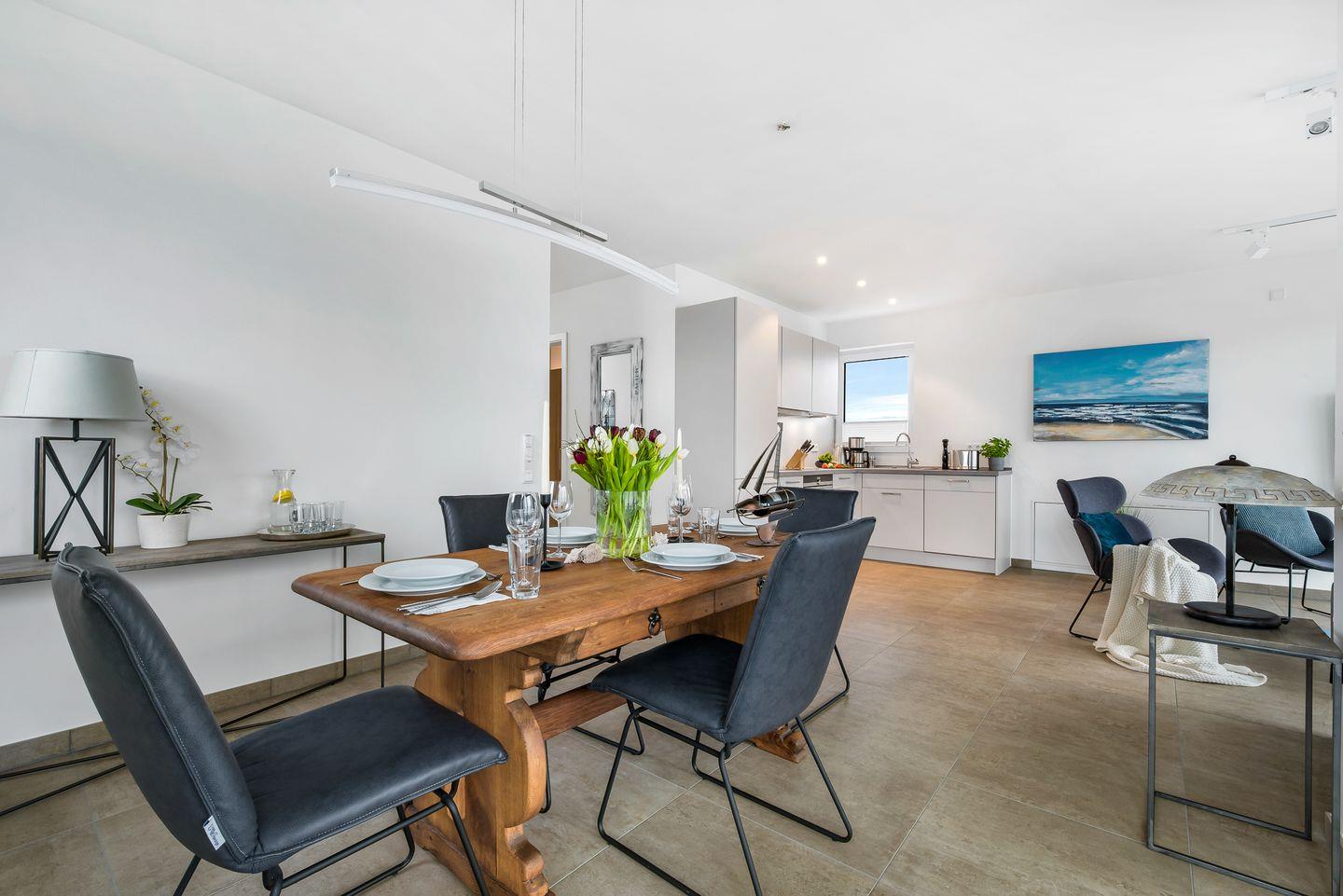 Die moderne Penthouse-Ferienwohnung "Dock 76 Bridge" in Olpenitz bietet höchsten Komfort und einen traumhaften Wasserblick auf Schlei und Ostsee. Der große Balkon lädt zum Sonnenbaden und Grillen ein. Der Wohn- und Essbereich hat bodentiefe Fenster. Das Duschbad verfügt über einen Kosmetikspiegel, Föhn und eine finnische Sauna. Das Hauptschlafzimmer hat ein Boxspring-Doppelbett mit Strandblick, das zweite Schlafzimmer zwei Boxspring-Einzelbetten. Ein PKW-Stellplatz mit Ladesäule ist vorhanden.