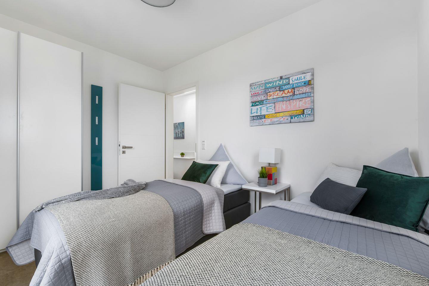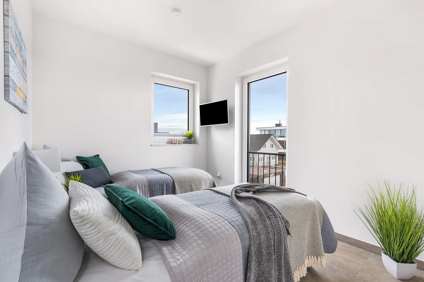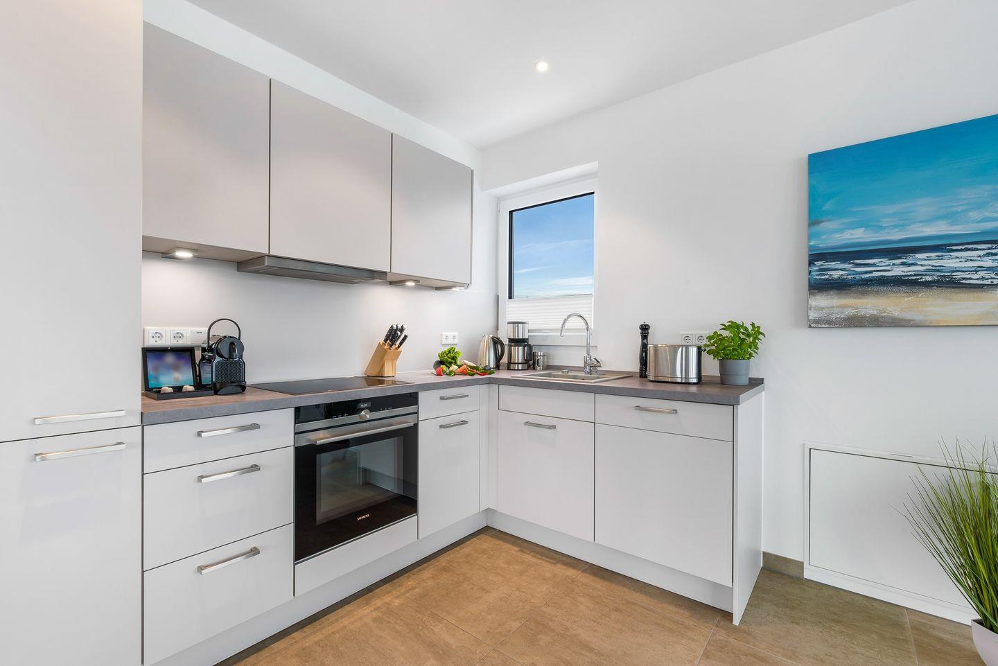 Die moderne Penthouse-Ferienwohnung "Dock 76 Bridge" in Olpenitz bietet höchsten Komfort und einen traumhaften Wasserblick auf Schlei und Ostsee. Der große Balkon lädt zum Sonnenbaden und Grillen ein. Der Wohn- und Essbereich hat bodentiefe Fenster. Das Duschbad verfügt über einen Kosmetikspiegel, Föhn und eine finnische Sauna. Das Hauptschlafzimmer hat ein Boxspring-Doppelbett mit Strandblick, das zweite Schlafzimmer zwei Boxspring-Einzelbetten. Ein PKW-Stellplatz mit Ladesäule ist vorhanden.