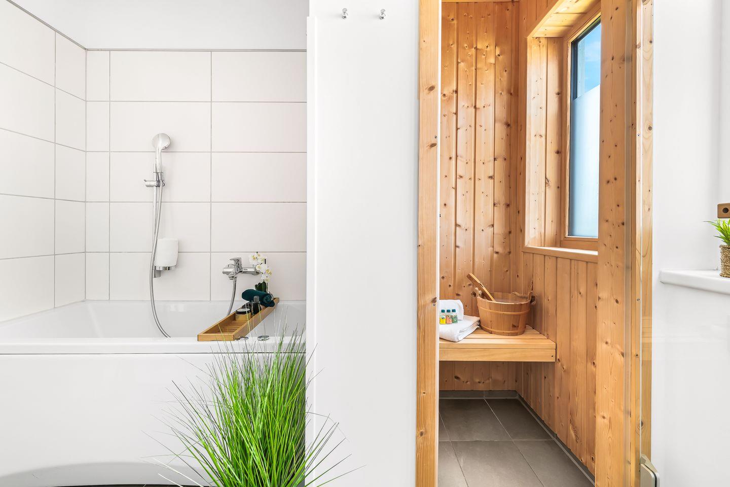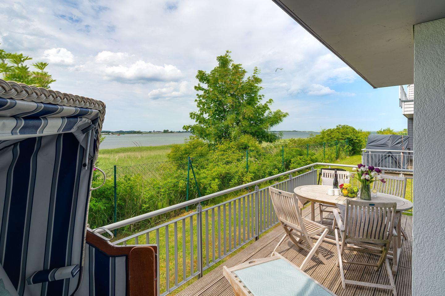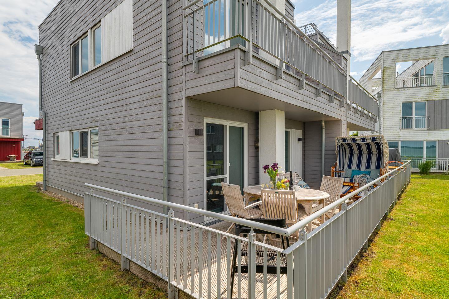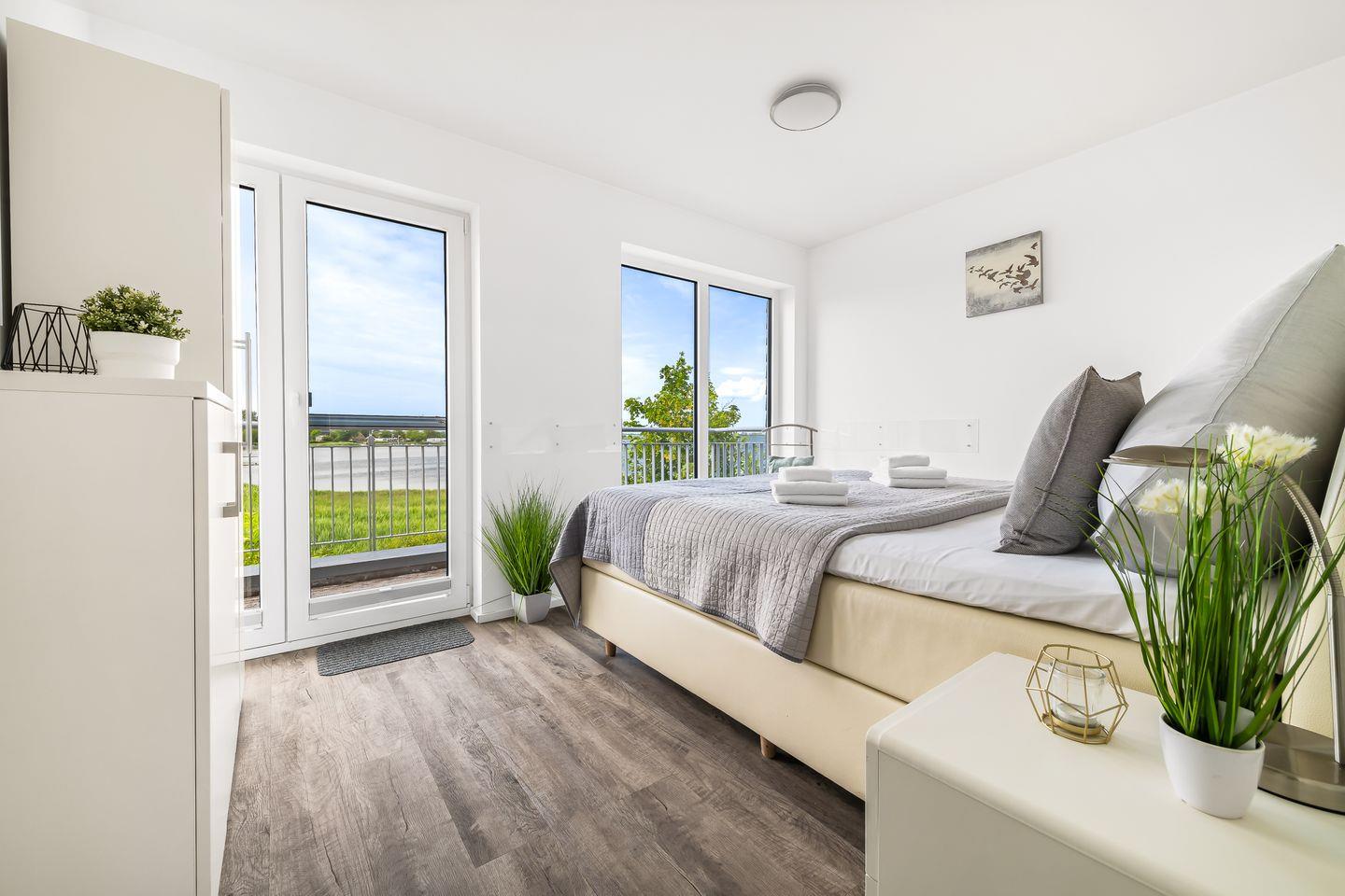 Diese traumhafte Doppelhaushälfte bietet auf knapp 102m² allen Luxus, den man sich für einen erholsamen Urlaub wünschen kann! Nach Betreten dieser befinden Sie sich im lichtdurchfluteten Wohn- und Essbereich wieder, der modern und gemütlich eingerichtet ist. Dank der bodentiefen Panoramafenster haben Sie einen atemberaubenden Ausblick über die Schlei. Vom Wohn- und Essbereich aus haben Sie Zugang zu der Terrasse. Genießen Sie Ihr Frühstück auf den Gartenmöbeln oder beobachten Sie den Sonnenuntergang mit einem Glas Wein im Strandkorb. Für gesellige Grillabende steht Ihnen ein Elektro-Grill zu Verfügung. Auch der Kaminofen im Wohnbereich trägt zu einer Wohlfühlatmosphäre an kühleren Tagen bei. Verbringen Sie gemütliche TV-Abende auf dem Sofa oder gemeinsame Spielabende mit den hauseigenen Spielen am Esstisch. Die offene Küche ist hervorragend ausgestattet und ermöglicht Ihnen vielfältige Möglichkeiten Ihre Speisen zu zubereiten. Im Obergeschoss befinden sich die beiden Schlafzimmer. Das eine ist mit einem gemütlichen Boxspring-Doppelbett ausgestattet und bietet einen traumhaften Blick auf die Schlei. Das andere Schlafzimmer verfügt ebenfalls über ein Boxspringbett-Doppelbett (180x200cm) und bietet einen weiteren Schlafplatz auf einem Schlafsessel (100x200cm). In diesem Schlafzimmer befindet sich zusätzlich ein Flachbild-Fernseher und Sie haben von hier aus einen wunderbaren Blick auf die Marina des Resorts. Beide Schlafzimmer bieten Ihnen jeweils einen Kleiderschrank und Verdunkelungsmöglichkeiten. Das große Wellnessbad mit eigener finnischer Sauna ist ein absolutes Highlight! Entspannen Sie hier wahlweise in der Whirlwanne oder unter der Dusche. Ein weiteres Highlight des Hauses ist die große Dachterrasse mit 360° Panoramablick. Bestaunen Sie ein unvergesslicher Ausblick auf die Schlei, die Schleimündung, die Ostsee und das Hafenbecken des OstseeResorts Olpenitz. Zwei eigene PKW-Stellplätze und ein abschließbarer Fahrradschuppen sind am Haus vorhanden.