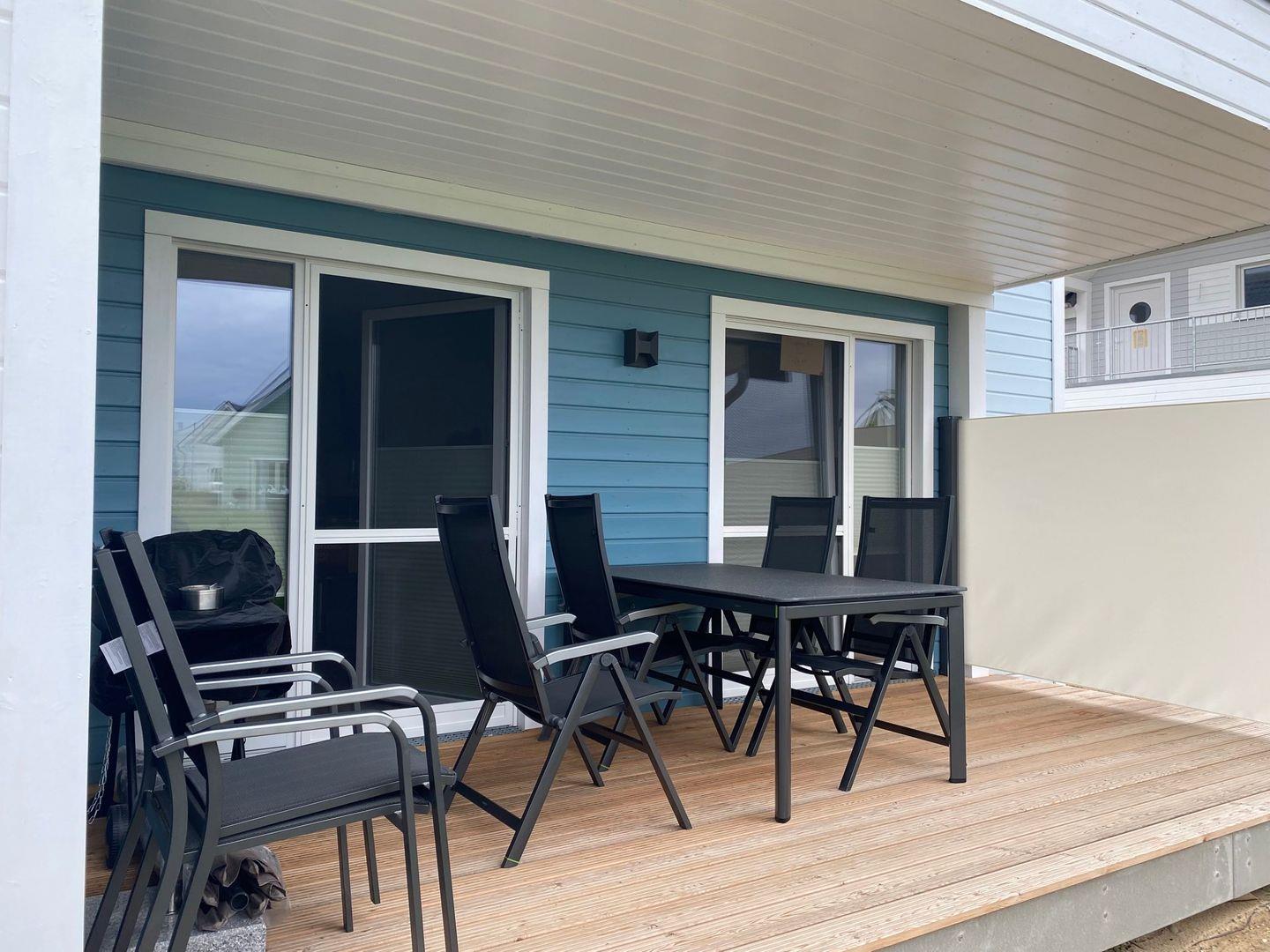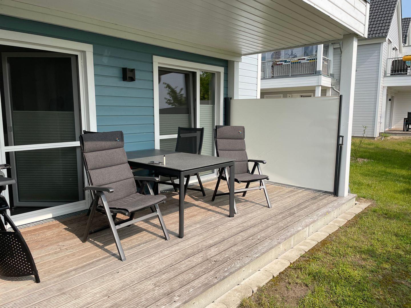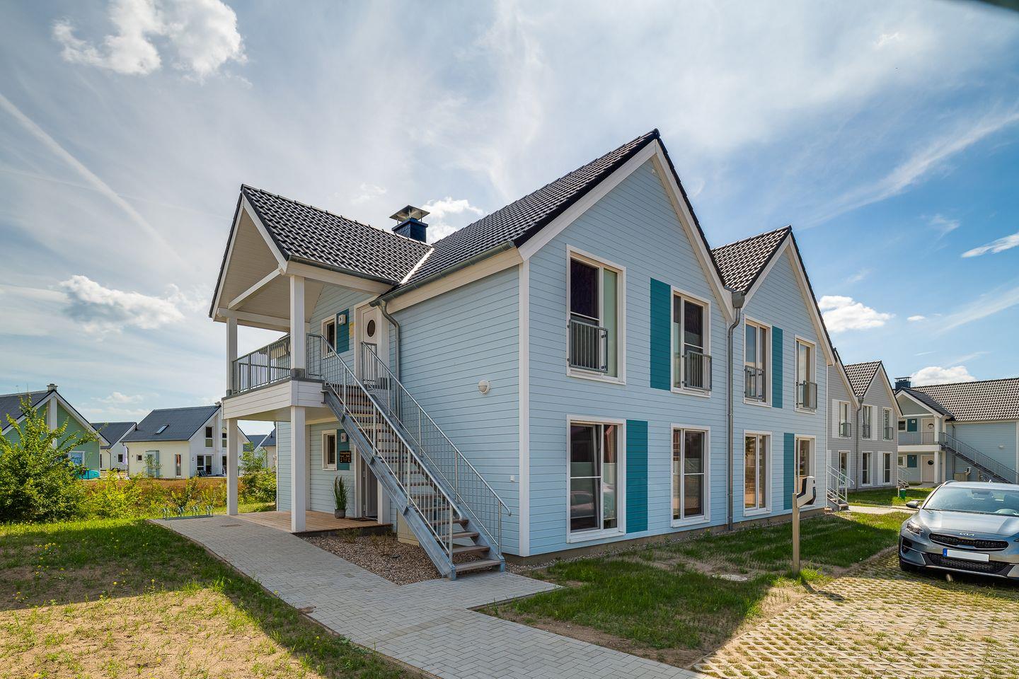 In dieser barrierearmen und gemütlich eingerichteten Wohnung fühlen Sie sich schnell wie zu Hause. Die Wohnung "Krosse Krabbe'' bietet mit 2 Schlafzimmern und einem großen offenen Wohn-/Essbereich reichlich Platz für bis zu 6 Personen. Die Türen in dieser Wohnung haben eine Breite von ca. 1m. Der fußläufig erreichbare Weidefelder Strand bringt sofort Entspannung pur, sodass der Alltag schnell in Vergessenheit gerät. Der große Wohn- und Essbereich ist modern eingerichtet und durch bodentiefe Fenster sehr hell. In der kalten Jahreszeit können Sie es sich vor dem Kamin im Wohnzimmer gemütlich machen. Machen Sie es sich auf dem Sofa mit Schlaffunktion (135x200cm) bei einem spannenden Film gemütlich oder verbringen Sie gemeinsame Spieleabende am Esstisch. In dem Möbeltresor können alle wichtigen Gegenstände sicher verstaut werden. An warmen Sommertagen sorgen zwei Ventilatoren für einen kühlen Kopf. Die offene und hochwertige Küche ist voll ausgestattet lädt zu gemeinsamen Kochabenden ein. Ein Schlafzimmer verfügt über ein Doppelbett (180x200cm) und das zweite Zimmer über zwei Einzelbetten (je 100x200cm), sowie einen Flachbild-Fernseher. Beide Schlafzimmer sind mit je einem Kleiderschrank, Verdunkelungsmöglichkeiten und Insektenschutzgitter ausgestattet. Das Tageslicht-Duschbad hält für Sie ein Fön, einen Kosmetikspiegel und einen Handtuchheizkörper bereit. Nach einem Spaziergang an der frischen Ostseeluft können Sie sich in der Infrarot-Sauna entspannen. Die Ost-Terrasse bietet wunderschöne Sonnenaufgänge bei einem ausgiebigen Frühstück. Dank des Elektrogrills steht auch einem gemütlichen Grillabend nichts mehr im Weg. Für die Kleinen sind ein Kinderhochstuhl und ein Kinderreisebett vorhanden. Ein kostenloser PKW-Stellplatz mit E-Ladesäule und ein abschließbarer Fahrradschuppen befinden sich vor dem Haus. Für einen unvergesslichen Ostsee-Urlaub finden Sie in Ferienwohnung "Krosse Krabbe" einen Faltbollerwagen, einen Tretroller, ein Federball-Set und ein Botscha-Spiel.