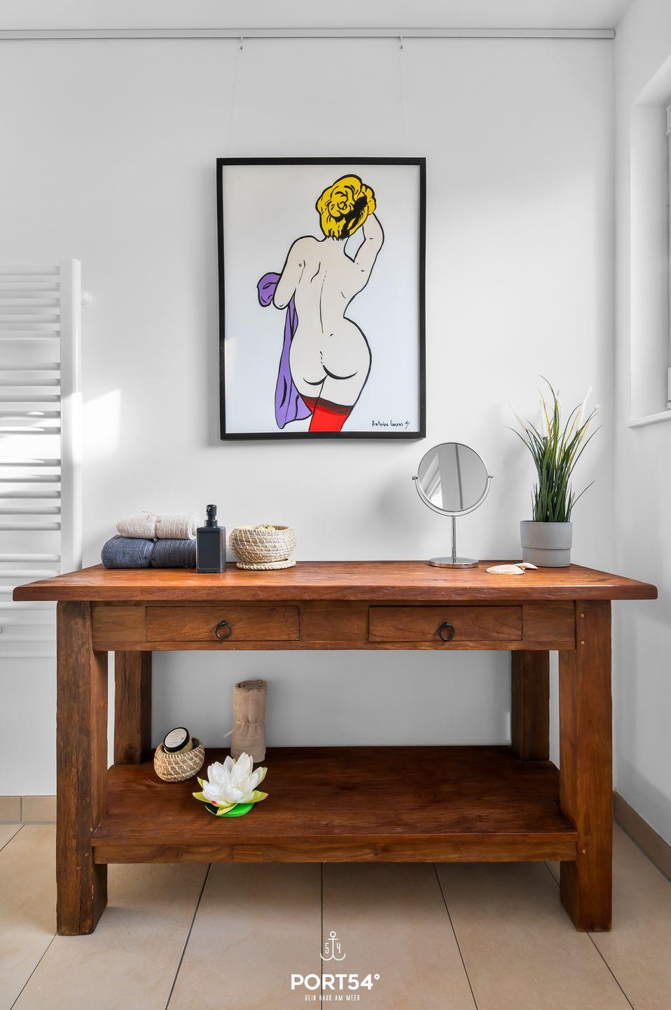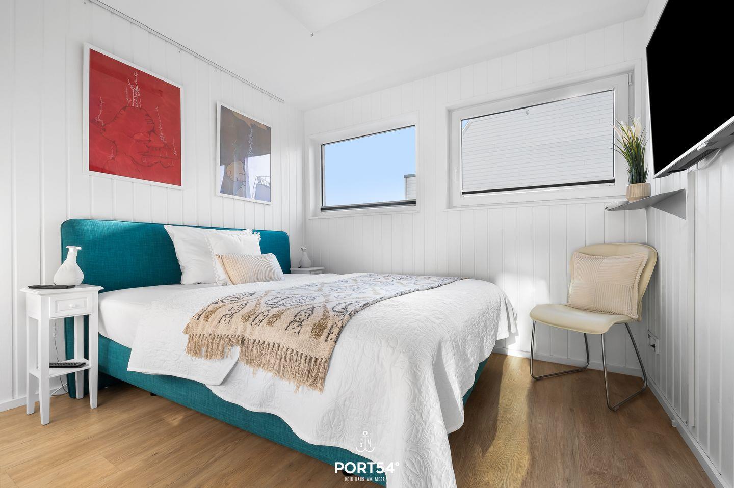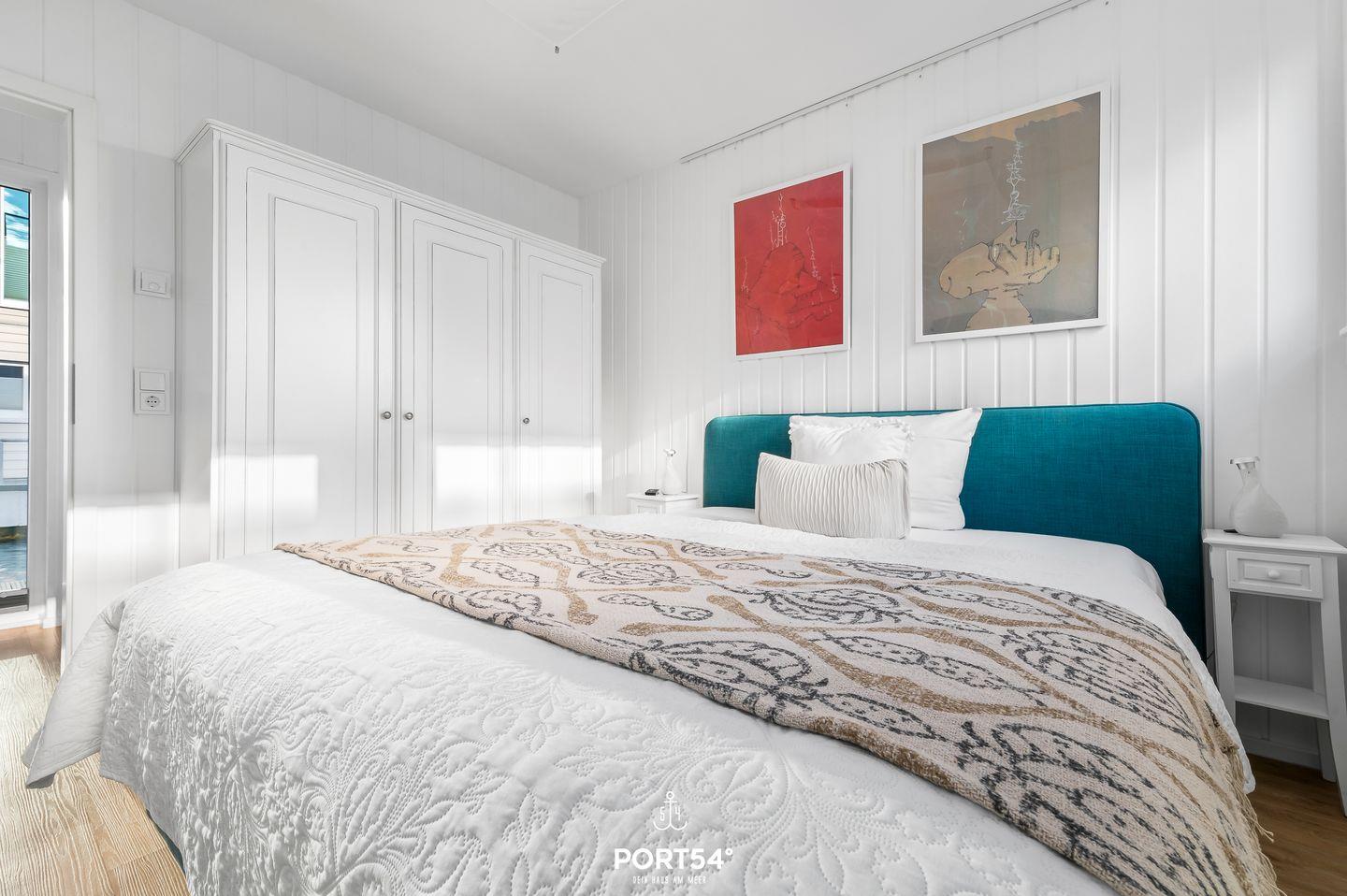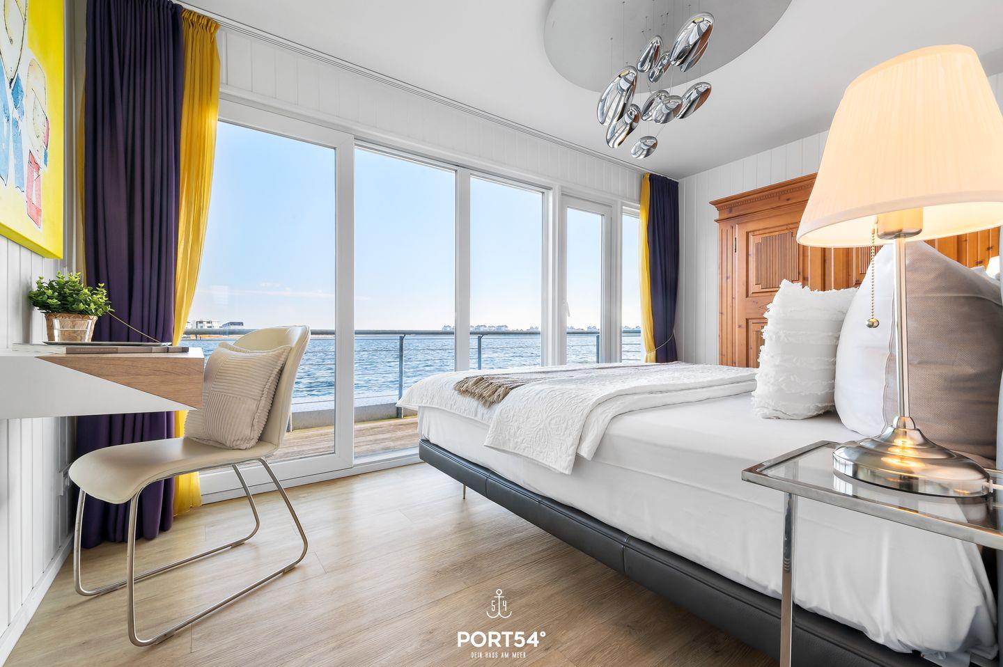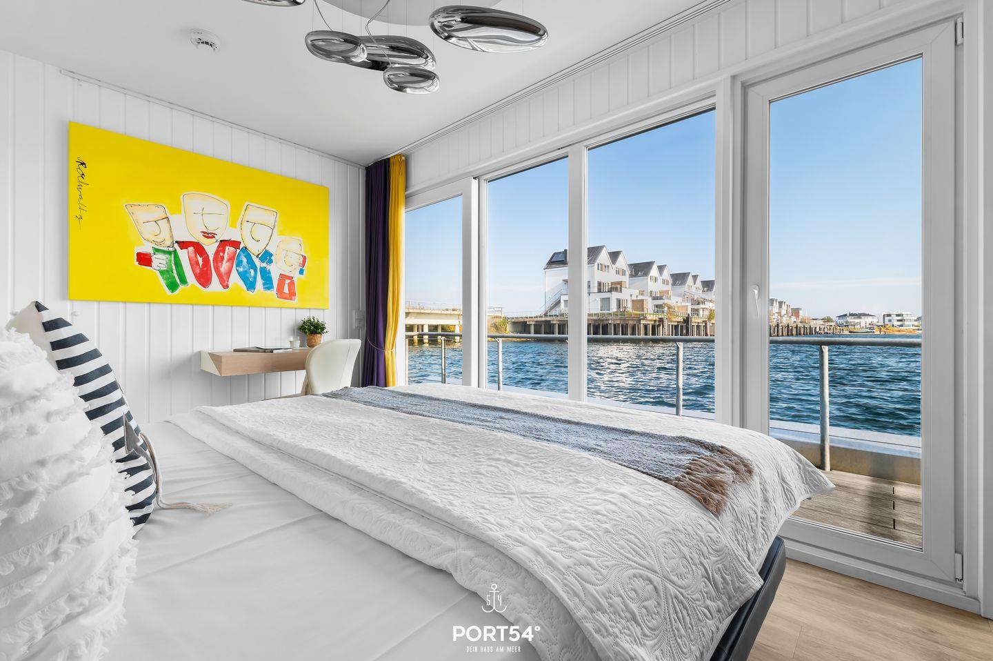 Das schwimmende Ferienhaus "Art Emotion" bietet auf großzügigen 97m² bis zu 4 Personen ein erstklassiges Urlaubserlebnis direkt an der Ostsee. Das Haus besticht durch seinen modernen Stil, ausgewählter Kunst und einer hochwertigen Ausstattung, die keine Wünsche offenlässt. Das Highlight ist zweifellos die großzügige Dachterrasse, die einen unvergleichlichen 360°-Panoramablick über die Schlei, die Ostsee und das malerische Hafenbecken des OstseeResorts Olpenitz ermöglicht. Hier können Sie es sich im Strandkorb oder auf den Sonnenliegen gemütlich machen und bei einem kühlen Getränk den Sonnenuntergang und die atemberaubenden Aussichten genießen. Im Erdgeschoss des Hauses befinden sich die beiden komfortablen Schlafzimmer. Das erste Schlafzimmer ist mit einem luxuriösen Boxspring-Doppelbett (180x200cm) ausgestattet, das für einen erholsamen Schlaf sorgt. Zusätzlich steht Ihnen hier ein kleiner Schreibtisch zur Verfügung. Von hier aus gelangen Sie auch auf die Terrasse und können direkt nach dem Aufstehen die frische Seeluft einatmen. Im zweiten Schlafzimmer befinden sich ein kleines Boxspring-Doppelbett (160x200cm), welches ebenfalls hohen Schlafkomfort bietet. Hier finden Sie einen Flachbild-Fernseher für Ihre Unterhaltung vor. Beide Schlafzimmer sind zudem mit Verdunkelungsmöglichkeiten und jeweils einem Kleiderschrank ausgestattet. Das Tageslichtbad sorgt mit der bodengleichen Dusche für höchsten Komfort. Auch ein Handtuchheizkörper, ein Kosmetikspiegel und ein Fön sind vorhanden. Ein weiteres Highlight ist die finnische Sauna, in der Sie sich hervorragend vom Alltagsstress erholen können. Der offene Wohn- und Essbereich befindet sich im Obergeschoss und bietet Ihnen dank bodentiefer Fenster eine tolle Aussicht. Die offene Küche ist mit Espressomaschine, Induktionsherd und vielem mehr bestens ausgestattet. Der angrenzende Essbereich bietet Platz für ausgedehnte Mahlzeiten. Im Wohnbereich lädt der Flachbild-Fernseher zum Entspannen ein. Ein Blu-Ray Player und Magenta TV ermöglichen Ihnen gemütliche Filmeabende. Vom Wohnbereich aus gelangen Sie auf den Balkon. Verbringen Sie gesellige Grillabende, oder machen Sie Ihr gemeinsames Frühstück unter dem Sonnenschirm zu einem unvergesslichen Erlebnis. Über den Balkon gelangen Sie zur Dachterrasse. Für Ihren PKW befindet sich vor der Steg-Anlage ein kostenloser Stellplatz, alternativ können Sie auch mit Ihrem Boot anreisen und dies am Haus vertäuen. Das schwimmende Ferienhaus "Art Emotion" ermöglicht Ihnen einen traumhaften Urlaub auf dem Wasser, voller Komfort, Kunst und atemberaubender Natur.