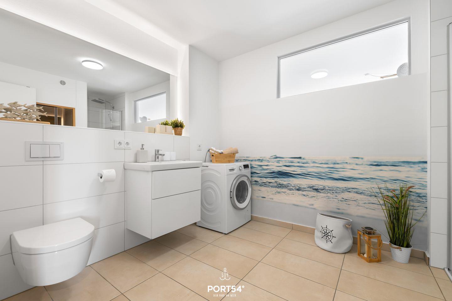 Die Wohnung verfügt über zwei Schlafzimmer. Das erste Schlafzimmer ist mit einem komfortablen Boxspringbett (180x200 cm) ausgestattet und bietet zusätzlich einen TV, sodass Sie sich auch im Bett entspannen können. Das zweite Schlafzimmer bietet mit einem Etagenbett Schlafmöglichkeiten für bis zu drei Personen – perfekt für Familien mit Kindern. Die Schlafräume sind lichtdurchflutet und garantieren durch Verdunklungsmöglichkeiten einen erholsamen Schlaf. Das moderne Duschbad ist ein weiteres Highlight der Wohnung. Es verfügt über eine hochwertige Ausstattung und bietet mit einer Infrarotsauna einen zusätzlichen Ort der Entspannung, ideal für erholsame Stunden nach einem Spaziergang an der Ostsee oder einem aktiven Tag in der Umgebung.