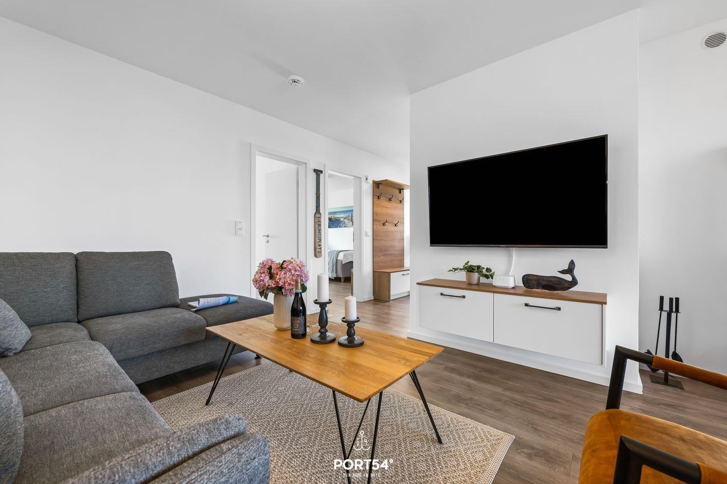 Die große Ferienwohnung "Nordisch 54" bietet Platz für 5 Personen und verfügt über einen gemütlichen Wohnbereich mit Kaminofen. Die offene Küche ist voll ausgestattet und die Terrasse lädt zum Entspannen ein. Im Bad erwarten Sie eine Infrarot-Sauna und eine ebenerdige Dusche. Zwei Schlafzimmer mit TV sorgen für Komfort. Ein PKW-Stellplatz ist ebenfalls vorhanden.