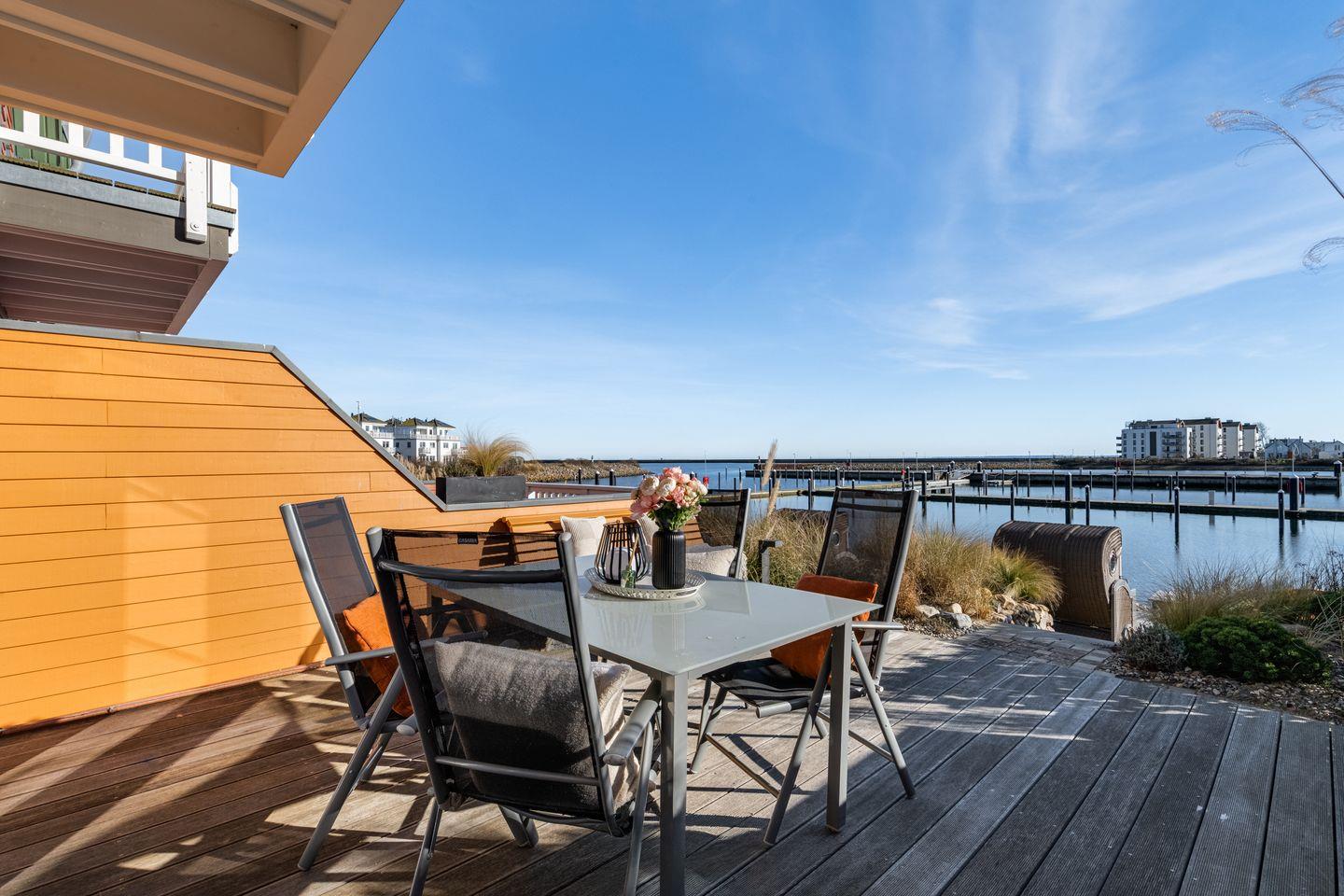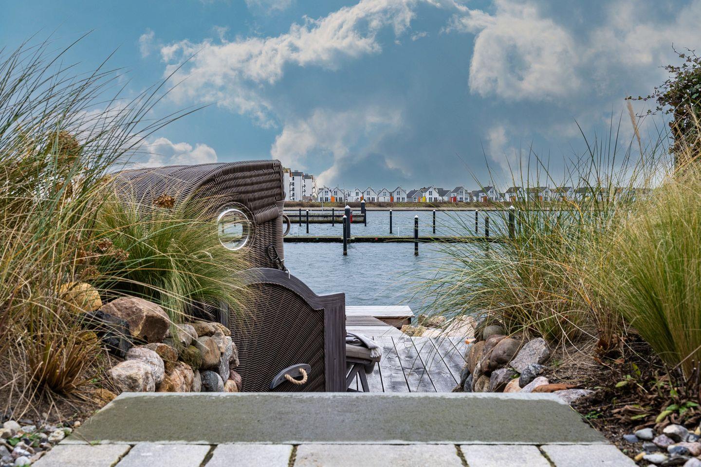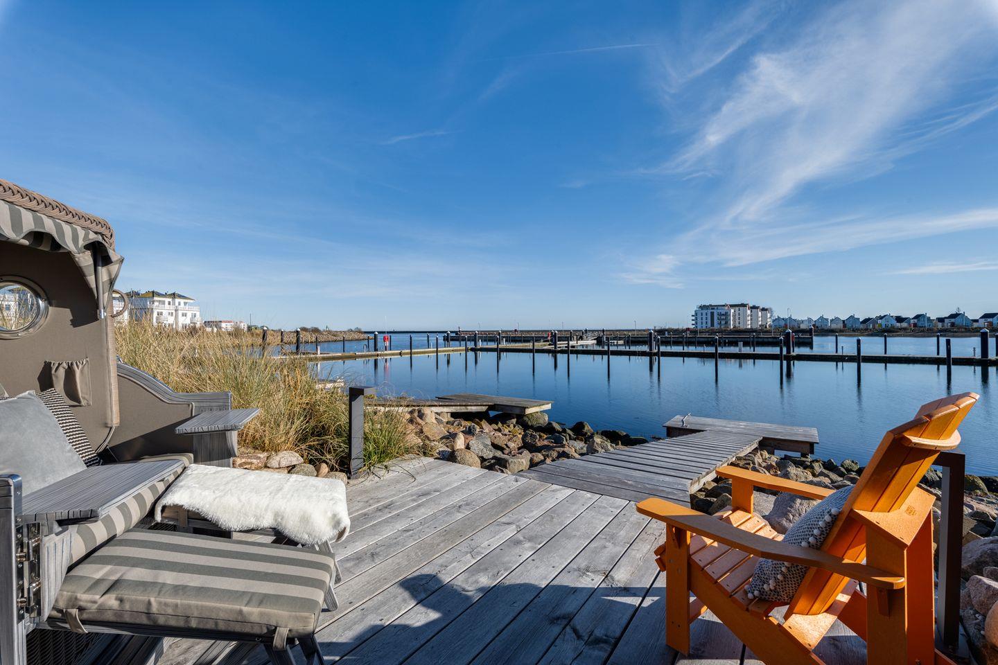 Das frisch renovierte Ferienhaus „Hafenspaß“ bietet auf ca. 100 qm Platz für 4 Personen und eine Einrichtung im gemütlichen Landhausstil direkt am Wasser. Der Wohnbereich mit Panoramafenstern bietet Ausblick auf den Hafen, eine moderne Küche und einen Kamin. Zwei Schlafzimmer im Obergeschoss und ein Badezimmer mit finnischer Sauna komplettieren das Angebot. Die Terrassen laden zum Entspannen ein. Familienfreundliche Ausstattung inklusive Parkplatz mit E-Ladesäule. - Wenige Meter zum Strand.
