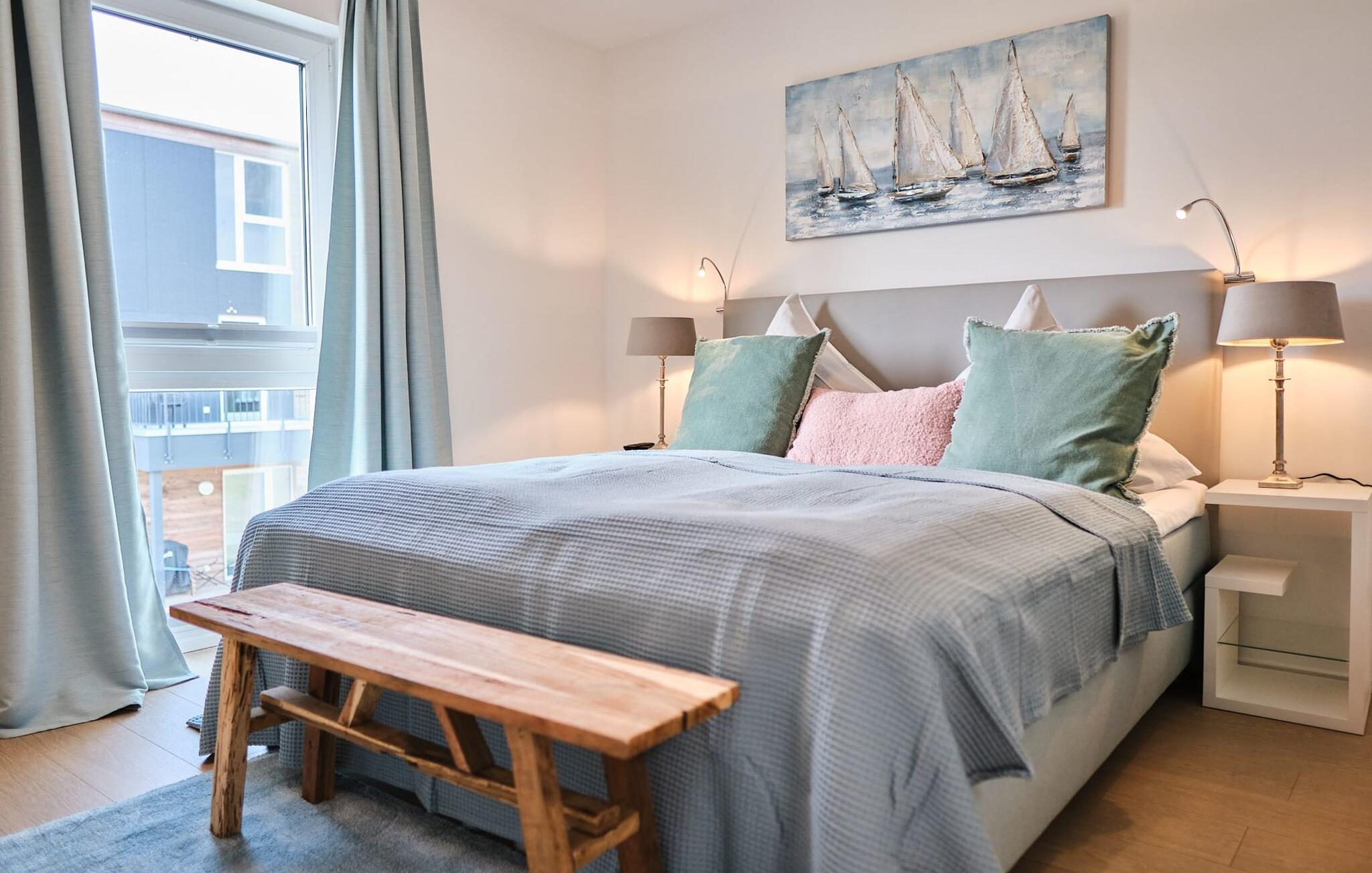 ORO MARE er en rummelig og rummelig maisonette ferielejlighed på første og anden sal med udsigt over havnebassinet. Havnepromenaden i OstseeResort Olpenitz med dets voksende udbud og indkøbsmuligheder samt sejl- og sportsbådshavnen i OstseeResort Olpenitz kan nås til fods. Den maritime minigolfbane ligger i umiddelbar nærhed og byder på sjov for hele familien. Når I går ind i ORO MARE på første sal, begynder decelerationen fra allerførste øjeblik. I befinder jer direkte i lejlighedens afslapningsområde. På denne etage er der lejlighedens tre soveværelser med to dobbelte boxmadrasser og to enkeltbokse. Uanset hvilket soveværelse I vælger, kan I være sikker på en afslappende søvn. Soveværelserne er hver især udstyret med en stor fladskærm til underholdning og der er også en arbejdsstation med et højdejusterbart skrivebord. Der er også et veludstyret badeværelse med badekar på denne etage. Når I ankommer på anden sal, bliver I budt velkommen af vinduesfronten fra gulv til loft med den tilstødende terrasse. Kom ind og føl jer hjemme. At slappe af i den hyggelige opholdsstue, nyde udsigten over havnen fra vinduet eller se tv er ren afslapning og afslapning! Hverdagen bliver mere og mere fjern... Skulle vejret nogensinde blive nordisk, vil pejsen med sin brølende ild give yderligere hygge. Der er plads til yderligere to personer til at sove på sovesofaen. Det integrerede køkken er perfekt udstyret og af høj kvalitet. Komfortable havemøbler og en grill venter på jer på terrassen. I kommer direkte ind på den store sydvestvendte terrasse fra opholdsstuen. Her kan I tilbringe mange afslappende timer med heldagssol og se fantastiske solnedgange. Et andet komplet badeværelse med wellnesskarakter og en rummelig panoramabruser på gulvniveau og infrarød sauna runder den komplette pakke af ideelt til en afslappende ferie. Foran ferielejligheden finder I jeres egen parkeringsplads. Vores favoritsted: hyggelige timer med udsigt til sofaområdet foran den knitrende pejs i ORO MARE... Bemærk venligst: OstseeResort Olpenitz er meget populært, og der bygges fortsat i parken. Ikke desto mindre kan I se frem til en 5-stjernet standard og et førsteklasses ophold. Byggeaktiviteterne kommer ikke til at forstyrre jer på ferien, og derfor gives der ikke yderligere afslag i prisen.
