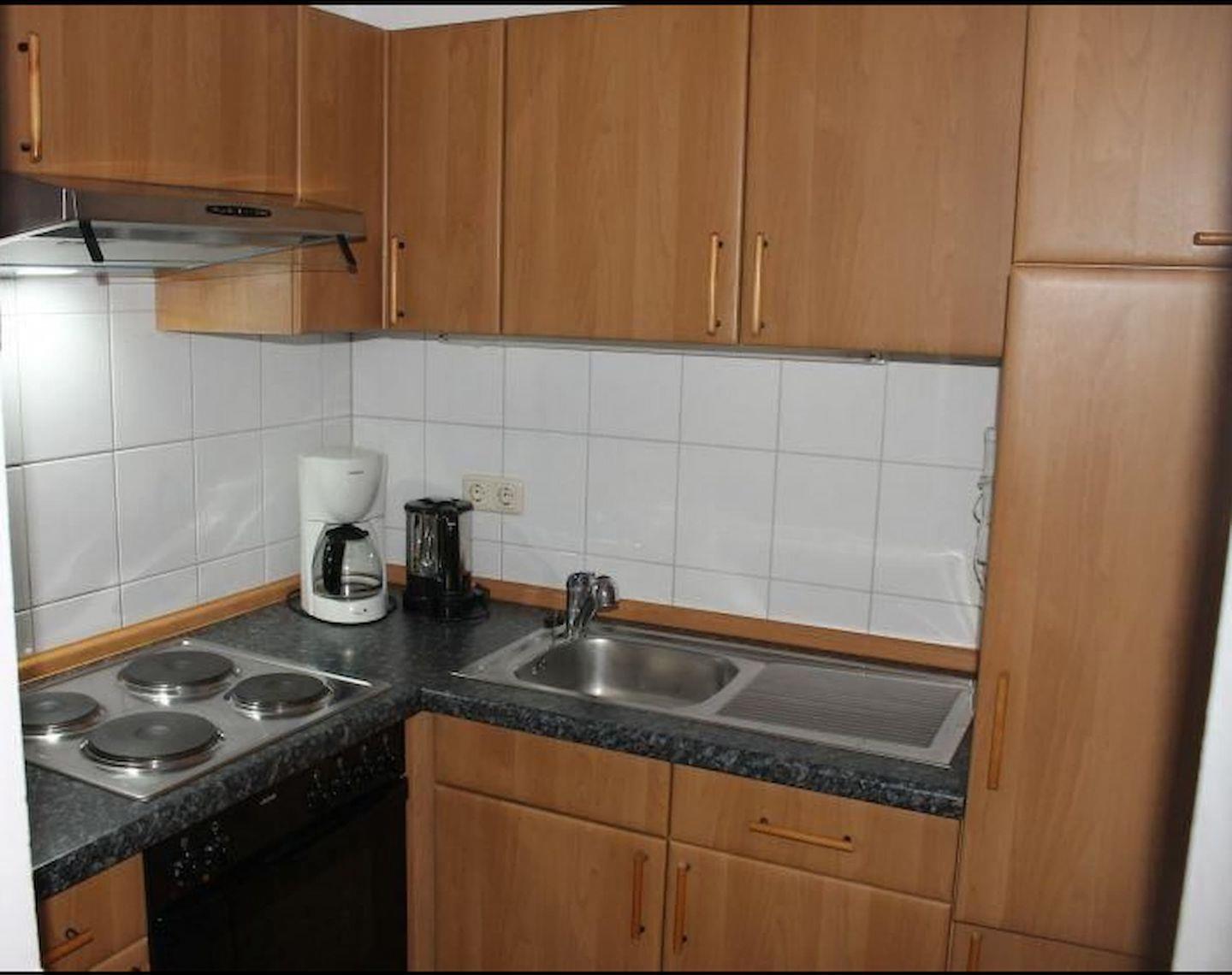 Die Küche ist komplett ausgestattet mit Geschirr, Gläsern und Kochequipment sowie Kühlschrank mit Gefrierfach, Kaffeemaschine und Wasserkocher. Ein Kinderreisebett und ein Hochstuhl gehören zur Ausstattung.