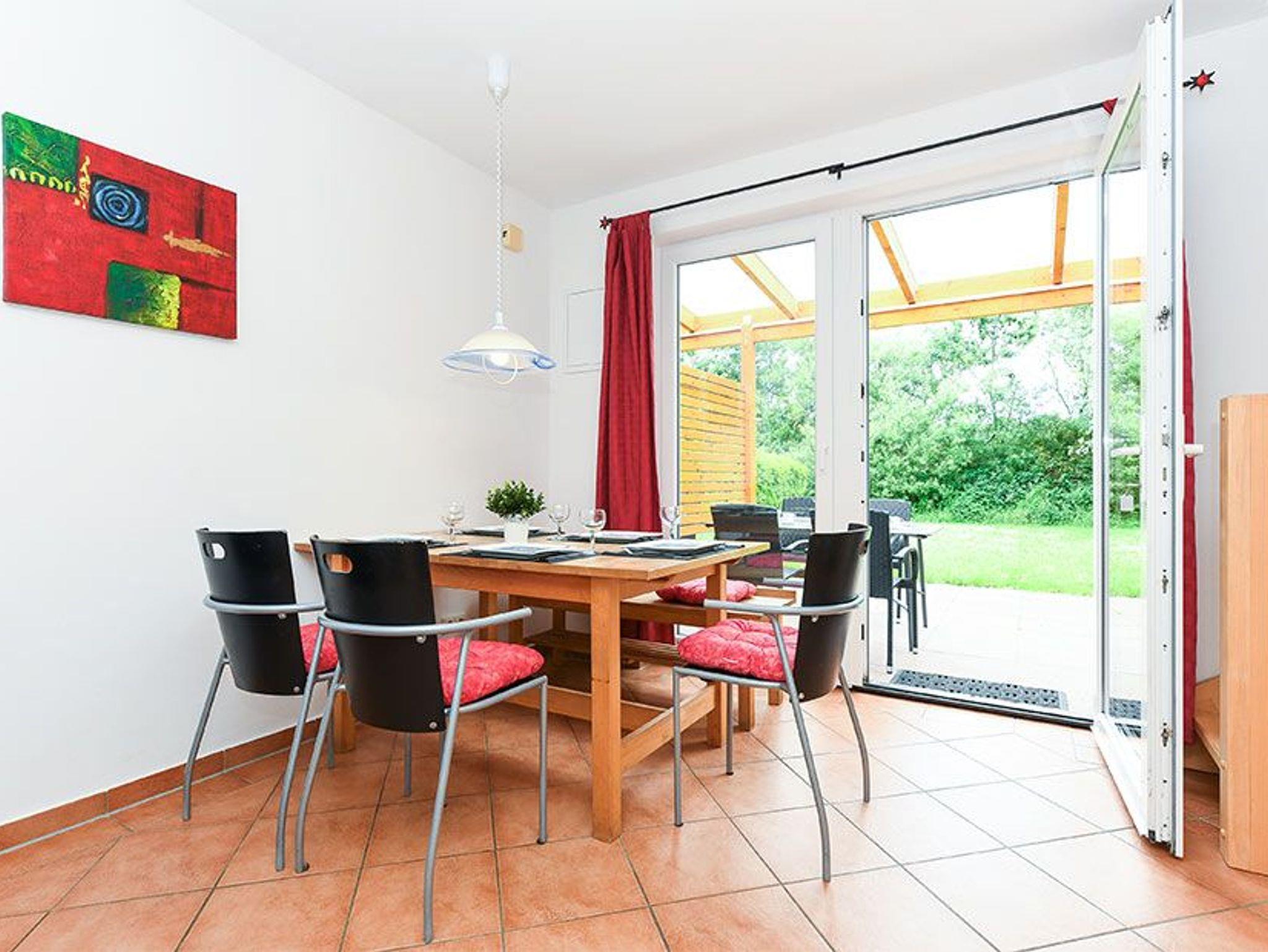 Größe ca. 60 Quadratmeter, Wohnzimmer, Küche, Schlafzimmer, zweites separates Schlafzimmer/Kinderzimmer, Badezimmer mit Dusche, Waschtisch und WC, Erdgeschoss, Terrasse, optimal für 2 bis 5 Personen und zusätzlich ein Kleinkind.