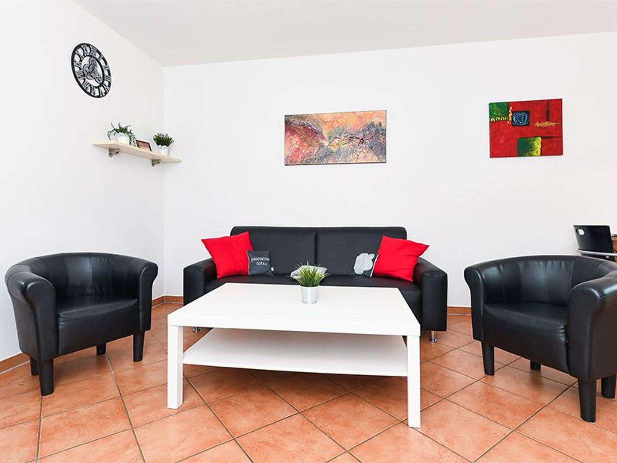 Größe ca. 60 Quadratmeter, Wohnzimmer mit integrierter Küche, Schlafzimmer, zweites separates Schlafzimmer/Kinderzimmer, Badezimmer mit Dusche, Waschtisch und WC, Erdgeschoss, Terrasse, optimal für 2 bis 5 Personen und zusätzlich ein Kleinkind.
