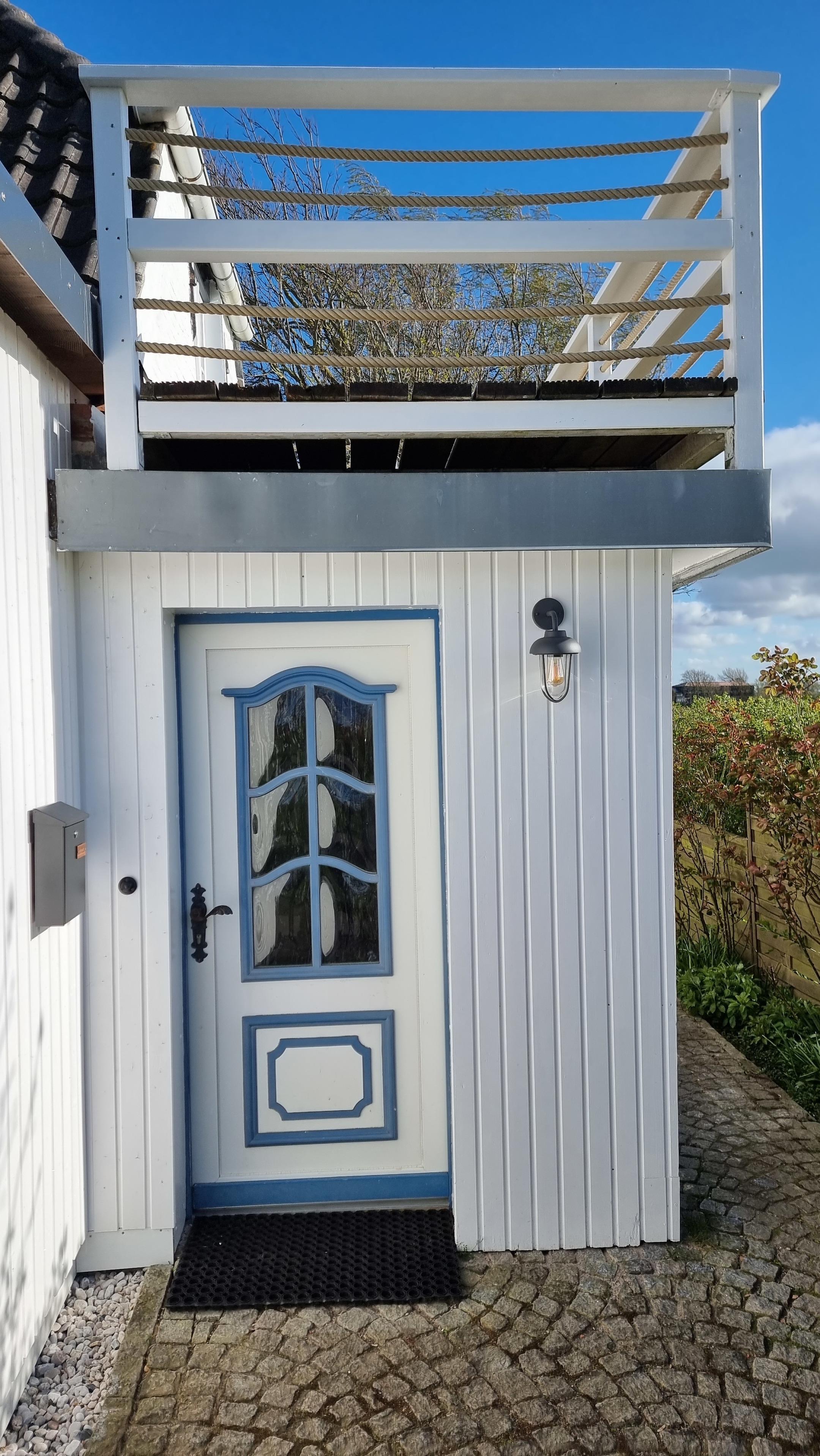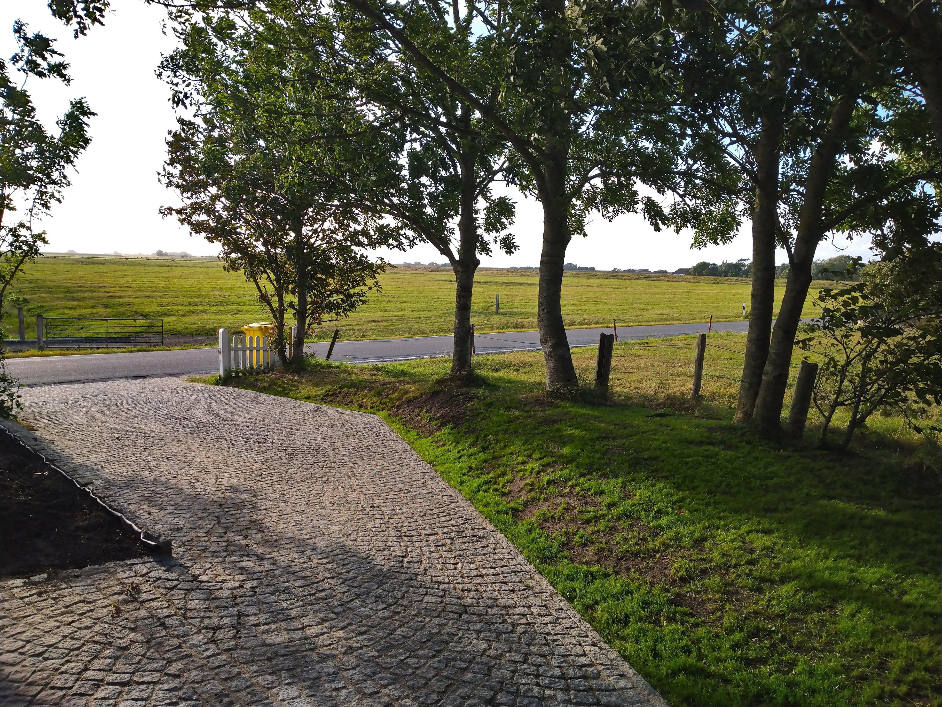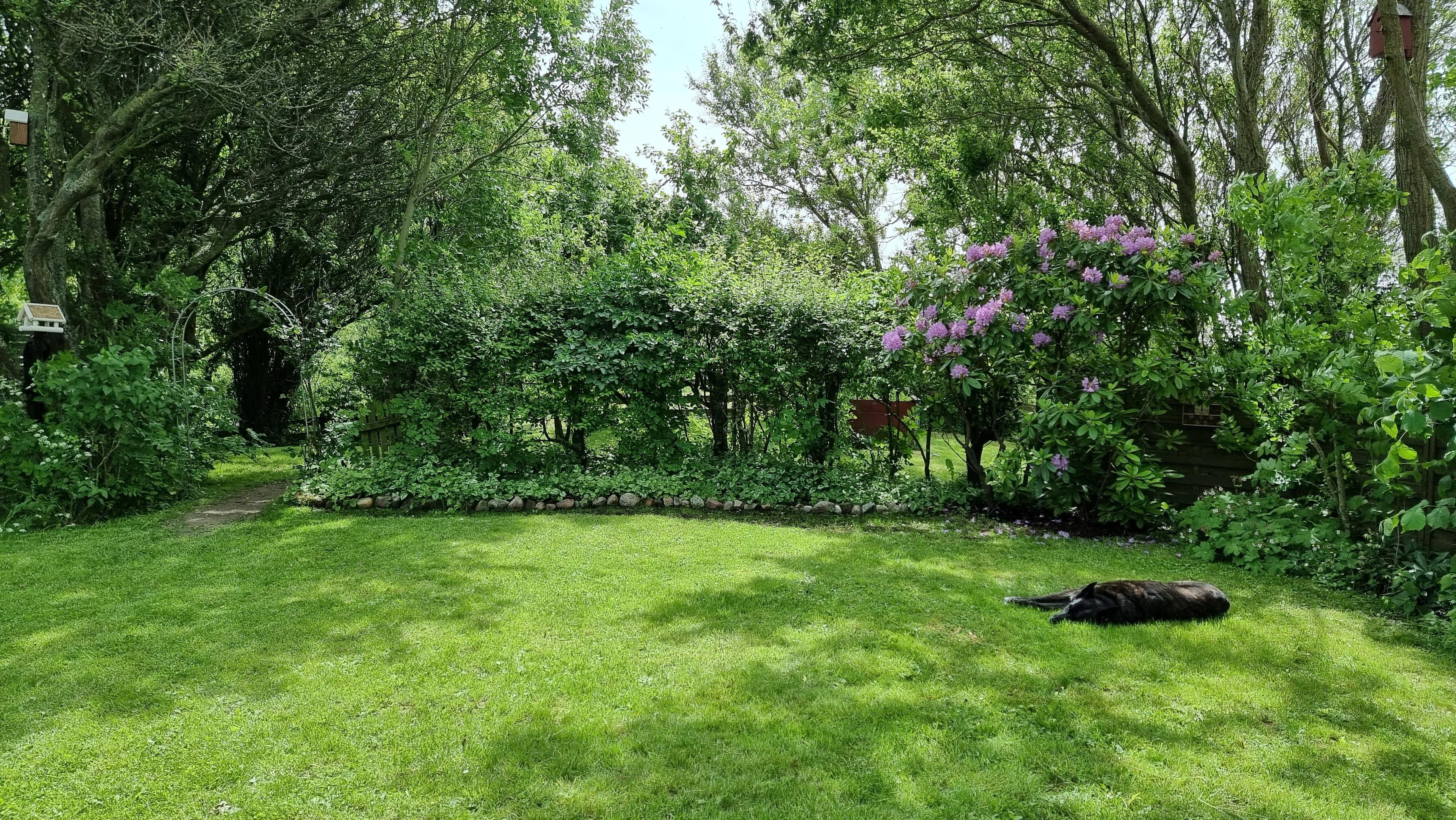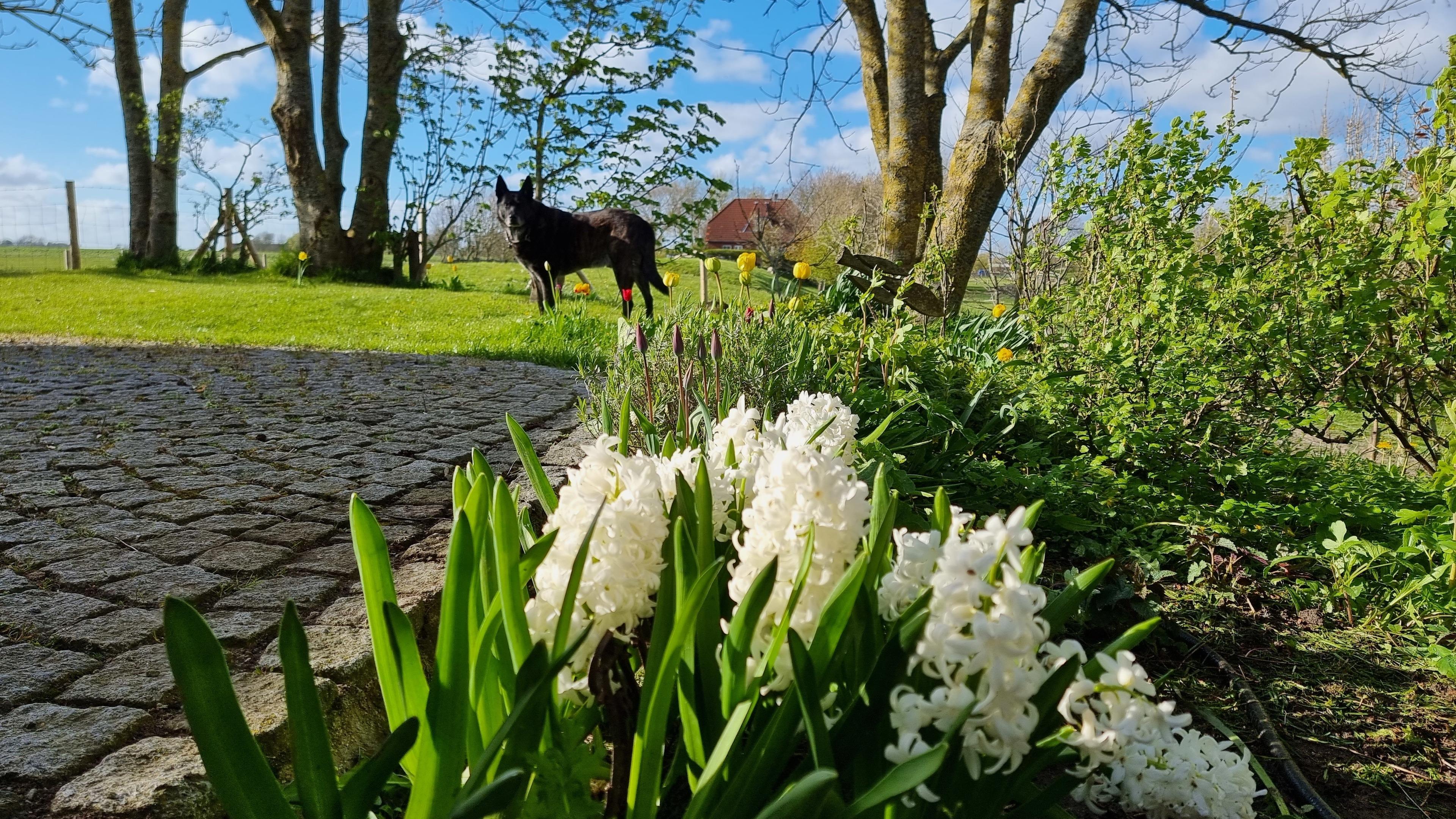 Wegen der unmittelbar ans Grundstück angrenzenden Schafs- und Pferdekoppeln empfehlen wir Ihren Vierbeiner auf dem Grundstück anzuleinen, eine lange Auslaufleine liegt im Garten bereit.