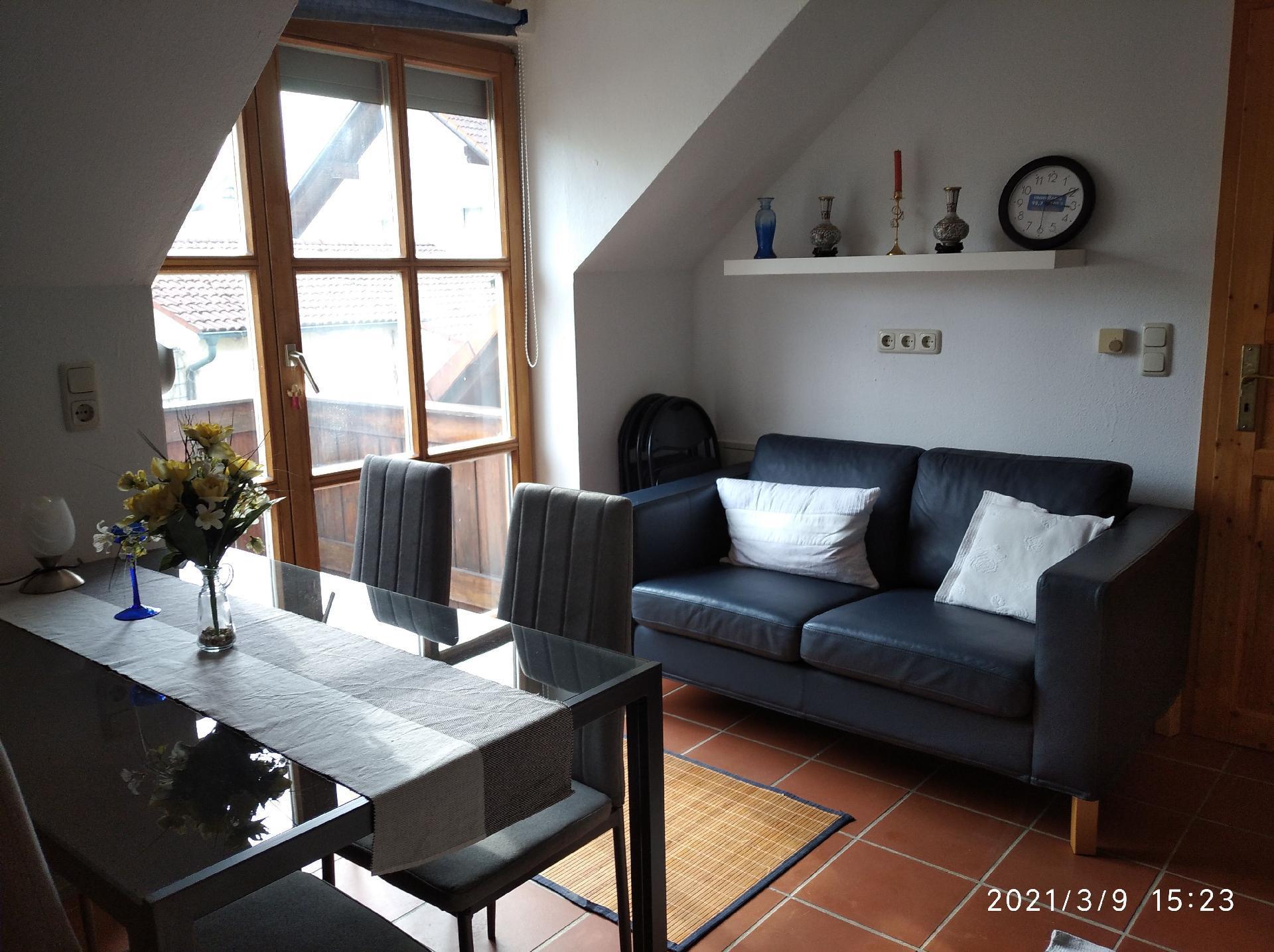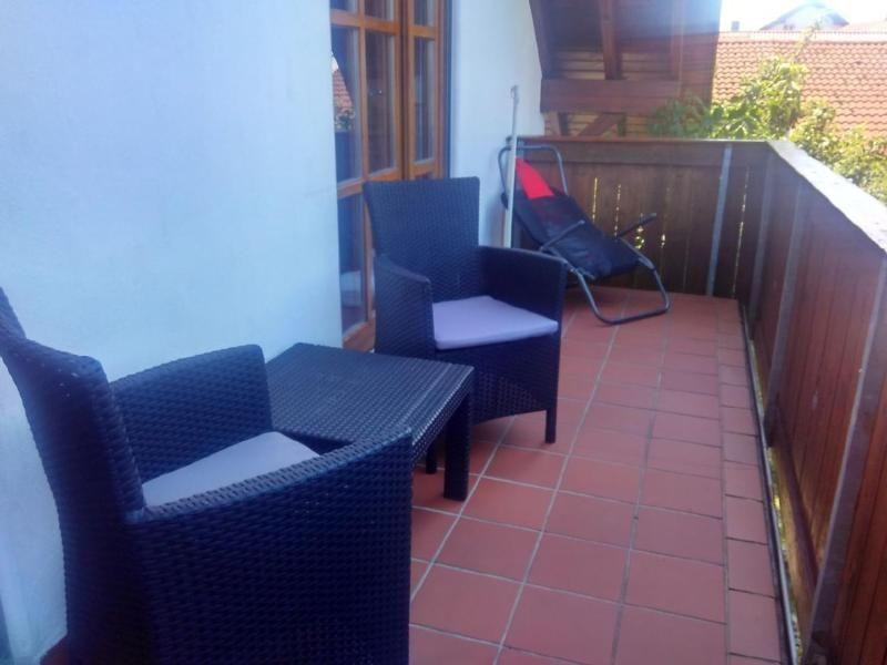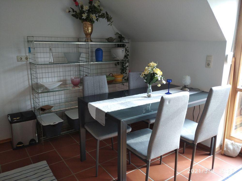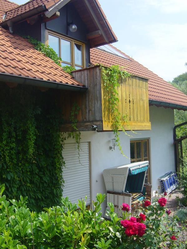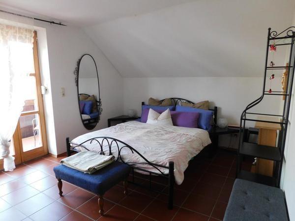 Charming 2-room flat in two-family house, 1st floor, 1 bedroom, 1 living room, 1 large balcony, 1 breakfast balcony, eat-in kitchen with dining area, large bathroom with shower and bathtub, underfloor heating. House with Mediterranean flair, idyllically situated on a small pond, bright and friendly through large French windows, absolutely quiet. Nevertheless ideal infrastructure, railway station (10 min walk) with direct connection to Munich (Bayernticket!!!), Passau, Regensburg, etc..