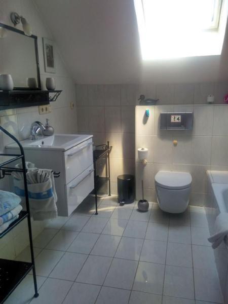 - Bathroom with daylight, shower and bathtub, new WC and washbasin with drawers. Shelf for storage. Cupboard with hoover and additional towels. Hairdryer available.