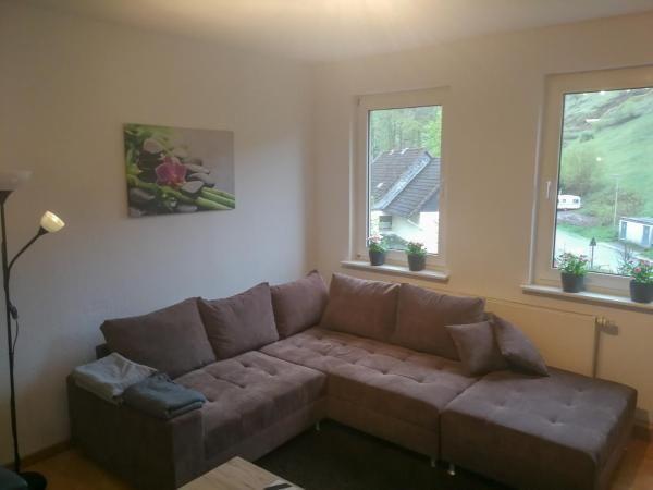 This flat is located on the 1st floor of a detached house with garden - truly "in the middle of the green" - directly at the foot of the surrounding mountains before the Lerbach serpentines near the ski slope and nature adventure park and is divided into a living room with XXL couch, flat screen TV, two bedrooms with a double bed (two seven-zone cold foam mattresses 2.00 m x 0.90 m), as well as a French bed (1.40 x 2 m), a bathroom with bathtub and a modern kitchen.