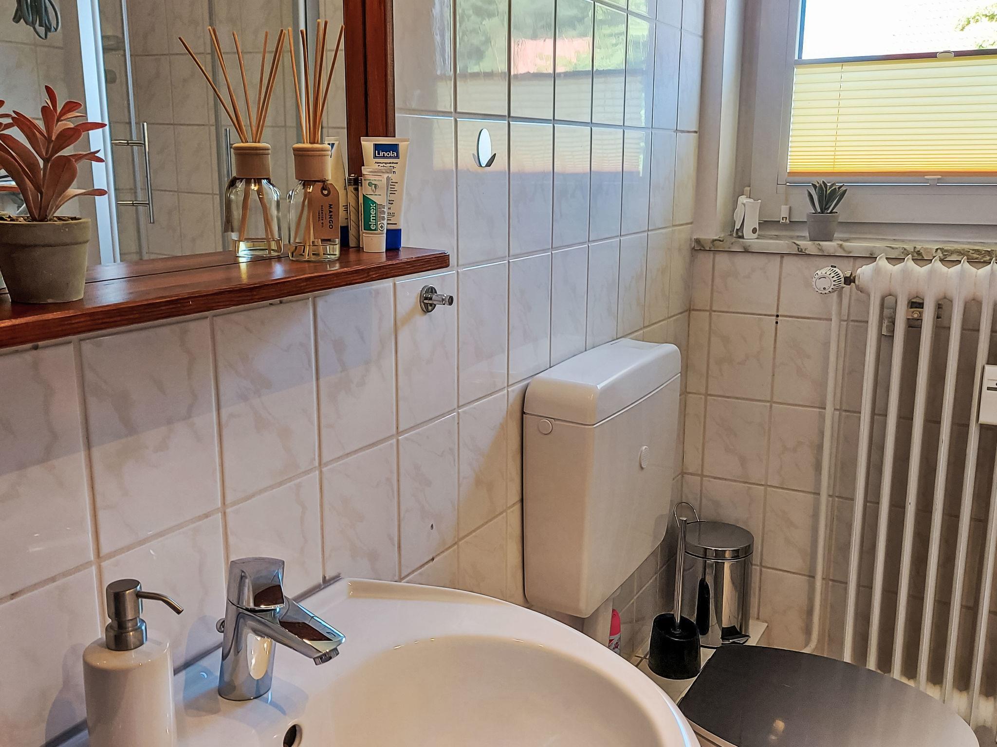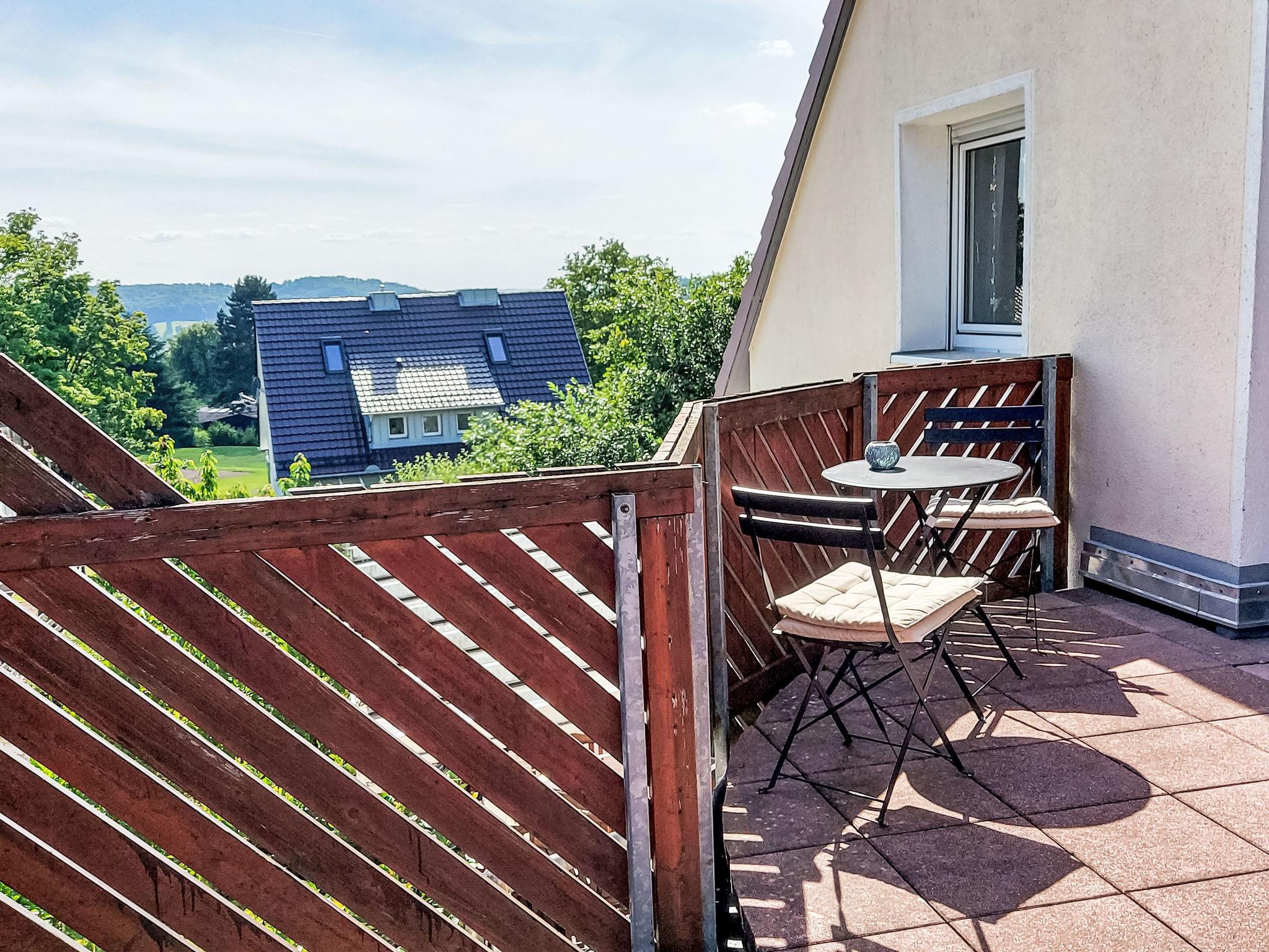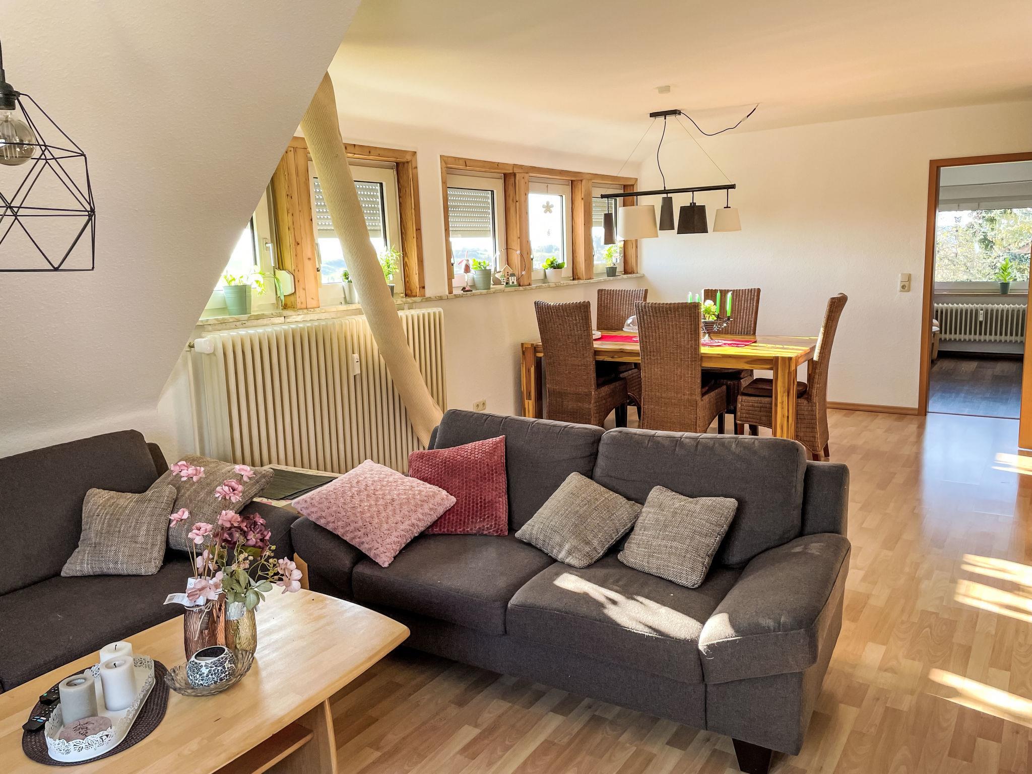 "Phoebe", 3-room apartment 80 m2, on the upper floor. Bright, with sloping ceilings, renovated in 2024, very tasteful and cosy furnishings: living/dining room with satellite TV (flat screen), hi-fi system. Large kitchen (oven, dishwasher, 4 ceramic glass hob hotplates, toaster, kettle, microwave, freezer, electric coffee machine, Capsules for coffee machine (Senseo)) with dining table. Shower/WC. Gas heating. Large terrace. Terrace furniture. Beautiful view of the countryside. Facilities: children's high chair, baby cot, hair dryer. Internet (WiFi, free). Please note: non-smokers only. Maximum 2 pets/ dogs allowed. Smoke alarm, fire extinguisher.