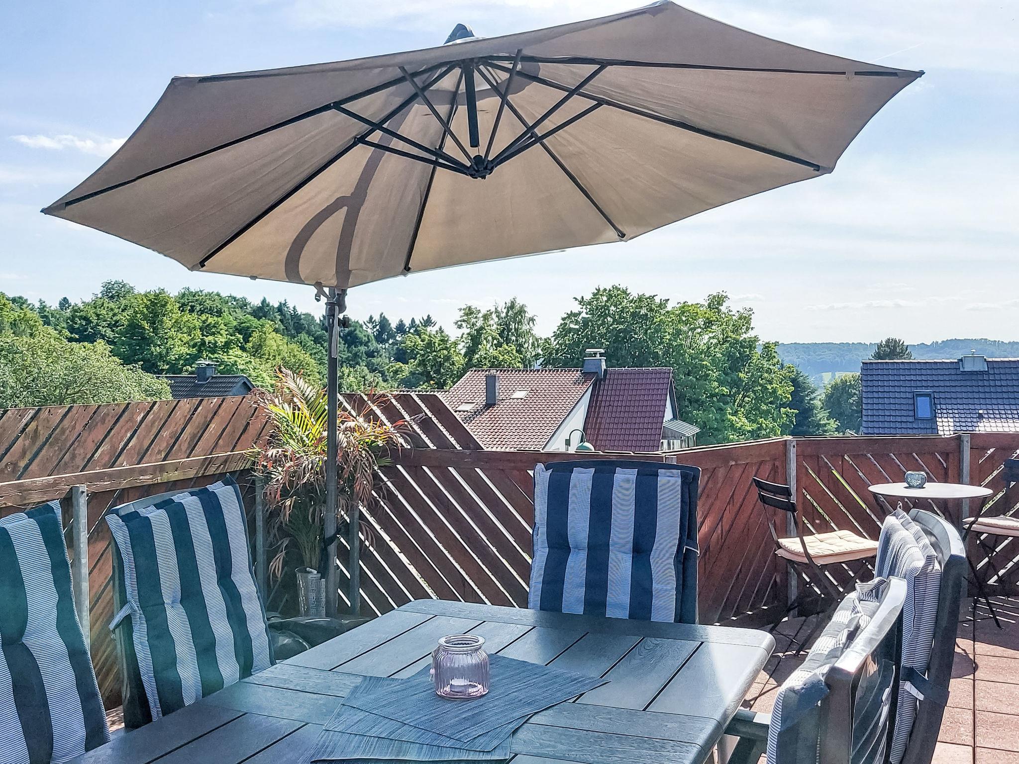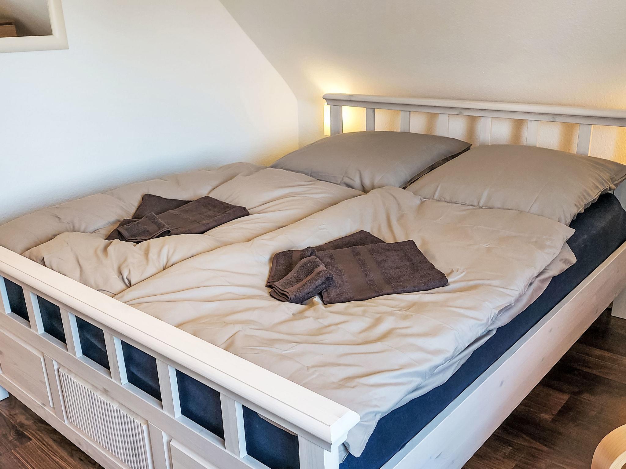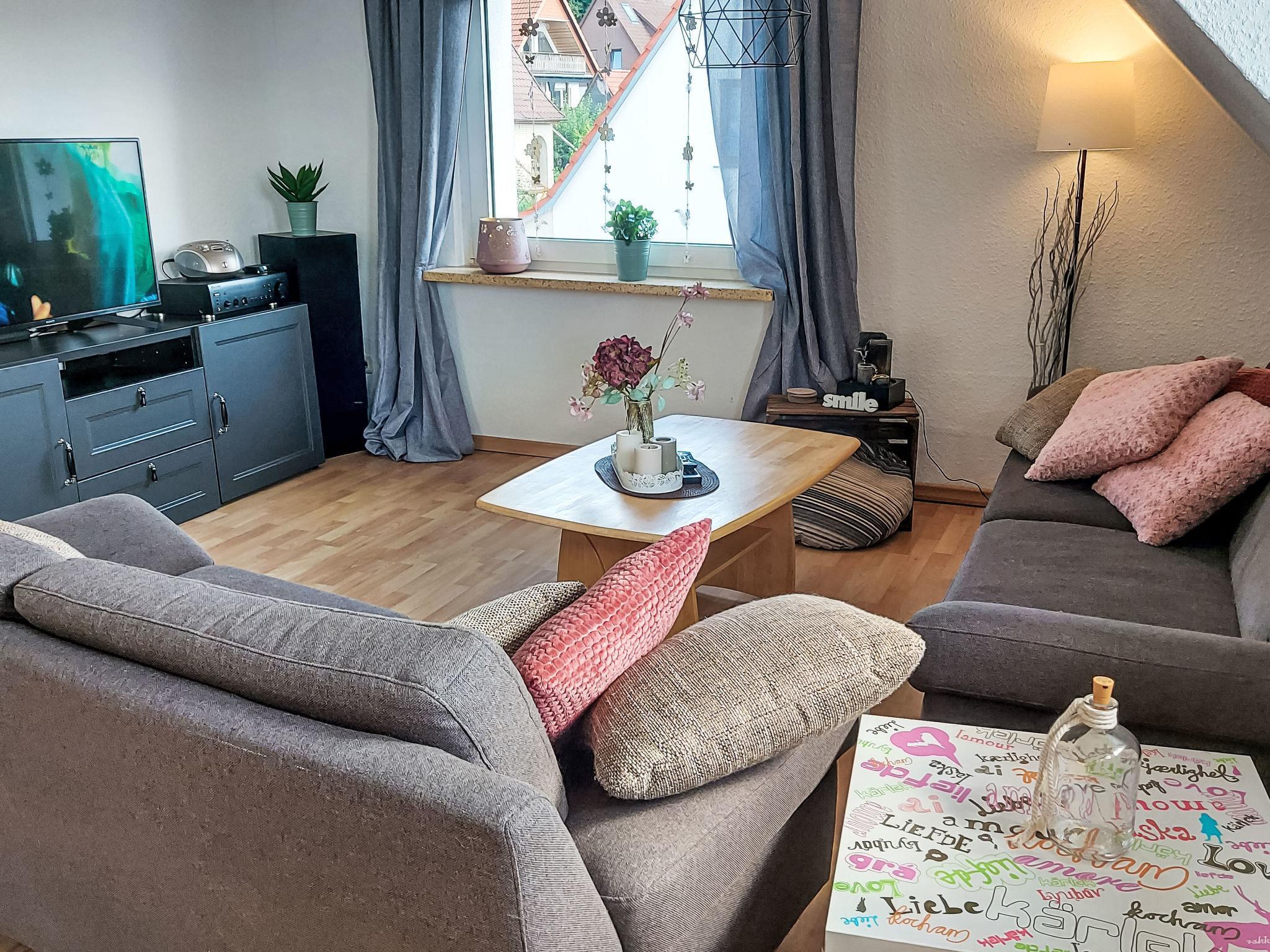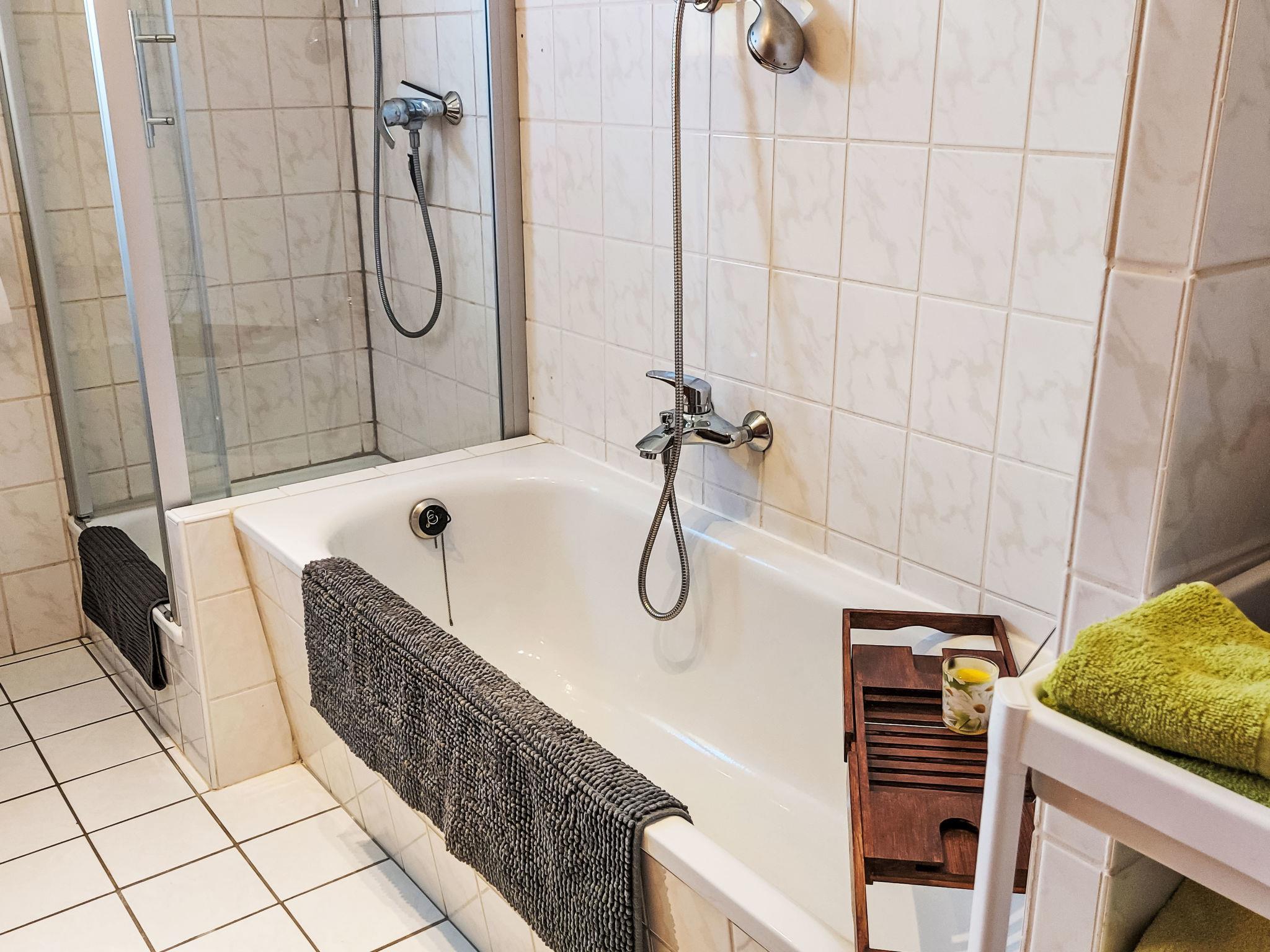 "Phoebe", 3-room apartment 80 m2, on the upper floor. Bright, with sloping ceilings, renovated in 2024, very tasteful and cosy furnishings: living/dining room with satellite TV (flat screen), hi-fi system. Large kitchen (oven, dishwasher, 4 ceramic glass hob hotplates, toaster, kettle, microwave, freezer, electric coffee machine, Capsules for coffee machine (Senseo)) with dining table. Shower/WC. Gas heating. Large terrace. Terrace furniture. Beautiful view of the countryside. Facilities: children's high chair, baby cot, hair dryer. Internet (WiFi, free). Please note: non-smokers only. Maximum 2 pets/ dogs allowed. Smoke alarm, fire extinguisher.