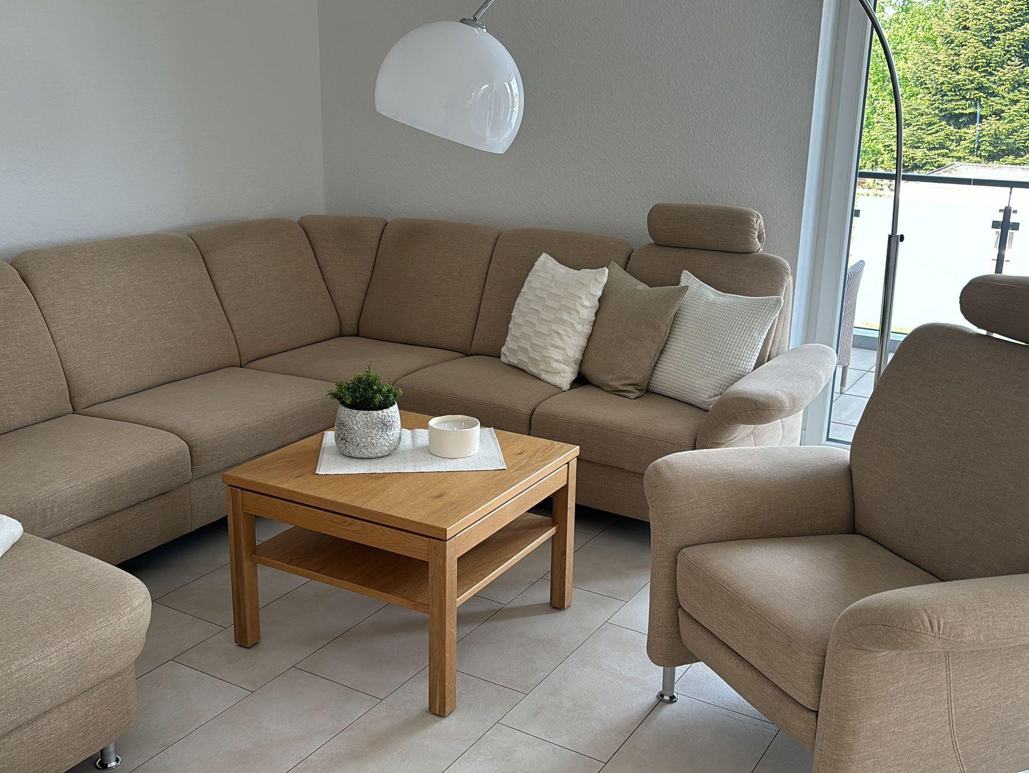 Die 70 qm große und modern eingerichtete Ferienwohnung für 2-4 Personen liegt in der ersten Etage (Fahrstuhl vorhanden), mit überdachten Balkon und Parkplatz.