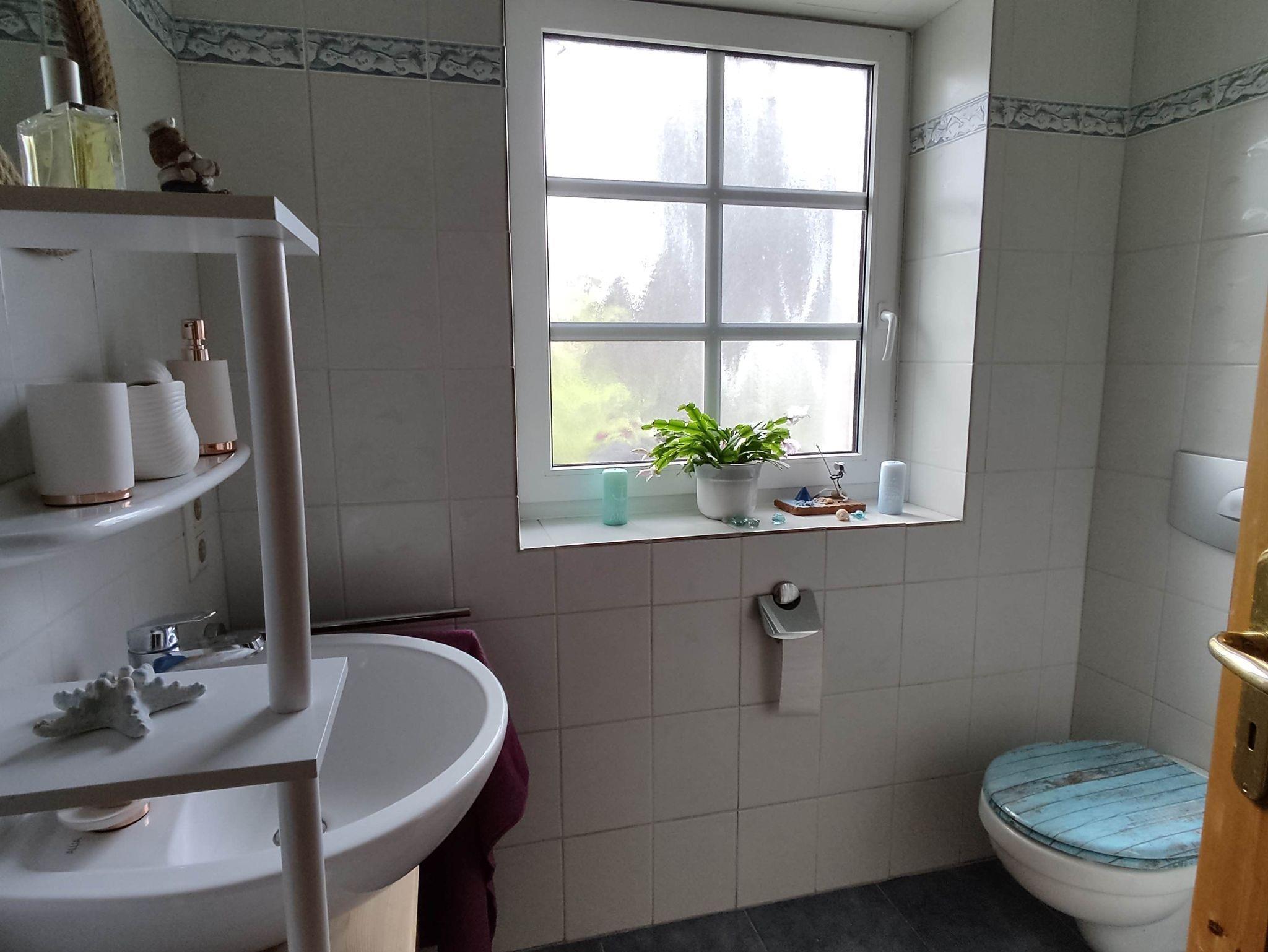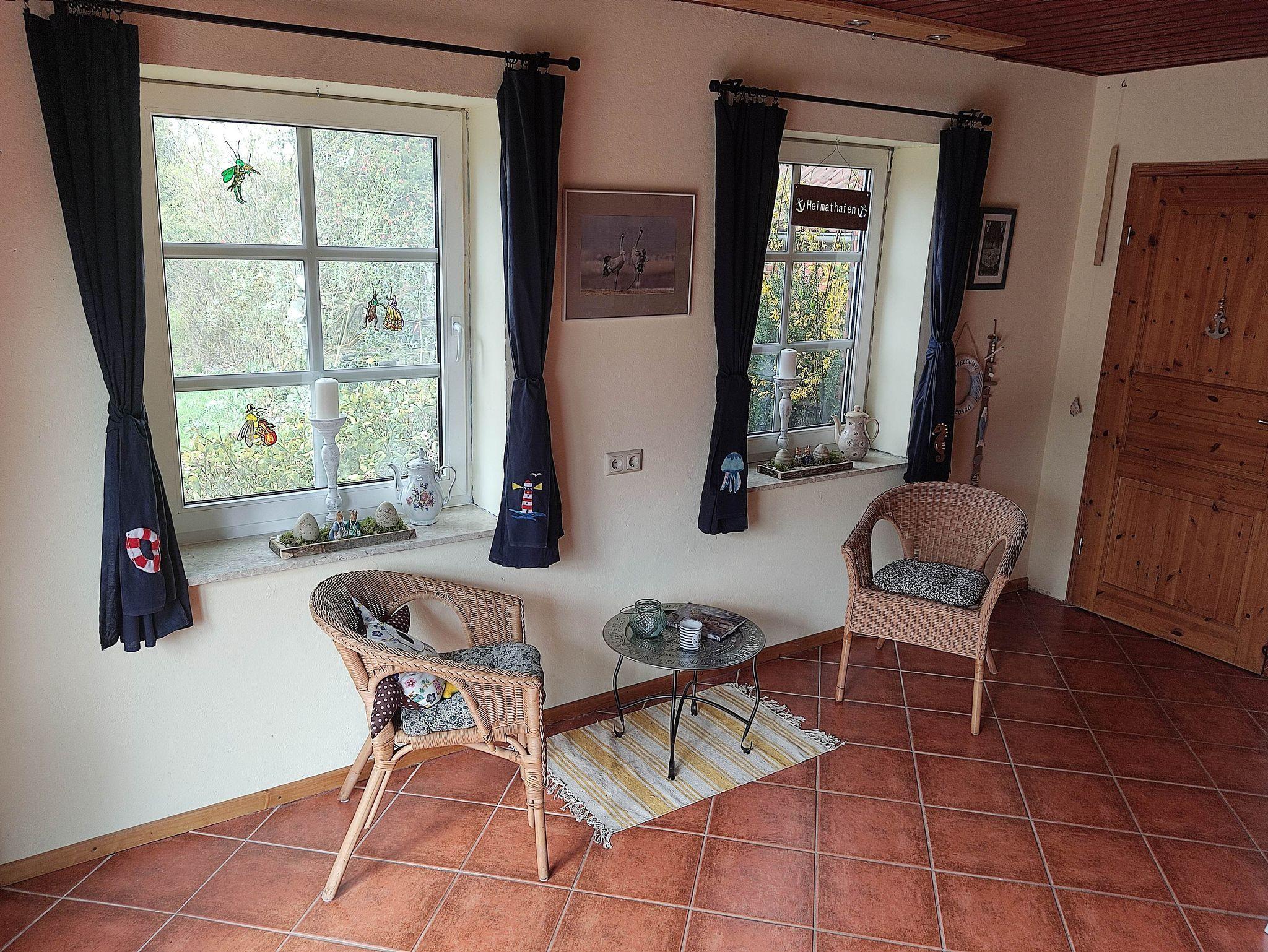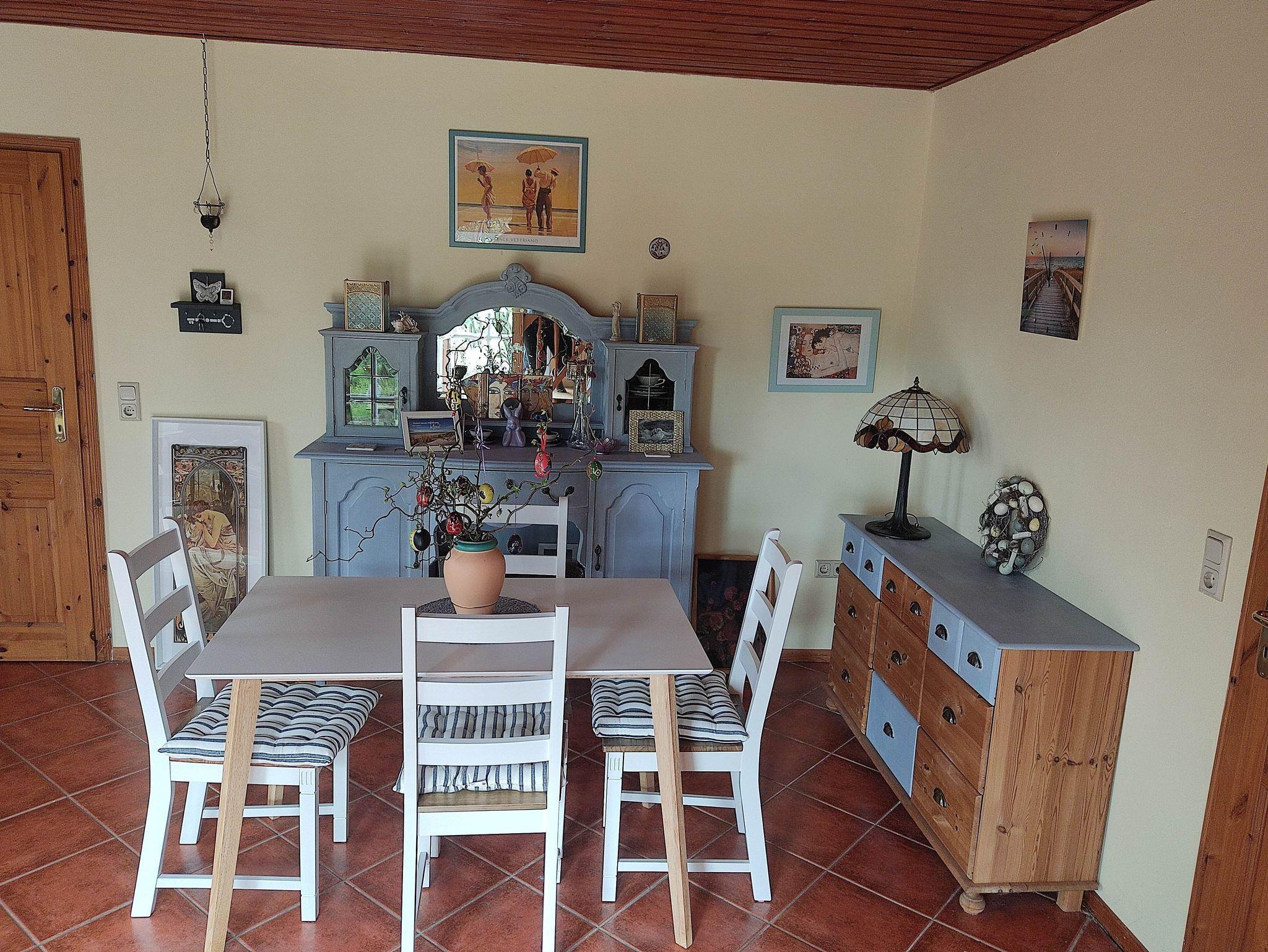 Maritimer Stil, in ruhiger Lage, Esszimmer mit gemütlicher Sitzecke, Nichtraucherwohnung, Fliesen, Laminat, Terrasse, 1 x Schlafzimmer mit Doppelbett 140 x 200 und 1 x Wohnzimmer mit Sofa (umwandelbar zum Schlafsofa), Babybett.
