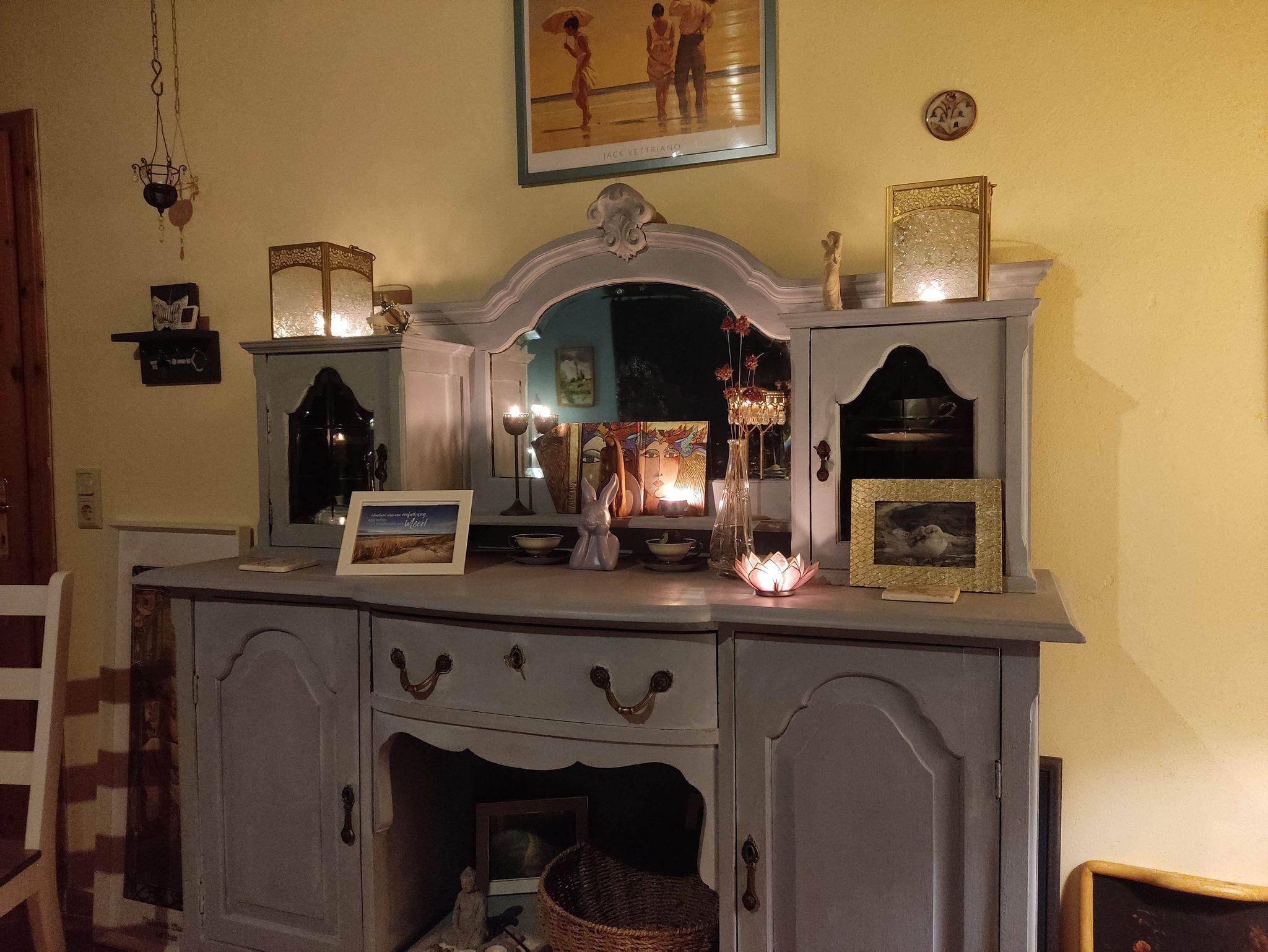 Die gesamte Wohnung ist im maritimen Stil mit liebevollen Details eingerichtet. Es gibt viel zu entdecken.