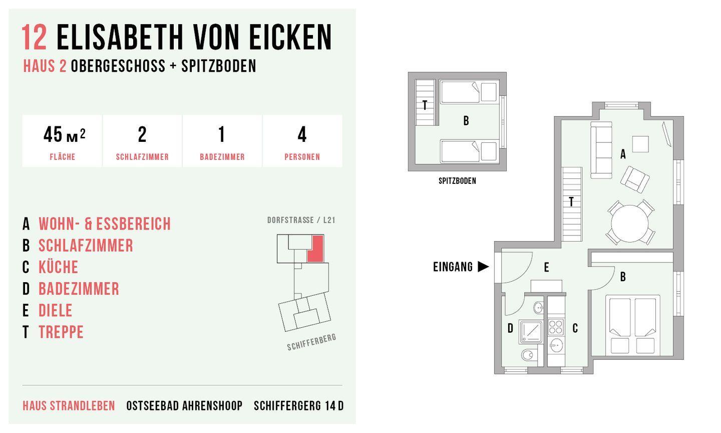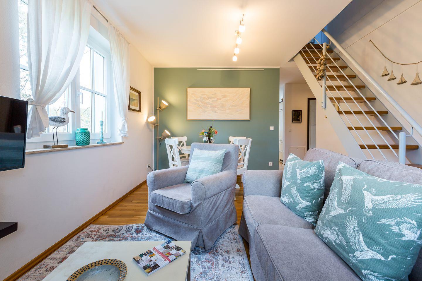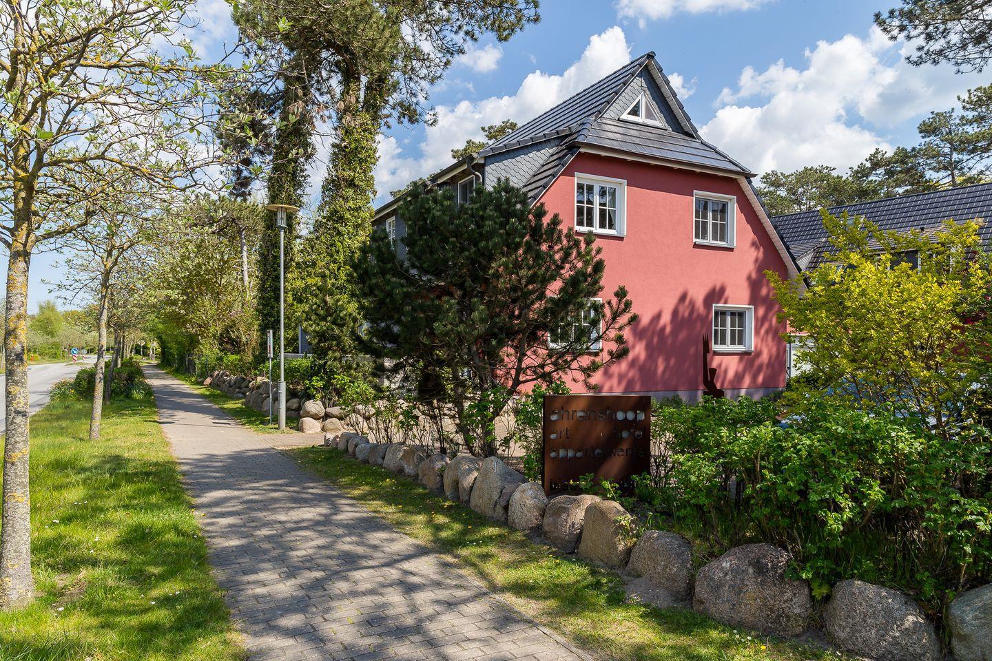 Die Hausanlage mit zwölf Ferienwohnungen liegt nur 150 Meter vom weißen Ostseestrand entfernt und befindet sich direkt an der Bäderstraße L21. Neben der strandnahen Lage ist auch der Ortskern mit Bäckereien und einer Vielzahl von Restaurants, Cafés und Kunstgalerien nur ca. einen Kilometer entfernt. Der angrenzende Deich eignet sich perfekt für Wanderungen oder Radtouren in den Nationalpark, zum Weststrand und entlang der weiten Boddenlandschaft.