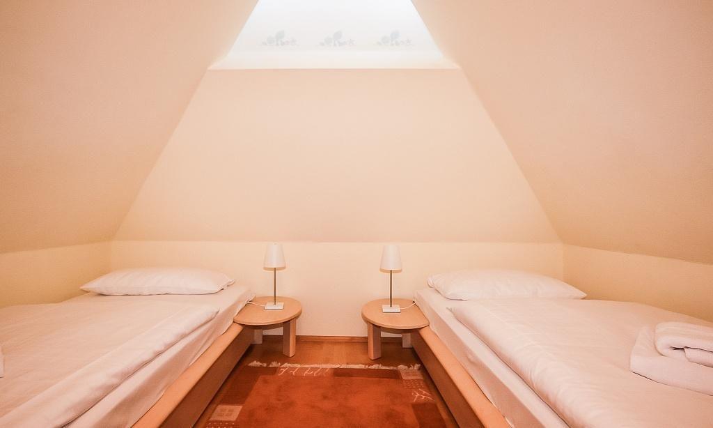 Im Erdgeschoss erwartet dich der einladender Wohnraum mit einer gemütlichen Sitzecke. Der Essbereich und die komplett ausgestattete Einbauküche sind unmittelbar integriert. Der Kaminofen und die Einrichtung schaffen ein behagliches Wohngefühl. Ein Gäste-WC und ein Hauswirtschaftsraum sind ebenfalls im Erdgeschoss zu finden. Durch den Wohnbereich erreichst du die große Süd-Terrasse und eine kleine Terrasse in Westausrichtung. Über die wertige Vollholz-Treppe gelangst du ins Obergeschoss. Dieses beherbergt ein großes Schlafzimmer mit einem Doppelbett und ein weiteres Schlafzimmer mit einem Tandembett - wahlweise für ein oder zwei Personen sowie ein großzügiges Bad mit Dusche und WC. Im Dachgeschoss befindet sich ein weiteres kleines abgeschlossenes Zimmer mit zwei Einzelbetten.