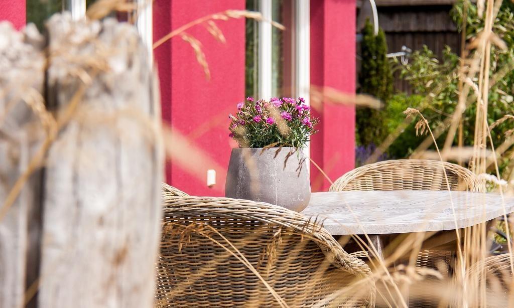 Die große Sonnenterrasse auf der Südseite verbindet Haus und Garten. Durch die Sauna und den Kamin wird es auch im Winter gemütlich und kuschelig und somit kann man hier nicht nur im Sommer sondern das ganze Jahr über die Seele baumeln lassen.