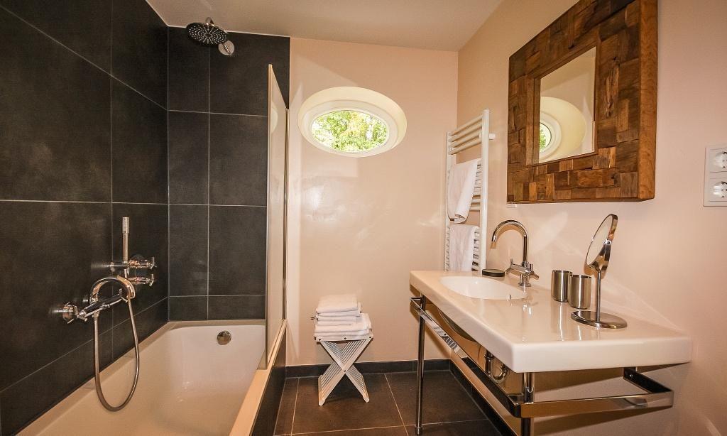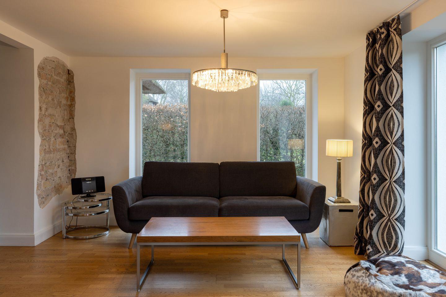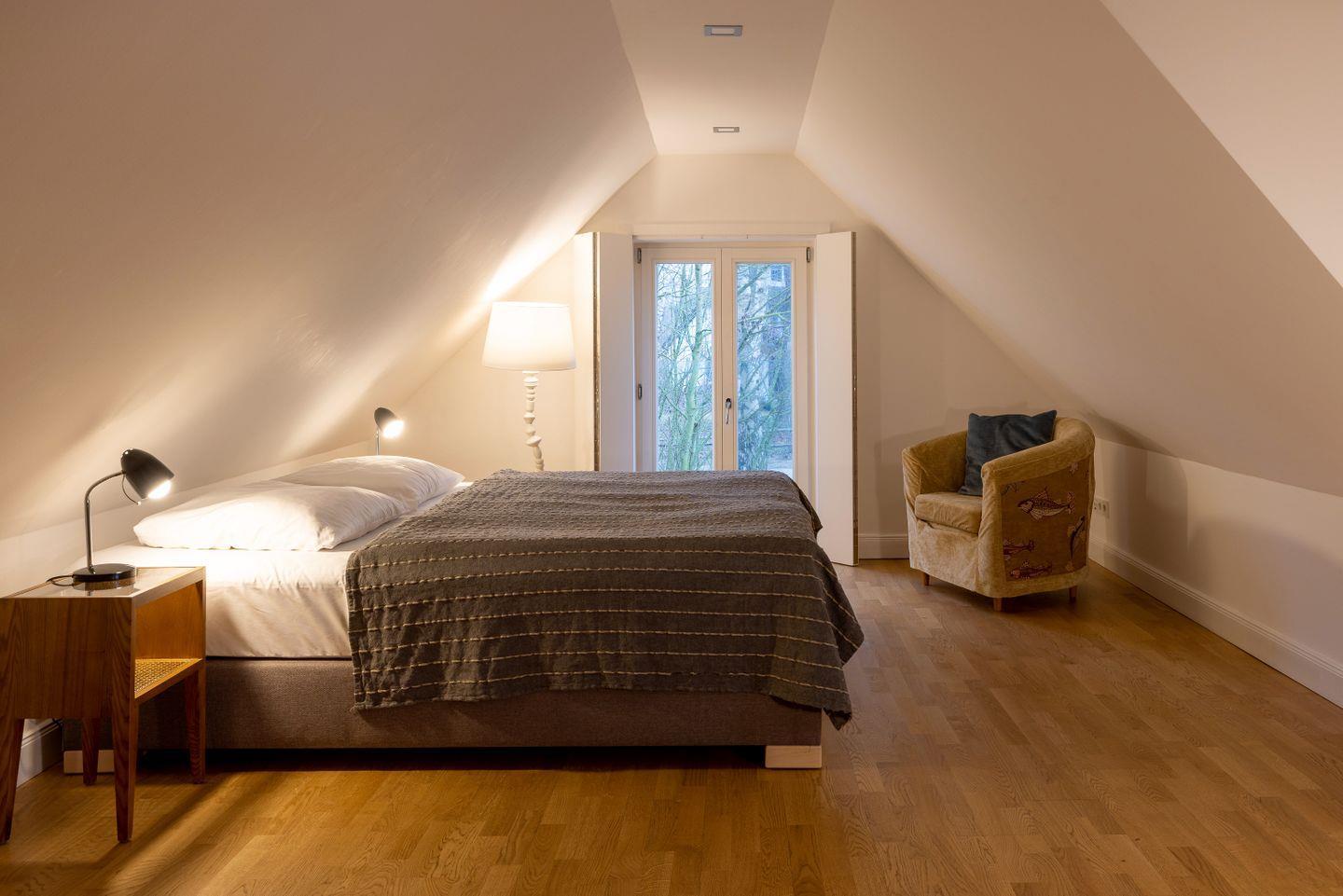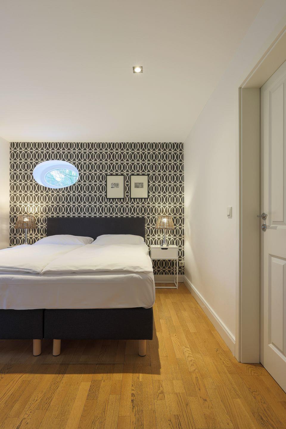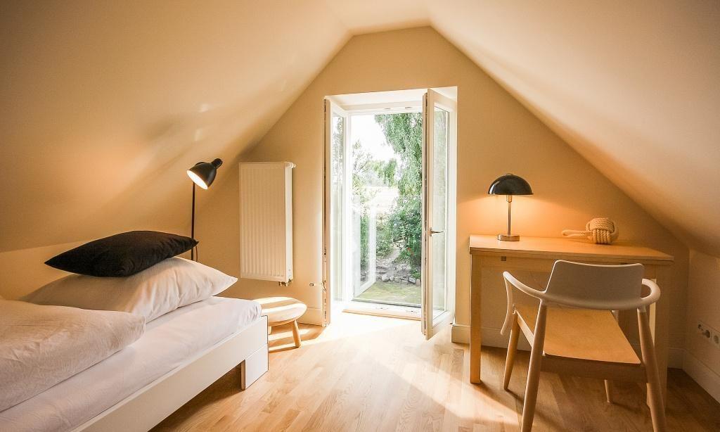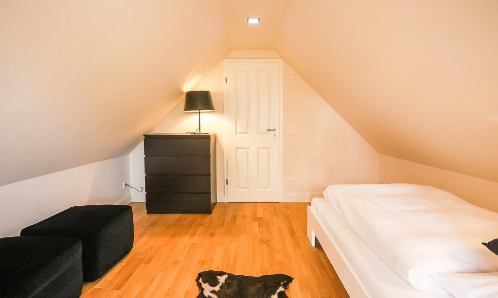 Im Erdgeschoss wirst du direkt in der lichtdurchfluteten Wohnküche empfangen. Der großzügige Essbereich am gemütlichen Kaminofen schließt sich unmittelbar an. Von hier aus gelangst du in den offenen und individuell gestalteten Wohnraum mit komfortabler Sitzecke. Weiterhin befindet sich in der unteren Etage ein Schlafzimmer mit einem Doppelbett und das angrenzende Bad mit Wanne/WC sowie ein Austritt in den Garten. Ein zweites Bad mit Dusche/WC und ein Hauswirtschaftsraum sorgen für weiteren Wohnkomfort. Vom Wohnbereich und von der Küche gelangst du auf die Terrasse und in den Garten. Das Obergeschoss beherbergt drei weitere Schlafzimmer - ein Schlafzimmer mit einem Doppelbett (180 cm) und zwei Schlafzimmer, die jeweils mit einem Einzelbett ausgestattet sind.
