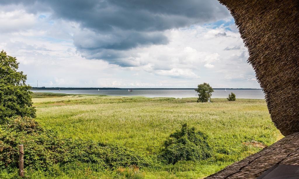 In einmaliger Lage zum Schilfgürtel des Saaler Boddens ist vor 400 Jahren die Hofstelle gegründet worden. Nach einem Großbrand im Jahre 1991 ist das alte Bauernhaus bis auf die Grundmauer niedergebrannt. Direkt am Hang zum Bodden wurde dann dieses Rohrdachhaus im Jahre 1993 neu errichtet. In dem fischlandtypischen Reetdachhaus befinden sich drei Einheiten. Von hier aus hast du einen wunderschönen Blick über die Boddenwiesen aufs Wasser. Dank der Lage wohnst du hier ruhig und abgelegen. Bis zum Ortszentrum sind es knapp 2, 5 Kilometer. Das Kunstmuseum als auch die beliebte Steilküste erreichst du in knapp zwei Kilometer Fußweg. Restaurants und Cafés sind lediglich einen Katzensprung entfernt.