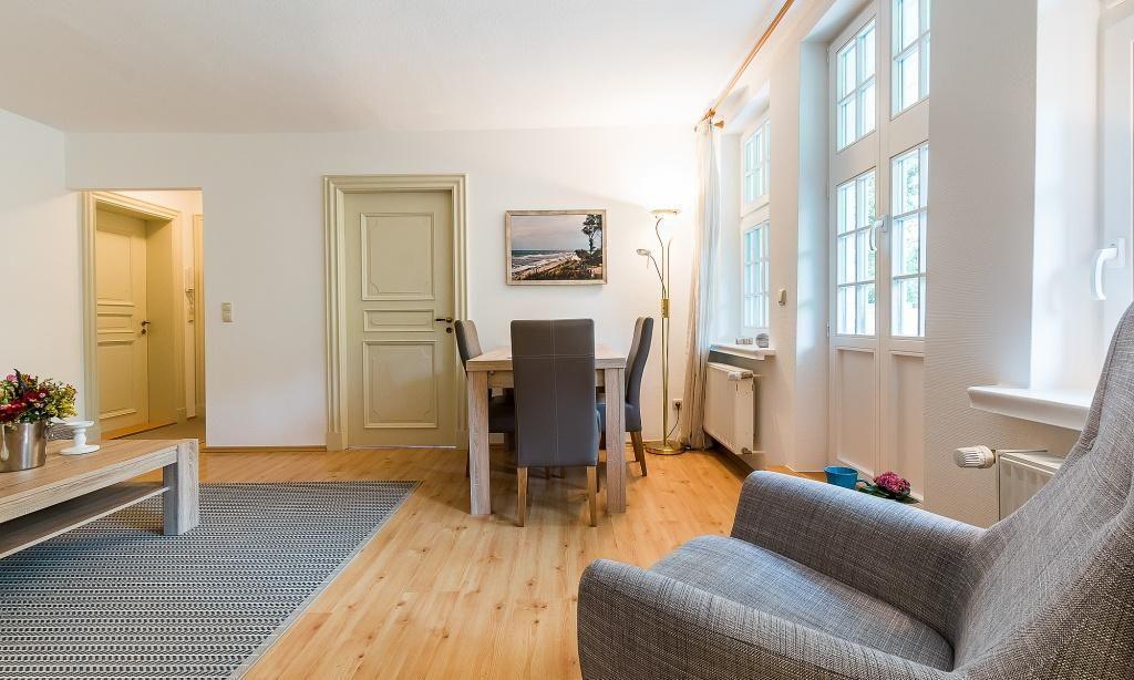 Der überdachte Balkon mit Blick auf das parkähnliche Grundstück und die bewaldeten Stranddünen verspricht dir entspannte und gesellige Stunden und machen den Wohnkomfort perfekt. Dir stehen zwei PKW-Stellplätze zur Verfügung.