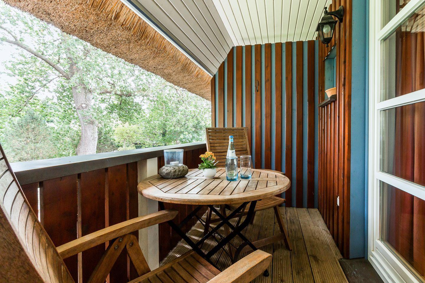 In ruhiger Lage - im Ortsteil Niehagen kannst du einen entspannten Urlaub verbringen. Vom Balkon hast du - über die ortstypischen Rohrdächer - hinweg sogar einen kleinen Ausblick auf den Bodden.