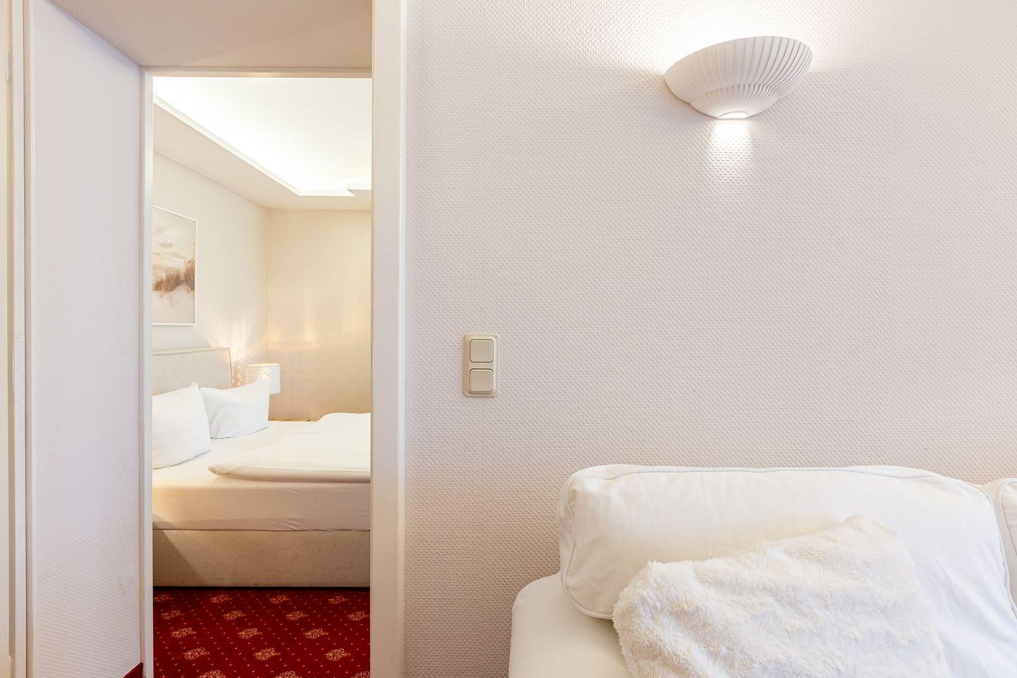 Die Ferienwohnung liegt im Erdgeschoss des Hauses und ist passend zum Strand in hellen und freundlichen Farben gehalten. Im Wohnraum befinden sich ein gemütliches Sofa mit TV-Bereich, eine Miniküche und ein Esstisch. Das Sofa kann ausgezogen werden und bietet somit eine Aufbettung für eine dritte Person. Vervollständigt wird die Ferienwohnung durch ein Schlafzimmer mit einem Doppelbett und eine Badezimmer mit Dusche/WC.