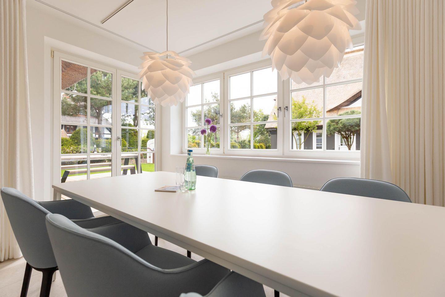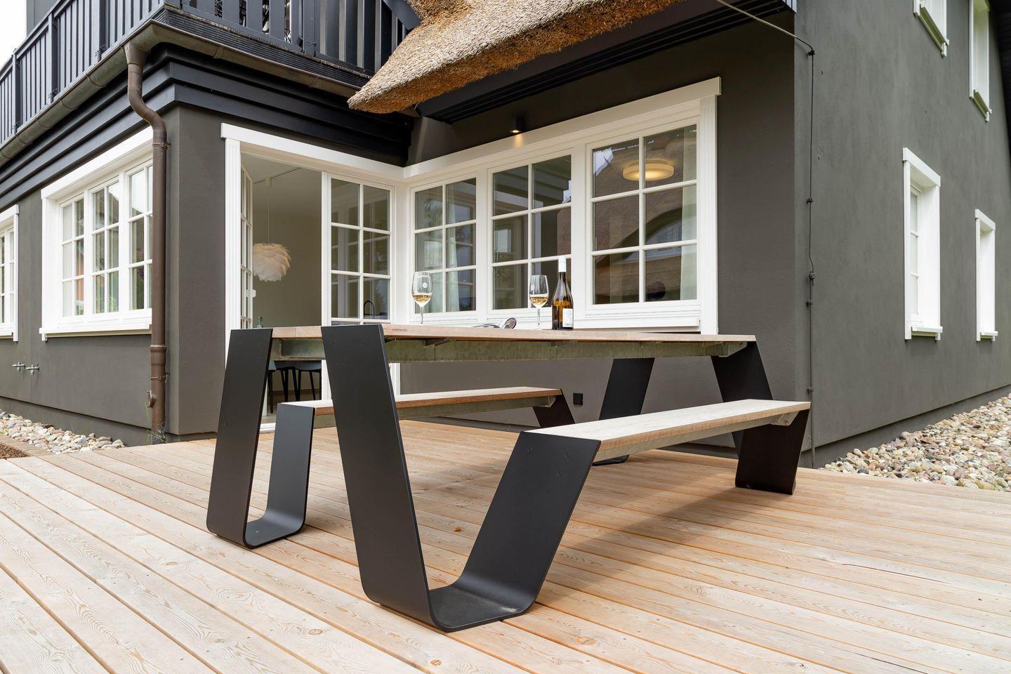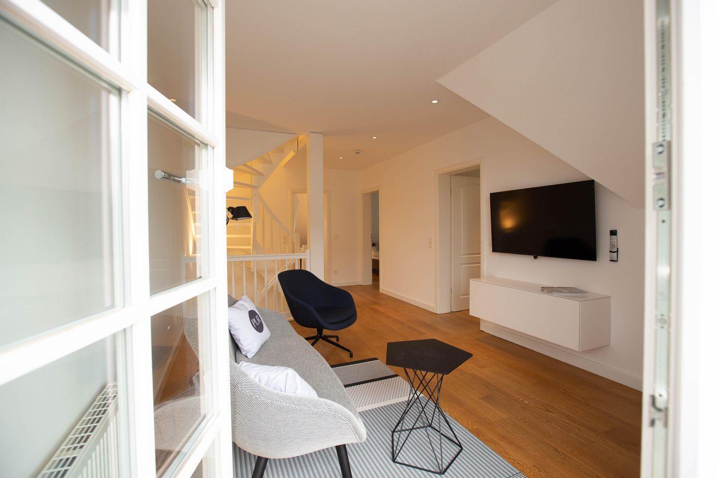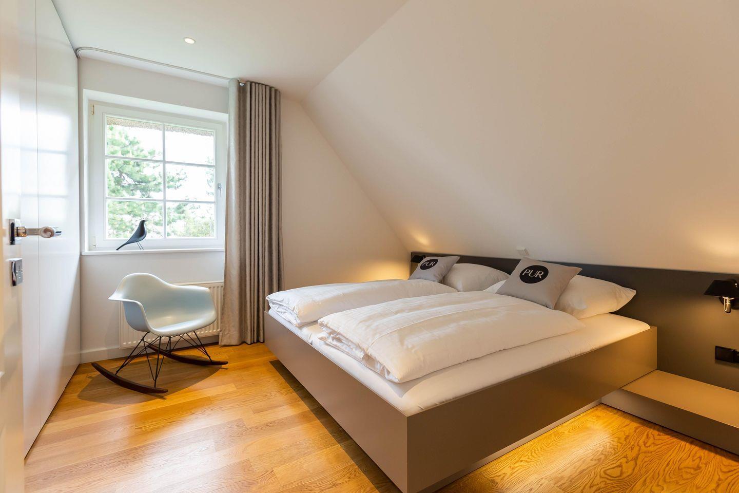 Die traumhafte Doppelhaushälfte unter Reet wurde in 2021 aufwendig saniert. Während die Außenansicht für das Fischland charakteristisch maritim gehalten ist - folgt PUR A4 im Innenbereich dem modernen PUR-Stilkonzept mit klarem, puristischem und zeitlosem Design. Der offene und mit großen Fensterfronten ausgestattete Wohnraum ist Mittelpunkt des Hauses. Fließend gehen Wohn-, Küchen- und Essbereich ineinander über und bieten gemeinsam oder jeder für sich einen kommunikativen Raum zum Klönen, Kochen und Genießen. Für erholsamen Schlaf sorgen gleich drei Schlafzimmer im Ferienhaus. Hochwertig ausgestattet mit Designermöbeln findest du hier den perfekten Rückzugsort und Schlaf in deinem Urlaub. Weiteren Wohnkomfort bieten die zwei modernen Badezimmer - ebenfalls ausgestattet mit Rainshower-Dusche und Designer-Badelementen. Der Wellnessbereich mit Sauna ist das i-Tüpfelchen dieses ästhetischen Ferienhauses, dass dir einen individuellen und erholsamen Urlaub garantiert.